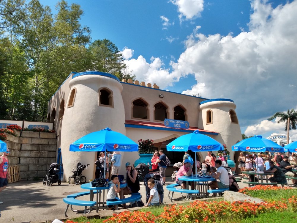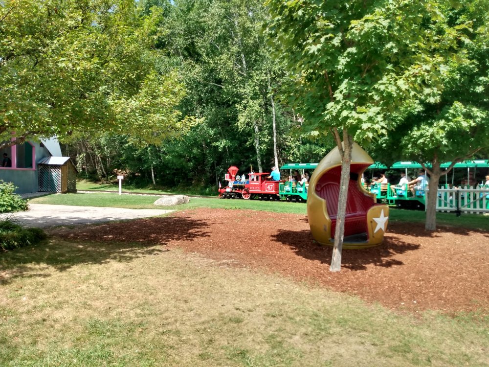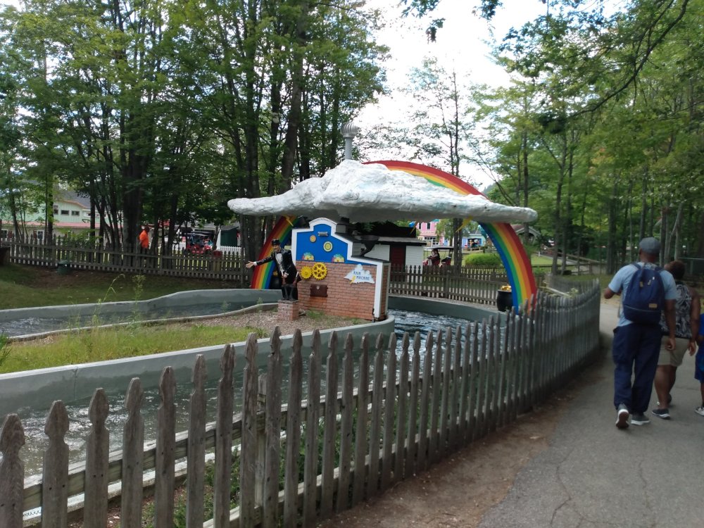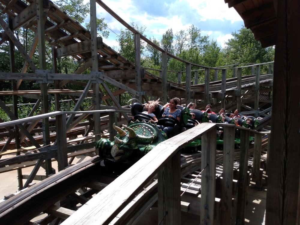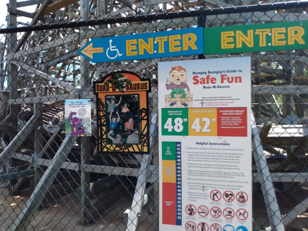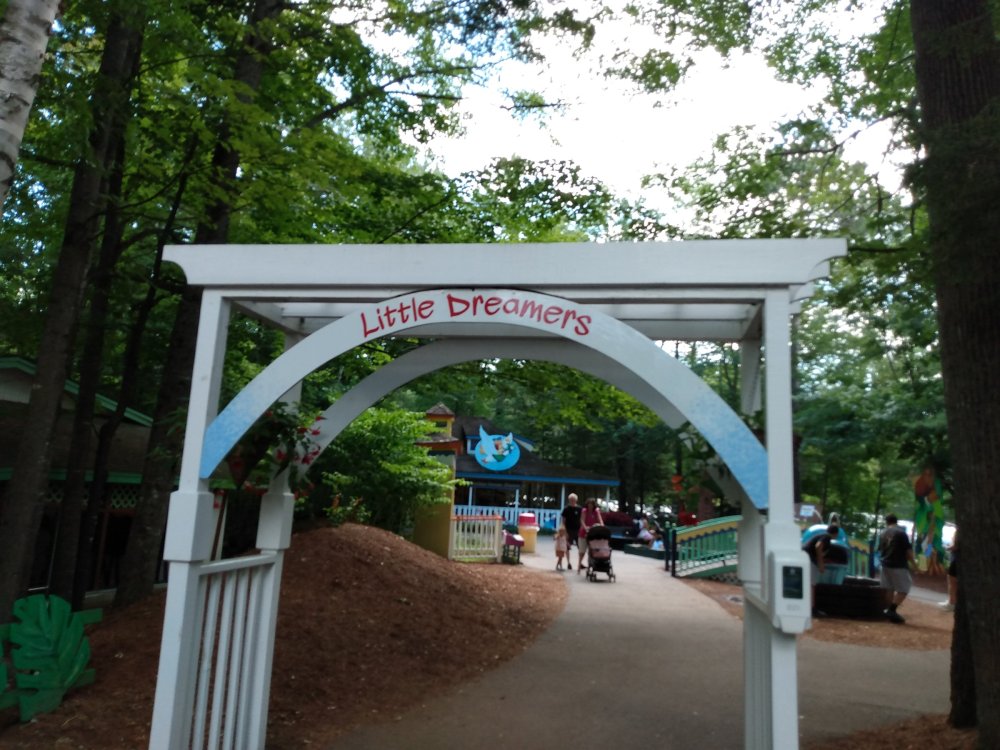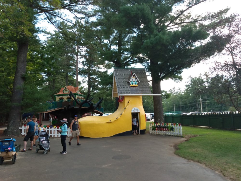 The next stop on my agenda for Saturday was.... Story Land, Intervale NH This is another family-focused park, with not too much for adult thrill seekers (besides Roar-O-Saurus). Thankfully, this place was included on my Palace Entertainment Platinum Pass, but I did find a lot of the kids stuff to be super cute. On with the report! First, the very bare-bones entrance plaza... ...and some sorely missed corporate sponsorship. So the first thing you come across here (if you go to the right, anyway), is life-size recreations of all of your favorite fairy tales. Here in the "kingdom" themed area, you have a few more classic examples... Including a pumpkin coach ride to... ...Cinderella's castle, complete with meet-n'-greets and photo ops. They also had this cool "assisted dress up" where staff would help your kid become a princess, knight, or whatever. There was a very small pirate themed area.... ...with a riverboat ride... ...and climbing structure (identical to one that used to be at an elementary school near my parent's house in Central NJ)... ...and a pretend jail. There was a "tales from around the world" section. This was apparently some sort of dark ride or walk through experience, but was closed. And finally, we come across the first coaster...Polar Coaster. Sadly not air conditioned on this very hot day. Anyway, this is a Hopkins/Morgan family coaster. About a 20 minute wait for the back row. Some decent forces throughout, especially on the final helix...kinda surprising for an obvious kiddie coaster. Some of the rest of the park.... ...including a splash battle... ...and their own version of a flying shoe ride. They even have a ball pit, sort of! Finally, it was time for the crown jewel of this park (or was it?), Roar-O-Saurus. It definitely is photogenic. 28 minute wait for the back row. It had a couple of nice pops of air, but it suffers from the same problem that Mine Blower does - on any kind of a turn, it jackhammers and shuffles around like its the trains job, slamming you every which way. Not fun. 3/10. Rounding out this park, here are some of the final pictures. And I'll close this par of the report with a truth-telling bag seen in the gift shop, featuring an insightful quote from a true legend.1 point