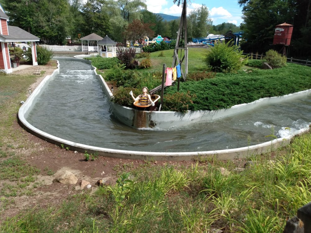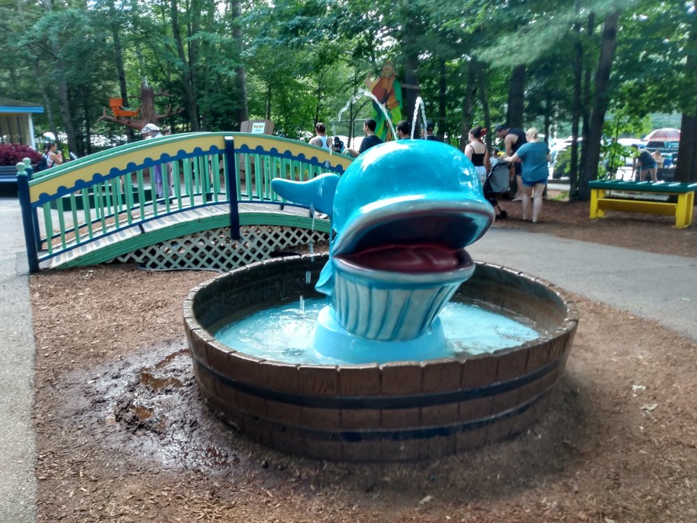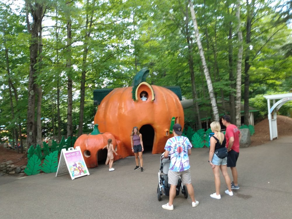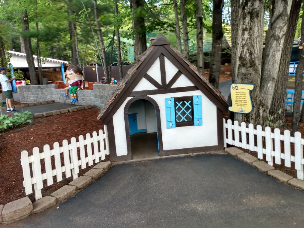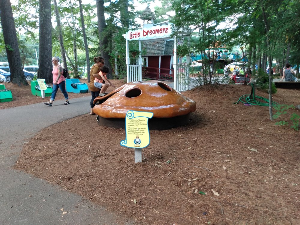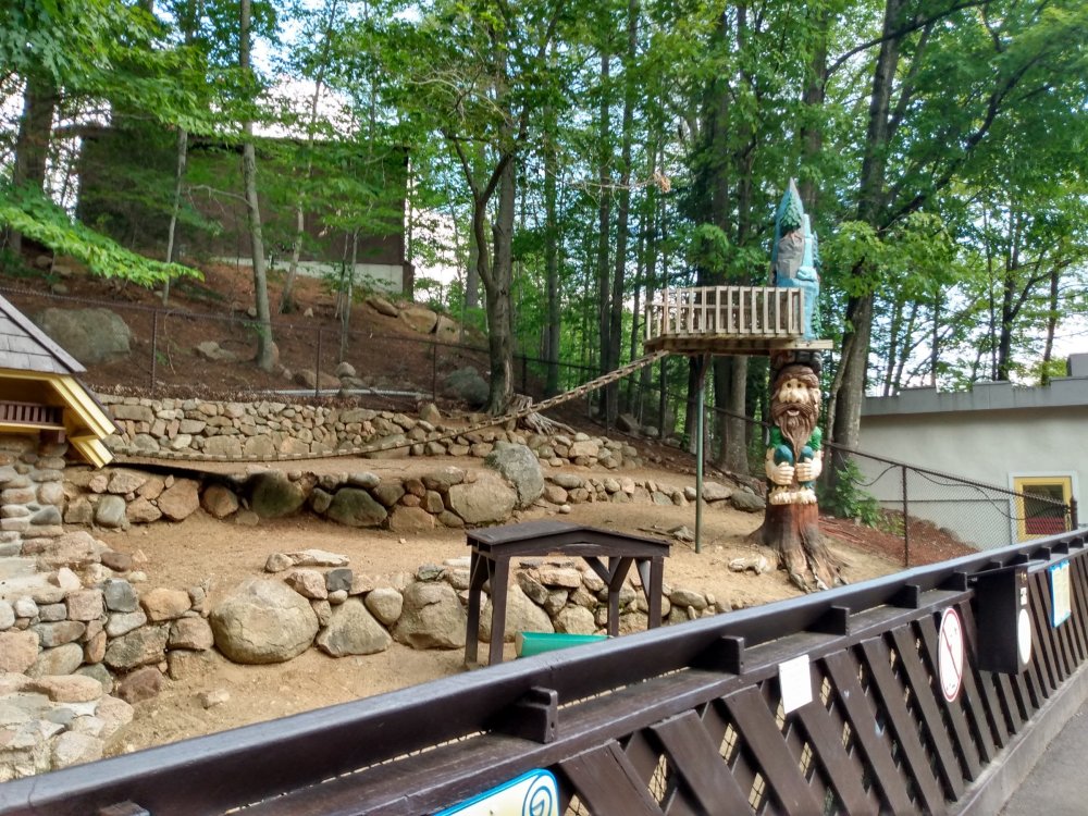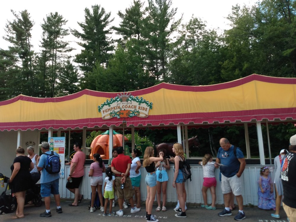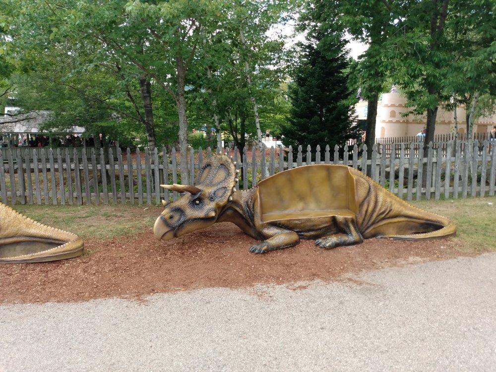 The next stop on my agenda for Saturday was.... Story Land, Intervale NH This is another family-focused park, with not too much for adult thrill seekers (besides Roar-O-Saurus). Thankfully, this place was included on my Palace Entertainment Platinum Pass, but I did find a lot of the kids stuff to be super cute. On with the report! First, the very bare-bones entrance plaza... ...and some sorely missed corporate sponsorship. So the first thing you come across here (if you go to the right, anyway), is life-size recreations of all of your favorite fairy tales. Here in the "kingdom" themed area, you have a few more classic examples... Including a pumpkin coach ride to... ...Cinderella's castle, complete with meet-n'-greets and photo ops. They also had this cool "assisted dress up" where staff would help your kid become a princess, knight, or whatever. There was a very small pirate themed area.... ...with a riverboat ride... ...and climbing structure (identical to one that used to be at an elementary school near my parent's house in Central NJ)... ...and a pretend jail. There was a "tales from around the world" section. This was apparently some sort of dark ride or walk through experience, but was closed. And finally, we come across the first coaster...Polar Coaster. Sadly not air conditioned on this very hot day. Anyway, this is a Hopkins/Morgan family coaster. About a 20 minute wait for the back row. Some decent forces throughout, especially on the final helix...kinda surprising for an obvious kiddie coaster. Some of the rest of the park.... ...including a splash battle... ...and their own version of a flying shoe ride. They even have a ball pit, sort of! Finally, it was time for the crown jewel of this park (or was it?), Roar-O-Saurus. It definitely is photogenic. 28 minute wait for the back row. It had a couple of nice pops of air, but it suffers from the same problem that Mine Blower does - on any kind of a turn, it jackhammers and shuffles around like its the trains job, slamming you every which way. Not fun. 3/10. Rounding out this park, here are some of the final pictures. And I'll close this par of the report with a truth-telling bag seen in the gift shop, featuring an insightful quote from a true legend.1 point
