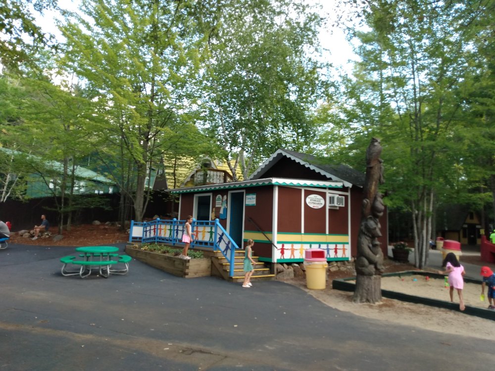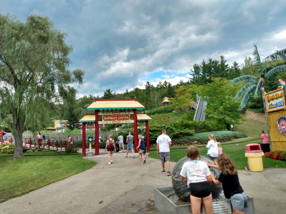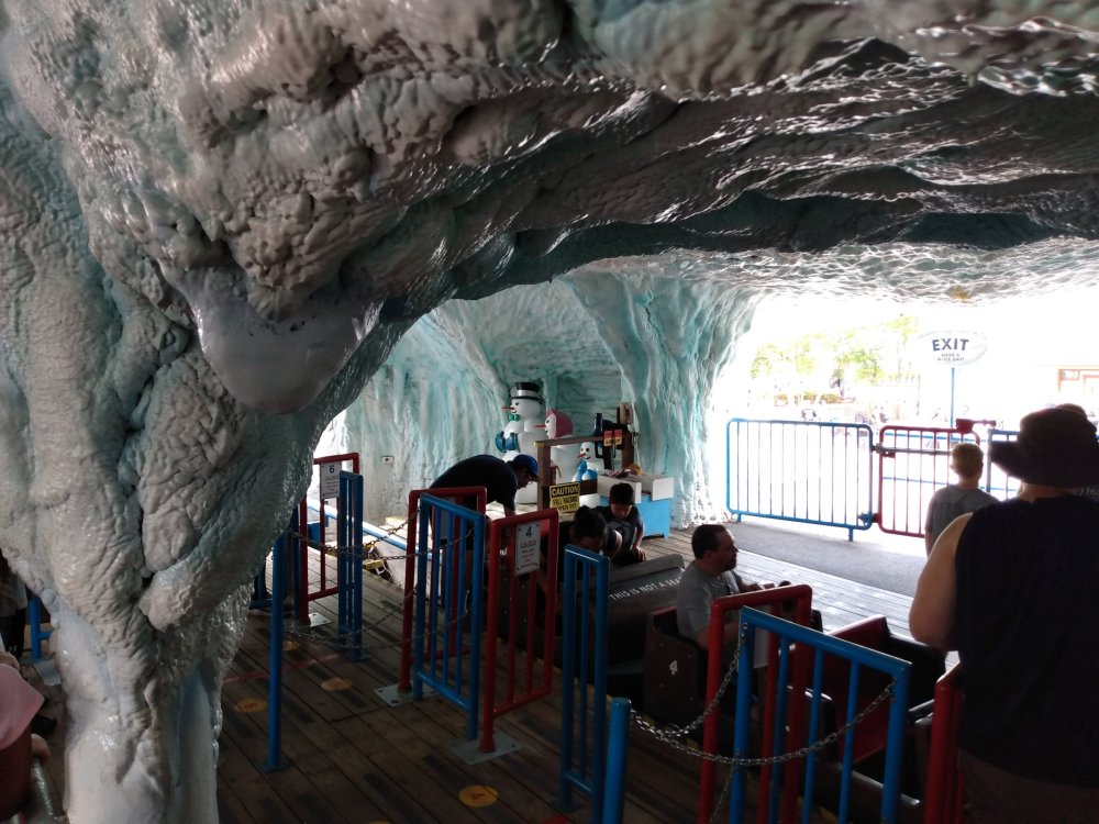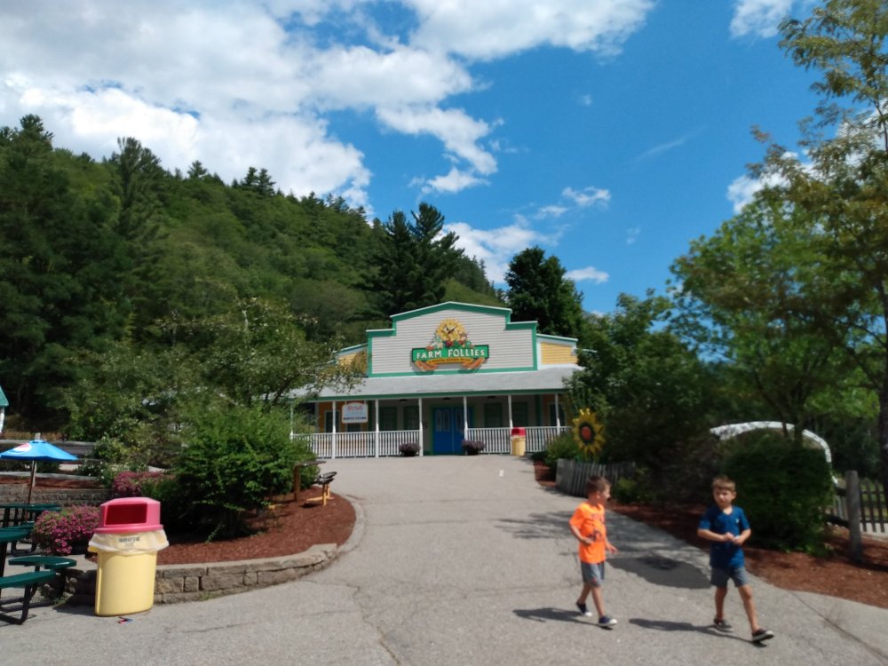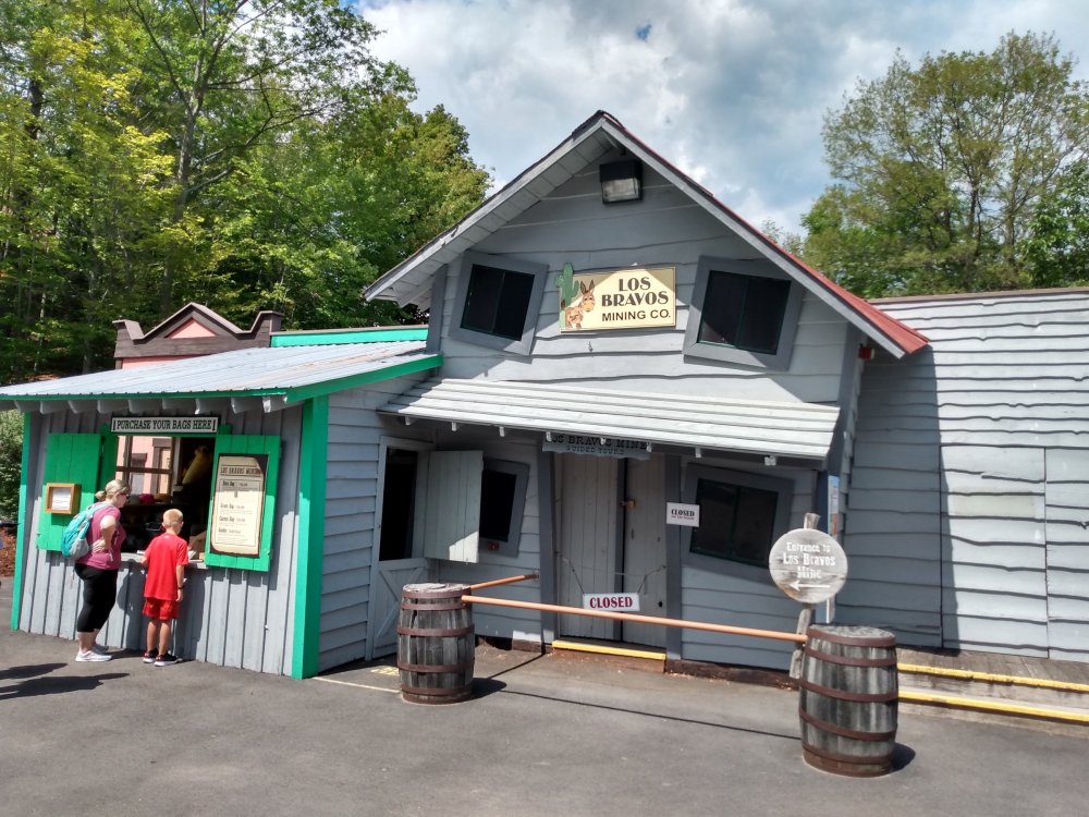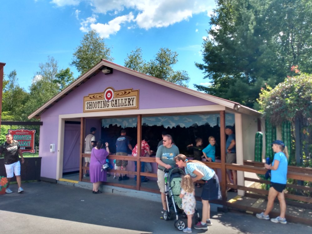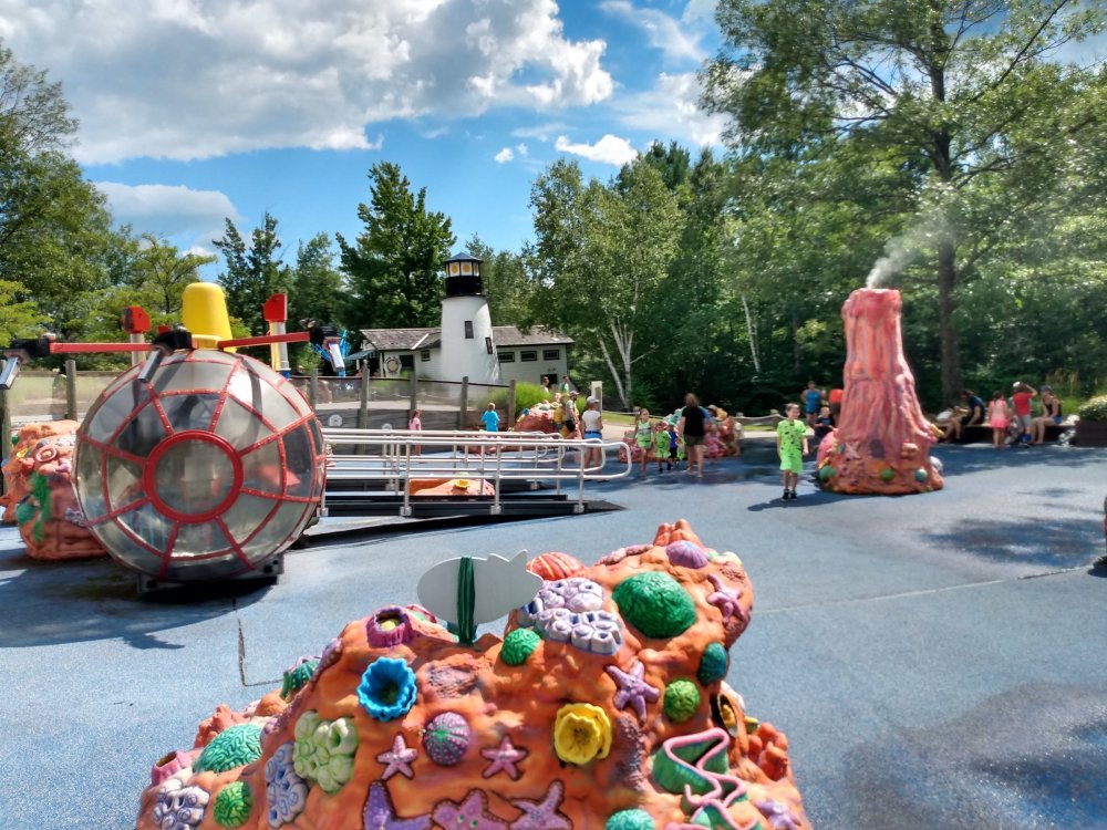 The next stop on my agenda for Saturday was.... Story Land, Intervale NH This is another family-focused park, with not too much for adult thrill seekers (besides Roar-O-Saurus). Thankfully, this place was included on my Palace Entertainment Platinum Pass, but I did find a lot of the kids stuff to be super cute. On with the report! First, the very bare-bones entrance plaza... ...and some sorely missed corporate sponsorship. So the first thing you come across here (if you go to the right, anyway), is life-size recreations of all of your favorite fairy tales. Here in the "kingdom" themed area, you have a few more classic examples... Including a pumpkin coach ride to... ...Cinderella's castle, complete with meet-n'-greets and photo ops. They also had this cool "assisted dress up" where staff would help your kid become a princess, knight, or whatever. There was a very small pirate themed area.... ...with a riverboat ride... ...and climbing structure (identical to one that used to be at an elementary school near my parent's house in Central NJ)... ...and a pretend jail. There was a "tales from around the world" section. This was apparently some sort of dark ride or walk through experience, but was closed. And finally, we come across the first coaster...Polar Coaster. Sadly not air conditioned on this very hot day. Anyway, this is a Hopkins/Morgan family coaster. About a 20 minute wait for the back row. Some decent forces throughout, especially on the final helix...kinda surprising for an obvious kiddie coaster. Some of the rest of the park.... ...including a splash battle... ...and their own version of a flying shoe ride. They even have a ball pit, sort of! Finally, it was time for the crown jewel of this park (or was it?), Roar-O-Saurus. It definitely is photogenic. 28 minute wait for the back row. It had a couple of nice pops of air, but it suffers from the same problem that Mine Blower does - on any kind of a turn, it jackhammers and shuffles around like its the trains job, slamming you every which way. Not fun. 3/10. Rounding out this park, here are some of the final pictures. And I'll close this par of the report with a truth-telling bag seen in the gift shop, featuring an insightful quote from a true legend.1 point