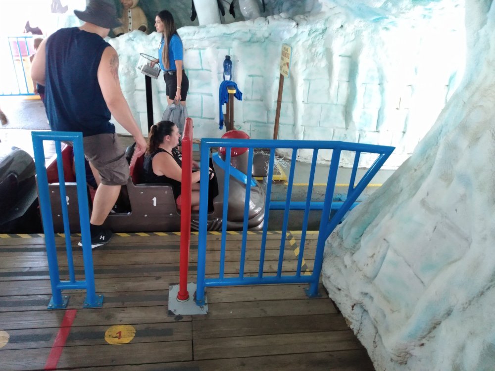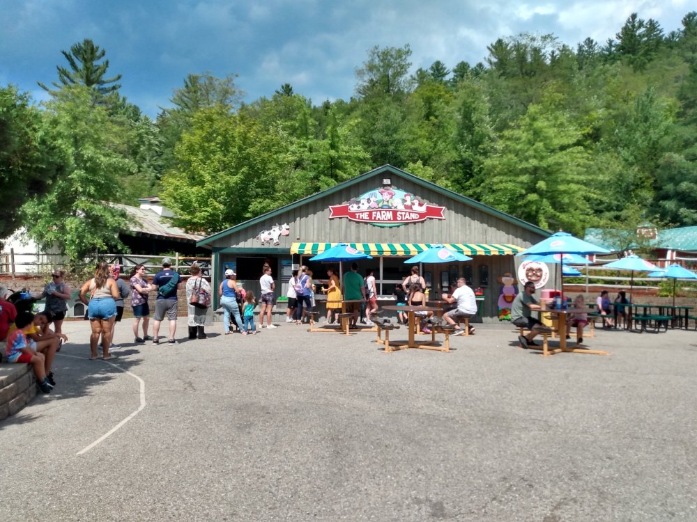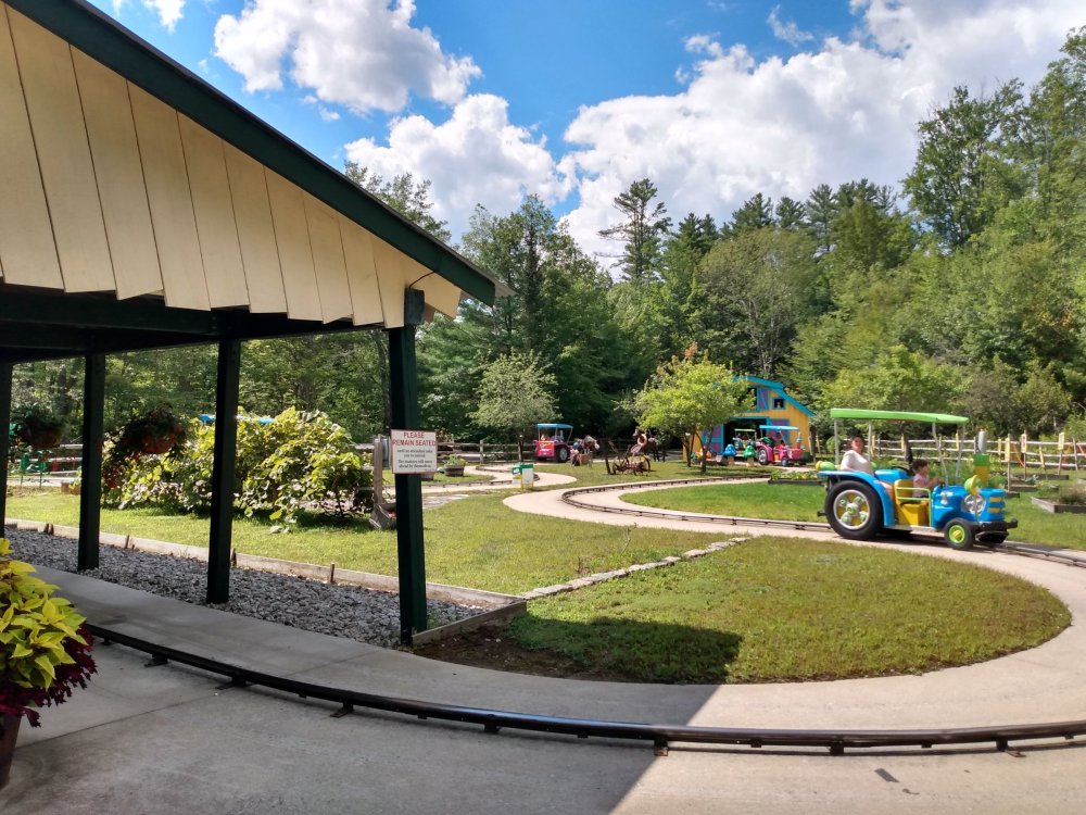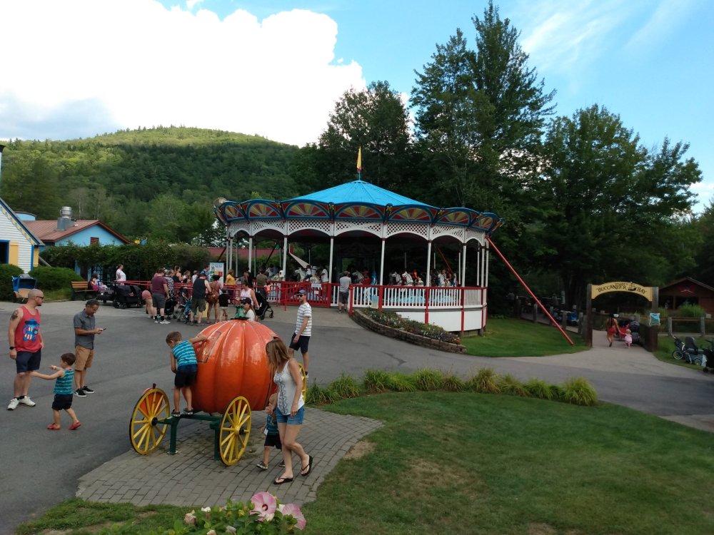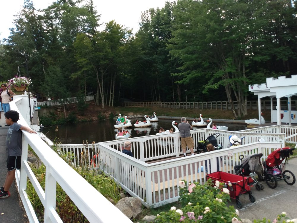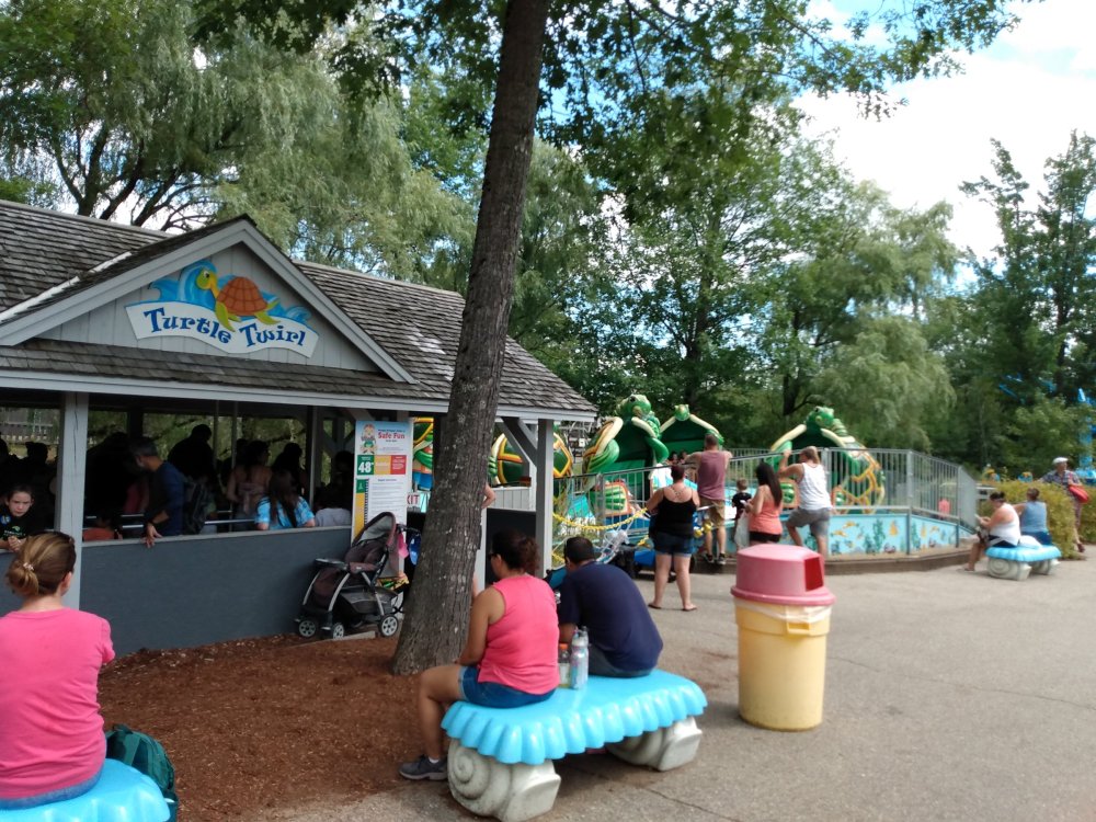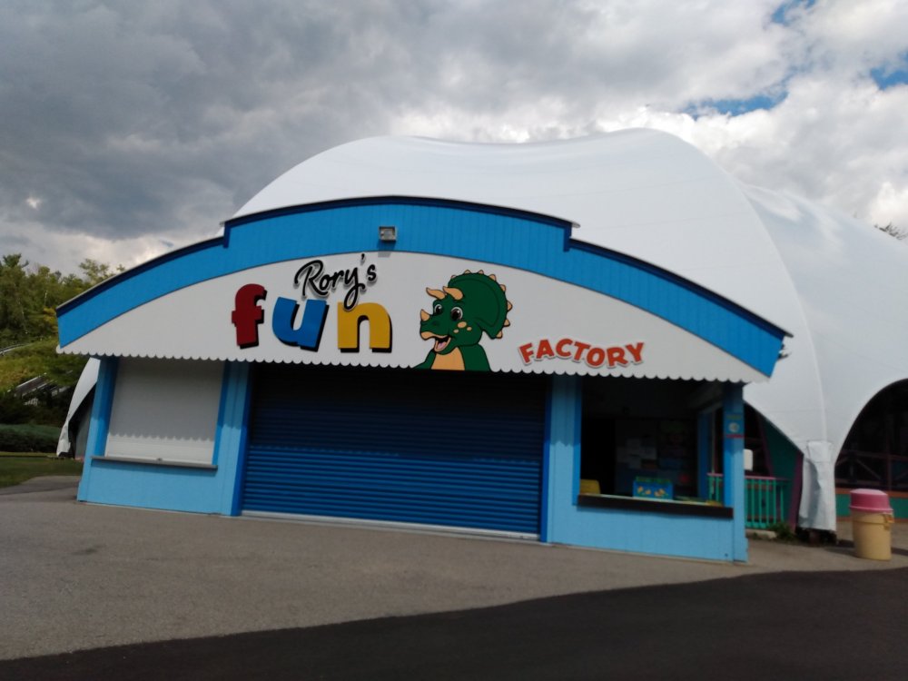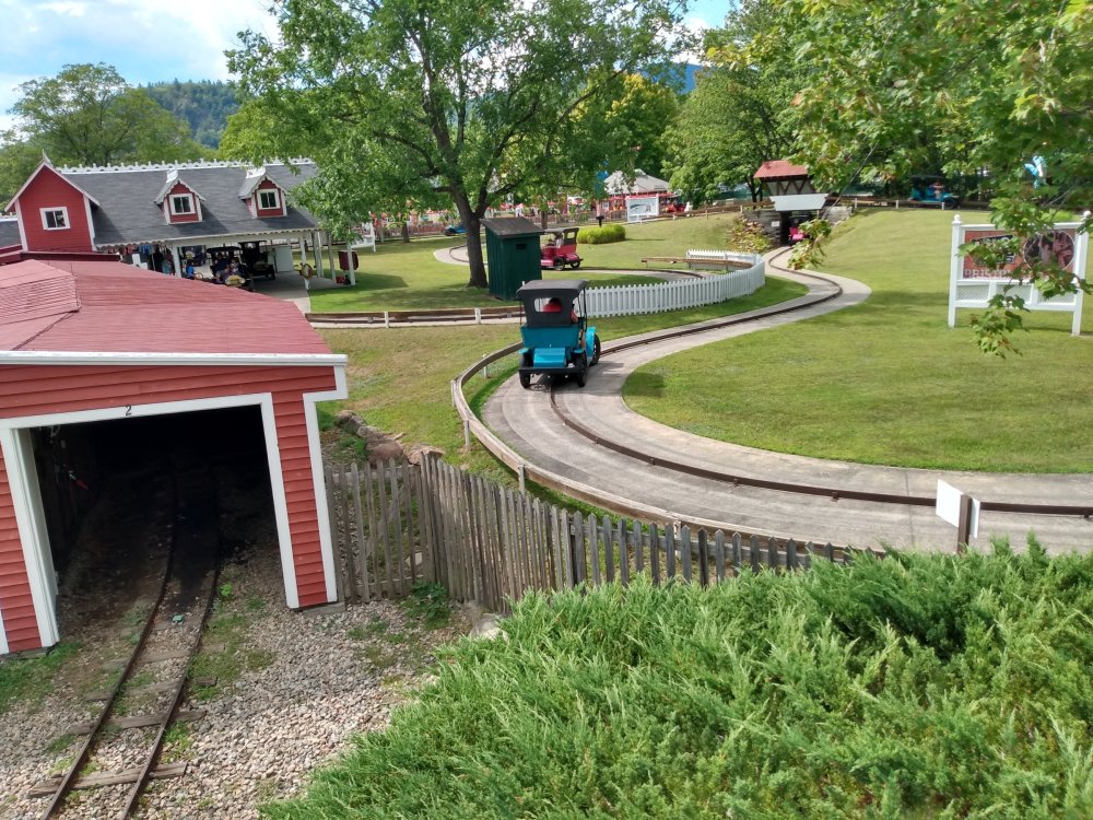 The next stop on my agenda for Saturday was.... Story Land, Intervale NH This is another family-focused park, with not too much for adult thrill seekers (besides Roar-O-Saurus). Thankfully, this place was included on my Palace Entertainment Platinum Pass, but I did find a lot of the kids stuff to be super cute. On with the report! First, the very bare-bones entrance plaza... ...and some sorely missed corporate sponsorship. So the first thing you come across here (if you go to the right, anyway), is life-size recreations of all of your favorite fairy tales. Here in the "kingdom" themed area, you have a few more classic examples... Including a pumpkin coach ride to... ...Cinderella's castle, complete with meet-n'-greets and photo ops. They also had this cool "assisted dress up" where staff would help your kid become a princess, knight, or whatever. There was a very small pirate themed area.... ...with a riverboat ride... ...and climbing structure (identical to one that used to be at an elementary school near my parent's house in Central NJ)... ...and a pretend jail. There was a "tales from around the world" section. This was apparently some sort of dark ride or walk through experience, but was closed. And finally, we come across the first coaster...Polar Coaster. Sadly not air conditioned on this very hot day. Anyway, this is a Hopkins/Morgan family coaster. About a 20 minute wait for the back row. Some decent forces throughout, especially on the final helix...kinda surprising for an obvious kiddie coaster. Some of the rest of the park.... ...including a splash battle... ...and their own version of a flying shoe ride. They even have a ball pit, sort of! Finally, it was time for the crown jewel of this park (or was it?), Roar-O-Saurus. It definitely is photogenic. 28 minute wait for the back row. It had a couple of nice pops of air, but it suffers from the same problem that Mine Blower does - on any kind of a turn, it jackhammers and shuffles around like its the trains job, slamming you every which way. Not fun. 3/10. Rounding out this park, here are some of the final pictures. And I'll close this par of the report with a truth-telling bag seen in the gift shop, featuring an insightful quote from a true legend.1 point