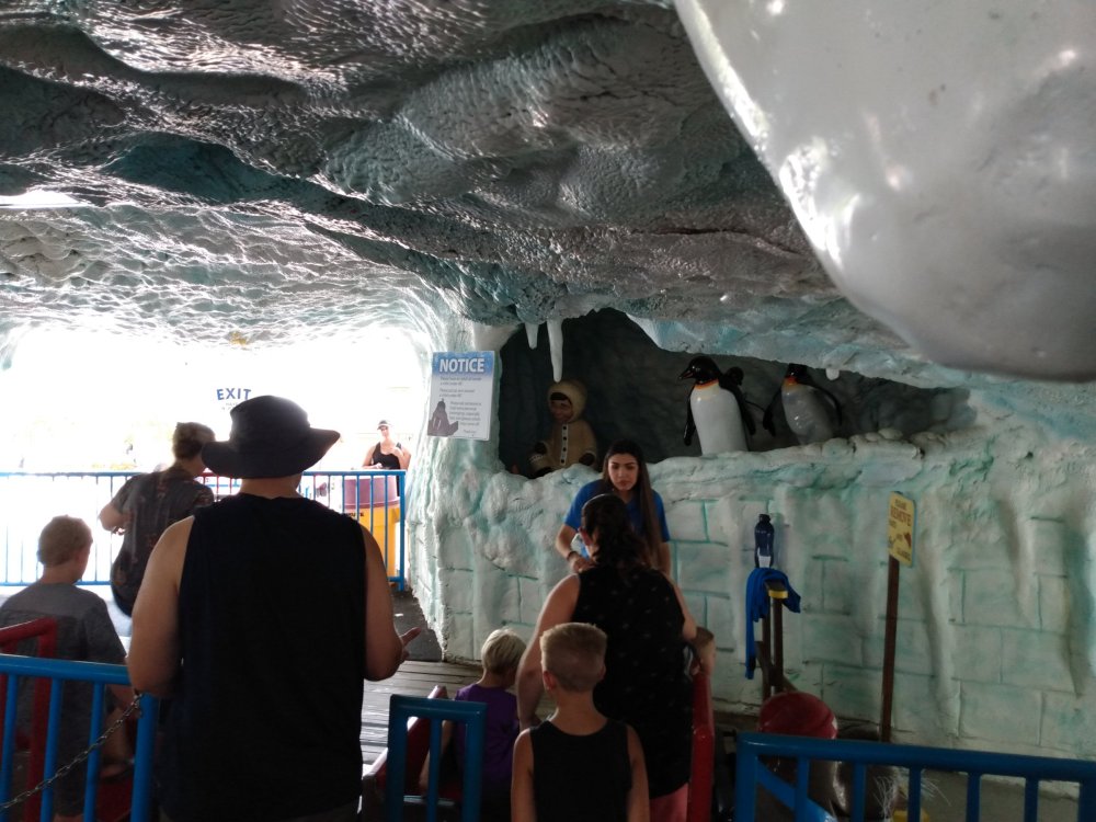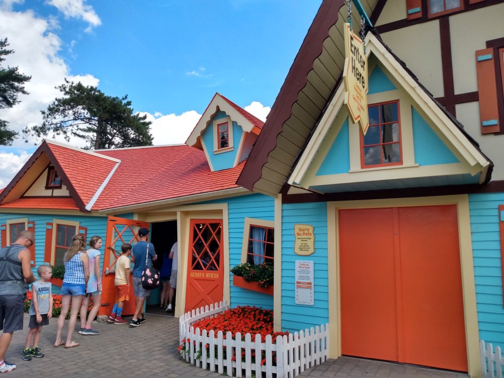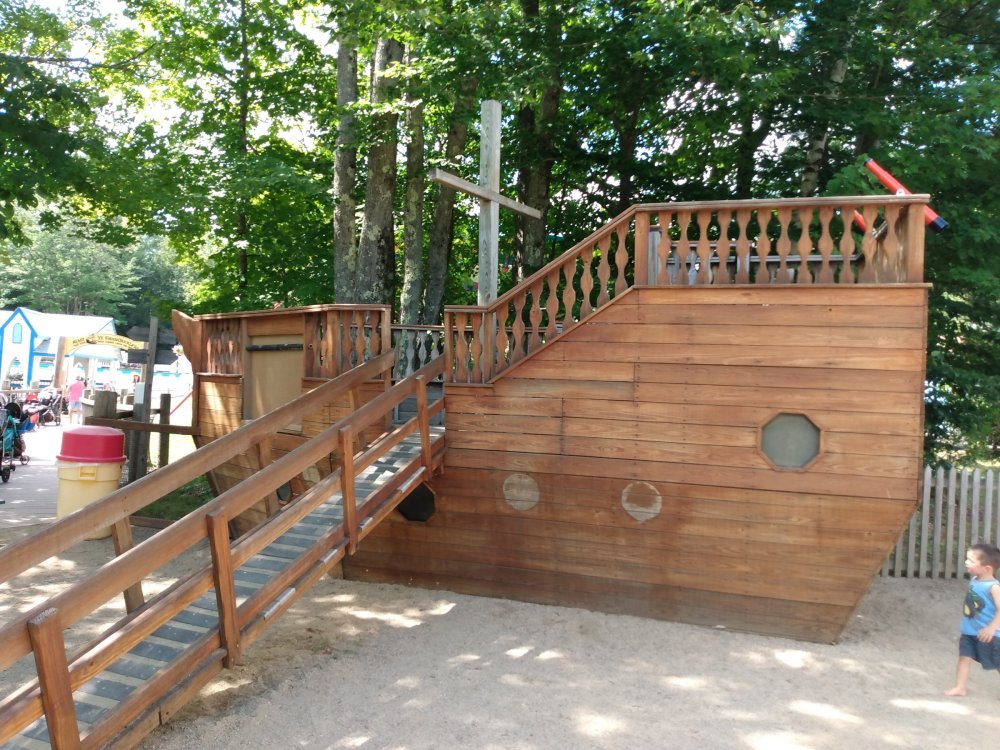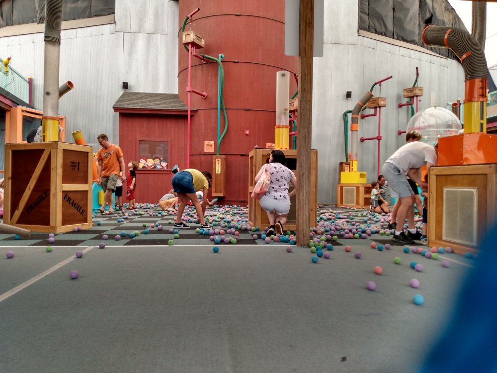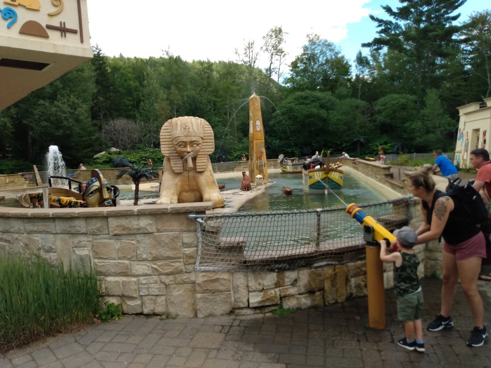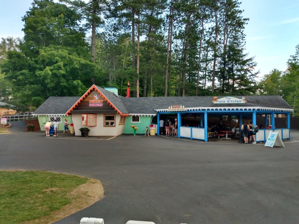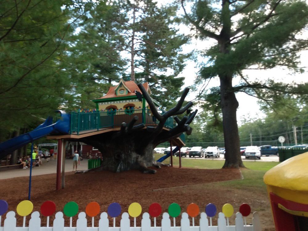 The next stop on my agenda for Saturday was.... Story Land, Intervale NH This is another family-focused park, with not too much for adult thrill seekers (besides Roar-O-Saurus). Thankfully, this place was included on my Palace Entertainment Platinum Pass, but I did find a lot of the kids stuff to be super cute. On with the report! First, the very bare-bones entrance plaza... ...and some sorely missed corporate sponsorship. So the first thing you come across here (if you go to the right, anyway), is life-size recreations of all of your favorite fairy tales. Here in the "kingdom" themed area, you have a few more classic examples... Including a pumpkin coach ride to... ...Cinderella's castle, complete with meet-n'-greets and photo ops. They also had this cool "assisted dress up" where staff would help your kid become a princess, knight, or whatever. There was a very small pirate themed area.... ...with a riverboat ride... ...and climbing structure (identical to one that used to be at an elementary school near my parent's house in Central NJ)... ...and a pretend jail. There was a "tales from around the world" section. This was apparently some sort of dark ride or walk through experience, but was closed. And finally, we come across the first coaster...Polar Coaster. Sadly not air conditioned on this very hot day. Anyway, this is a Hopkins/Morgan family coaster. About a 20 minute wait for the back row. Some decent forces throughout, especially on the final helix...kinda surprising for an obvious kiddie coaster. Some of the rest of the park.... ...including a splash battle... ...and their own version of a flying shoe ride. They even have a ball pit, sort of! Finally, it was time for the crown jewel of this park (or was it?), Roar-O-Saurus. It definitely is photogenic. 28 minute wait for the back row. It had a couple of nice pops of air, but it suffers from the same problem that Mine Blower does - on any kind of a turn, it jackhammers and shuffles around like its the trains job, slamming you every which way. Not fun. 3/10. Rounding out this park, here are some of the final pictures. And I'll close this par of the report with a truth-telling bag seen in the gift shop, featuring an insightful quote from a true legend.1 point