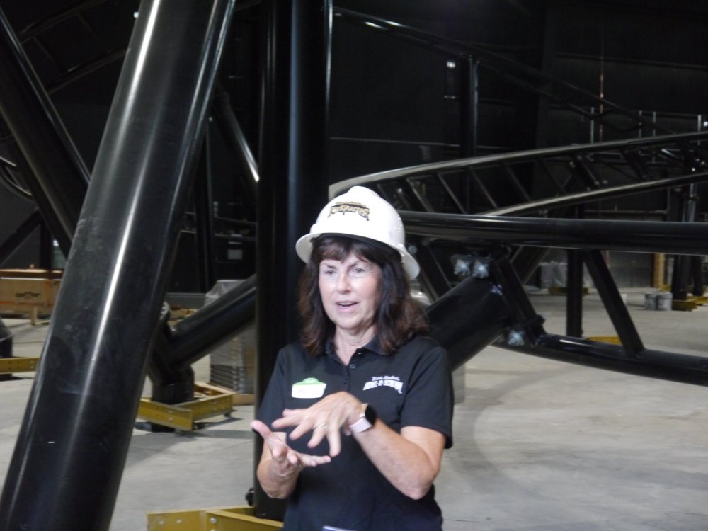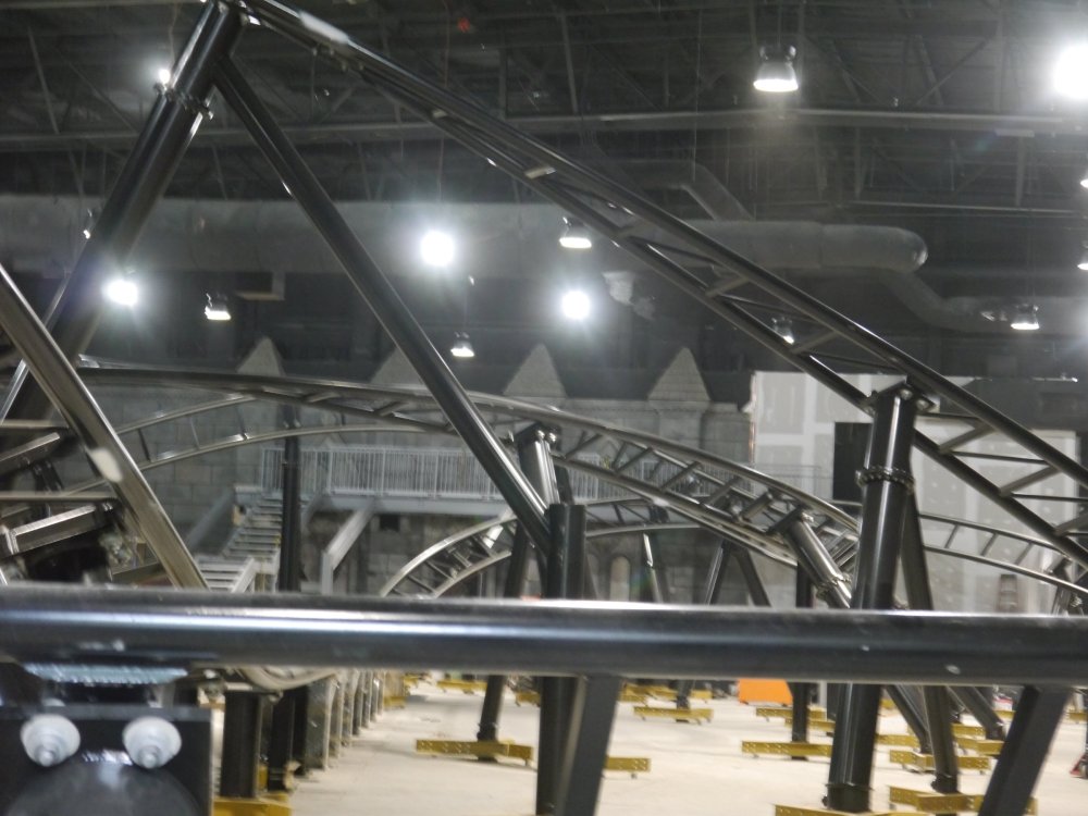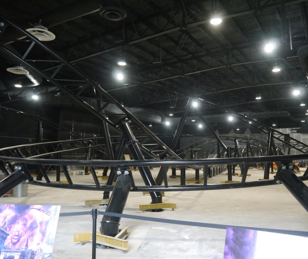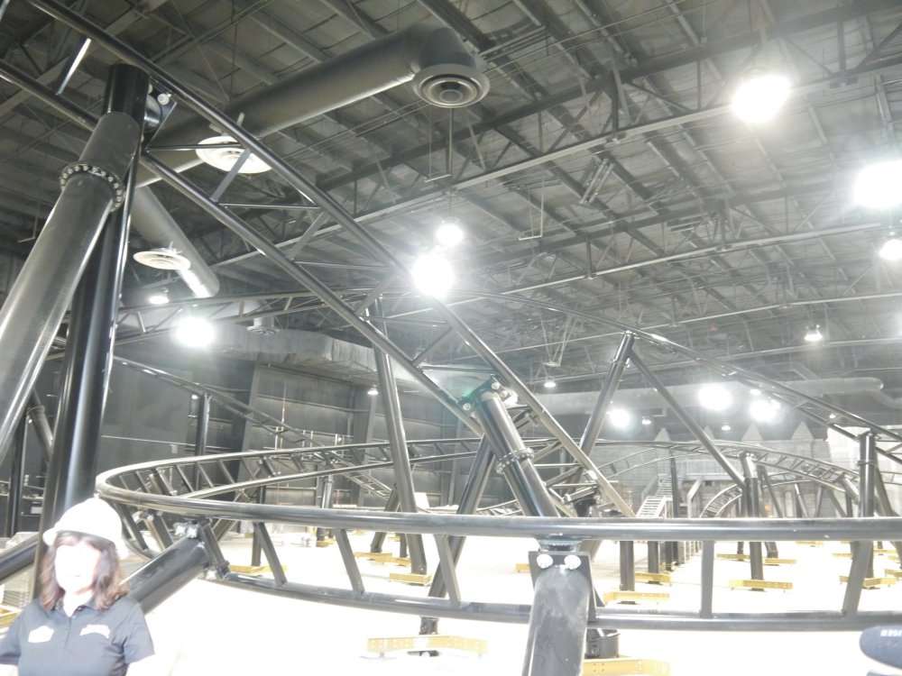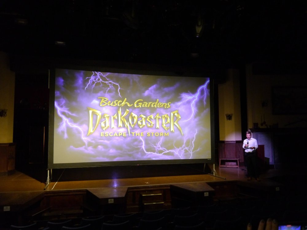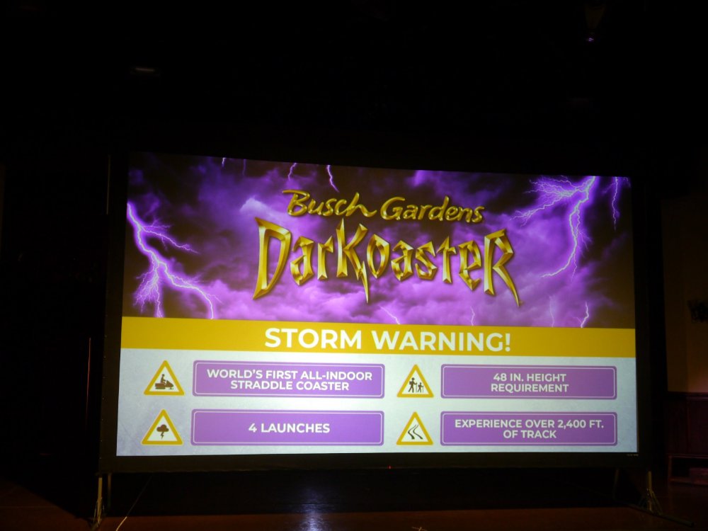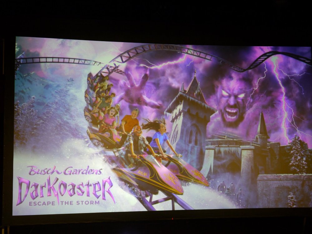 Busch Gardens Gives Us a Look at DarKoaster For years now, the building formerly known as DarKastle in Oktoberfest has politely housed some haunted houses and Santa's Workshop. But, at last, a ride is returning to the sinister home of Mad King Ludwig. In fact, the new ride, DarKoaster, looks like something that fits both Howl-o-Scream and Christmas Town: a crazy "snow mobile" ride in which you try to escape an evil blizzard! The ride has been a bit of an "open secret" for a while, but the park made a more formal announcement at a media event on Tuesday, September 6. After a brief presentation and video by Kevin Lembke, park president, they took us backstage to DarKastle to give us a look at the ride itself. But we had another visitor, too . . . Yes, Jack would like to remind us that while DarKoaster is a fine thing, indeed, don't forget that Howl-o-Scream starts on Friday, September 9! Here's the park's official press release for DarKoaster. Here's a look at the media day and DarKoaster. Welcome to the Abbeystone Theatre in Killarney. There will be no traditional Irish dancing today, but this makes up for it. I think the scary face in the storm might be old Ludwig. Park president Kevin Lembke tells us about DarKoaster. Remember--you have been warned! Here, we see coaster enthusiasts in their natural habitat. Be very quiet! We don't want to startle them. Suzy Cheely, vice president of design and engineering, was there to answer questions about the new ride. DarKoaster will feature projection-mapping effects and physical set pieces to tell its story. As I recall, we were standing in what used to be the maintenance bay for Curse of DarKastle. It was the entrance of the Distorted Dimensions HOS maze a few years ago, too. Lots of twisty track in here. It looks like they're repurposing some of the old ride's theming, too. You can see it a bit more clearly here. Here's a close up of one of the launch sections. A closer look at the twistiness of it all. Looks like it'll get pretty "stormy" in there. Gets pretty close to the ceiling there. One last look at the track. "COME BACK, YOU FOOLS! I was gonna make espresso." And that's a wrap from Busch Gardens--for now!1 point