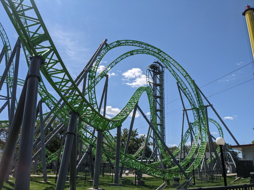 Monster is a very fun coaster with a few genuine "omg I'm gonna die" moments. Gerstlauer is pretty well-versed in those moments, though. Karnan is my #1 and it won't be dethroned anytime soon, but there were times on Monster that I felt the same fear of god overtake my brain. The first drop is KILLER, every inversion has sustained hangtime, every twist and hill has airtime, and there's an absolutely wild sharp kick to the right towards the end of the ride that attempts to buck every passenger out of the vehicle and throw them into the pink candystriper building across the midway. This ride alone is worth the trip to the park. Maximum one-train wait, I lost count how many times I got on.