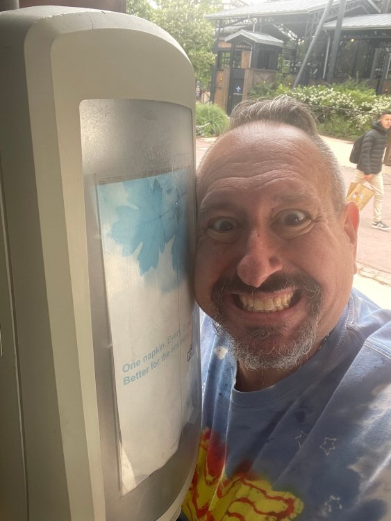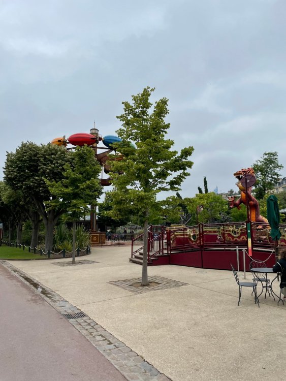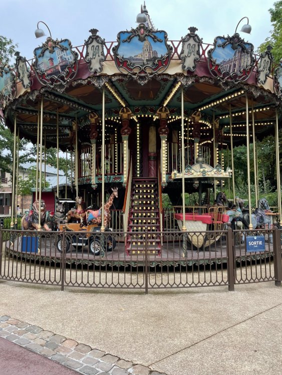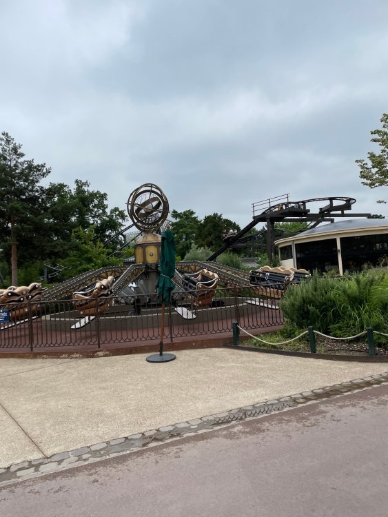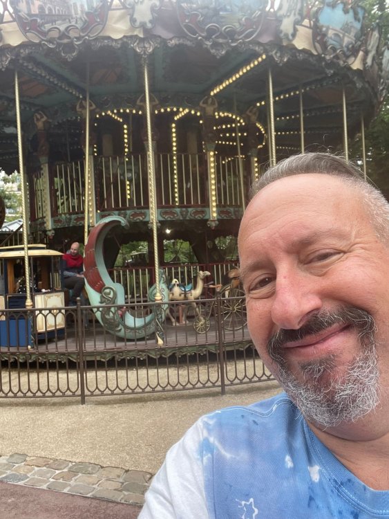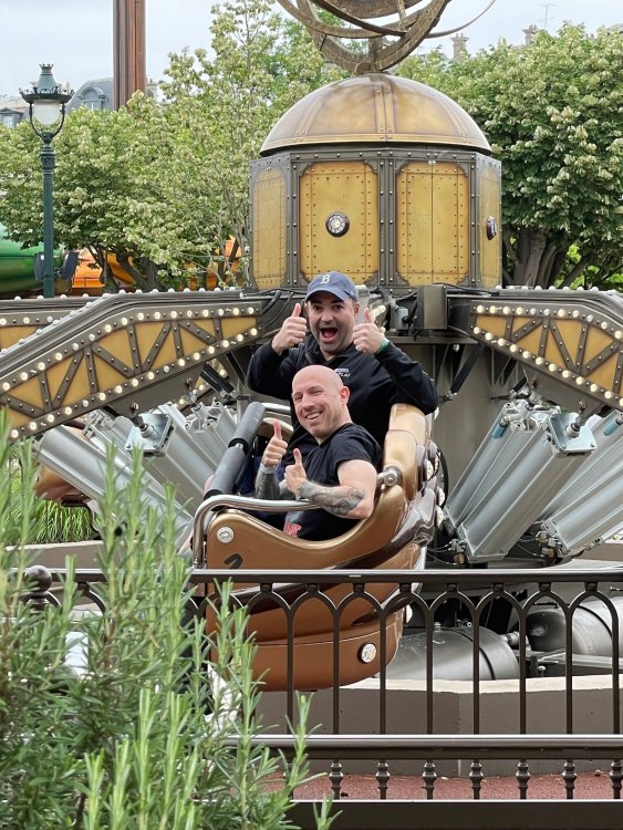 This past June, I was able to - thanks to TPR, experience parts of Europe for the first time ever. Anyone that knows me from here on the boards, knows that I tend to do pretty photo-extensive and detailed trip reports. and I planned to do one this time too - I took over 5300 pictures. But life got in the way, and unfortunately i've experienced some major trauma in the two months since the trip. At the urging of my therapist who has been encouraging me to "journal". . I'm going to go ahead and do this trip report - it SHOULD be done, as this was an absolutely amazing trip and I really want to share it with everyone! I can't promise it will be as detailed as I typically would be. I can't remember the names of some of the coasters, or might mix up the order of things. . . but i will do my best and hope you enjoy! this was an absolutely PACKED and awesome trip, and I expect this will take me a while to get thru. . but here's the first day. and this is going to be the first (and hopefully one of the very few times) that I'll be a bit sad here. The first pic I'm going to share is of my Late Husband, Nick. Its' the last pic I have of him healthy, as he dropped me off at the Austin airport at "are you're fucking kidding me?" early morning for the first leg of my flight: eventually got boarded and was on my way to Newark. Trip started out well. . with Stroopwafel and coffee! at Newark I had an almost 7 hour layover. It hadn't started out that way, but with the flights moving around so much between when I booked them and my actual trip? yeah, eventually I just said screw it and took the long layover instead of trying to move everything around again. Besides, they offered me a discount to get into the United Lounge. . not a great discount, but a discount. so I took it and headed that way. hey. . fancy schmantzy. . Newark all "decorated" for Pride Month. um. . ok. I spy Manhattan from the airport on my way to the United lounge huh. . this is a little uninspiring. I was expecting something more . . . complicated than a Hampton Inn complimentary breakfast buffet. ohhhhh. . ^ is for the "suckers" who pop in for something quick, and don't follow the long narrow hallway back to the end of the concourse. . because if you do? it opens up to THIS: now that's more like it. yeah. . I can kill 7 hours here. time to nosh. (hey, I'm a Jew, in Newark. . I can use "nosh" here) and I can grab extra napkins to put into my bag, so I have them for the trip, since I like to have more than one with me when I eat lovely view of Manhattan from up here in the lounge. . . better than the concourse. I napped and charged my phone, and eventually my flight to Paris was ready to board - conveniently right at the gate below the escalators from the lounge. I had booked an upgrade for the Newark-Paris leg, but on one of the many flight changes, they had switched me to a plane that didnt' offer that particular upgrade. so they bumped me to (I think it's called) "Premium Plus" not quite business class, but better than Premium, and the seats beyond those (Steerage?) ooo. . wide and comfy. . I was the last row in the section with these comfy reclining seats. a peek at what the folks in the section behind us got for a meal. . . not awful (while the cart was stopped next to me) and looks much better than the Lean Cuisine that the rest of the plane got. but up here in "Premium Plus" ? we got real silverware! and, what I think, was Beef Bourguignon all I know is that it was damn good. . . view of the sun setting. . or rising. . I can't really recall at this point. Must have been rising tho, because I spent day in Paris once landing. but before landing, we got another meal service: Peach/Hazlenut Crepes with fruit and granola yogurt & a croissant. they kept us stuffed on the plane! due to delays, I arrived too late to meet up with the TPR group that was headed out for Paris Sightseeing, but AJ's plane had also had a bit of a delay and he kindly waited for me at the hotel. Rooms weren't ready yet, so once bags were stored, and he figured out the train route to take, we headed off to meet up with everyone at a small, but lovely park in the center of Paris called Le Jardin d'Acclimatation. we arrived about two hours after most of the group that was with Robb & Elissa had arrived, and had already ridden most things, so AJ and I focused on the two coasters that he had really wanted to ride (I was fine riding anything. . at this point I had been up for almost 30 hours, so was just happy to get to meet up for some sightseeing). the place is bigger than I had expecting, and if I ever go back will spend some time exploring, as it really was a lovely place with a gorgeous Carousel up front. . but since we were running late, and coasters were more important at the moment? just snapped a pic of it. (the group had stopped to grab a snack, so AJ and I had about 20 minutes or so until they were headed out and we were determined to be with them when they did) not very busy on this particular day. . but a nice assortment of family rides, and some small and powered coasters. Pic courtesy of Brad Roach, I think? it was a really fun Bobsled. to ride the other coaster I wanted to go on, I think it was a spinning mouse? I recruited Jon as well as Ian and his hubby to try and get some good spinning. and here's Ryan and Andrew riding one of the flats: oooo. . Napkins!!! someone was riding the carousel as we headed towards the front gates, so stopped to snap a pic of this fabulous vehicle, even tho she had chosen the pony to ride on as noted, lovely landscaping nice train. the group as we were about to head to the Train Station. . pic Courtesy of Robb Alvey with Elissa's excellent guidance, a few trains later we emerged from a station into the main square with the famous Arc de Triomphe I couldn't believe I was here. . seeing things that I never thought I'd see in person. it's STUNNING. this was just a quick stop - one of several - so we didn't cross the traffic t