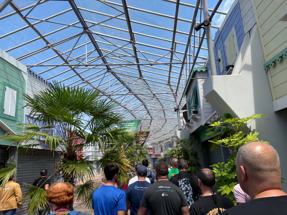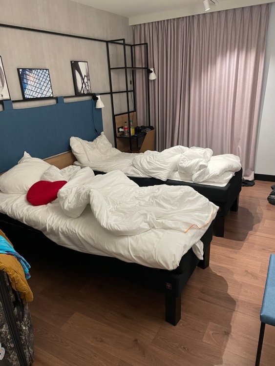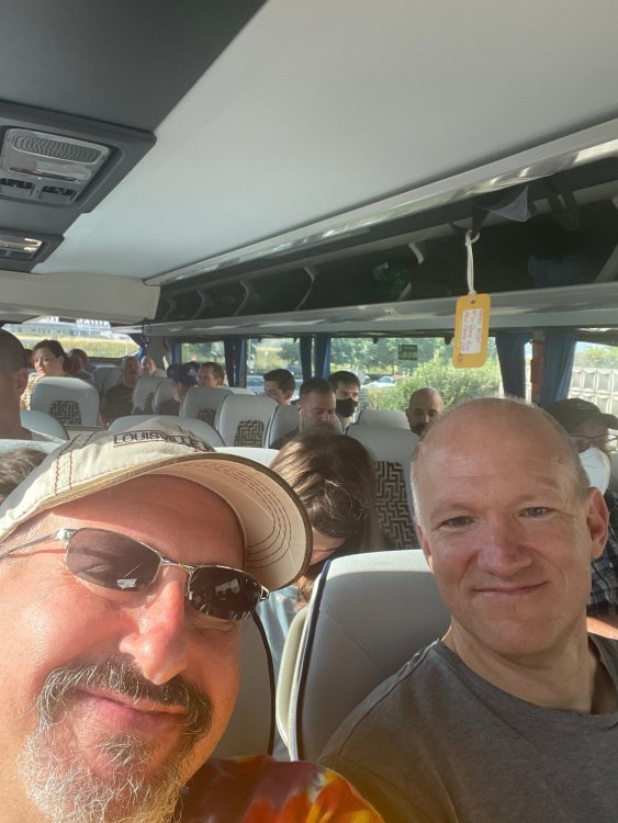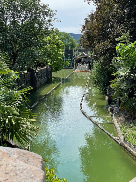 part II, continuing on to Europa park: So back on the bus, and we raced a French train to IKEA. . . wait. . we're not going to Sweden on this trip! but the French Countryside is absolutely lovely charming and before we knew it? we were driving parallel to the Rhine River. . ready to cross over from France into Germany. hmmm. . appears the boarder is down to one lane here at the crossing (over a dam) a look at a closed dam gate. . and an open one. . exciting, I know! it wasn't as pretty as I had expected the Rhine river to be. . .but I must admit, it was very exciting to cross a river I had only ever read about in books. I have no idea what this sign means. . maybe the name of the township we passed thru once crossing the border? but this one I get. . . .this is actual border between Germany on the left, and France on the right. Managed to get a perfect picture as we passed it signs, signs, everywhere a sign, no idea what any of them mean, but I'm glad our driver (who was an awesome guy - even if not Franklin) did! and soon enough we pulled up in front of the incredible El Andaluz (themed to a Spanish Villa).. which would be our home for a few nights. it's one of several heavily themed hotels on property, and this one is conveniently located right next to the "Resort Entrance" gate, and also connected via underground tunnels and walkways to the other themed hotels by here, mainly Hotel Colosseo (themed as a Roman coliseum) it's also (apparently) conveniently located next to the monorail which will bring you around to the front gates of the Park. . . but that's something I never managed to do during our visit! There is simply SO much to do at Europa Parc, that I never had time to take the monorail, or even go out the front gates. (but why would I when the Resort gate is right by the hotel. . literally). tho I DID take the shuttle bus (conveniently located just outside the hotel) to go to visit Rulantica. .the giant indoor waterpark, that we were invited to check out during our visit anyways. .the hotels are all pretty heavily themed. . even the statues out front moved, and interacted with guests coming in. Impressive as hell. Elissa went and checked us all in, and came back out with room keys and entrance tickets (and other assorted goodies). . here's what the Europa Park tickets look like. the rooms at El Andaluz vary greatly, might just have one bed, and some bunk beds on the wall. . or two small beds. . or two queen size beds. it was just luck of the draw what room you ended up with. . . but James and I got a lucky straw and not only ended up with a very large room (two queen beds): with a huge bathroom: but also? right on the corner of the hotel. . . literally directly overlooking the Resort Guests Entrance to Europa Parc! that's the Resort entrance on the left of the yellow tent. wowza! we had a great view of the main Monorail too.. even if I didn't get to ride it around the park, I still go to see it in action (very much looks like Disney's, tho I haven't seen those in years) we were only the 2nd floor, so looking out of our room the other direction - towards the front of the hotel. and a view looking straight out. . at the monorail track (and of course, I didn't wait for a Monorail to be on it. . but still. . . look how lovely this is!) all settled in, we headed down to the lobby to meet a group of TPR trip participants to see what we could do about dinner, and explore the hotel (s) the chandelier in the main lobby is super impressive. hell. the whole lobby is impressive. It really is quite immersive. walking down some of the hallways to check out the restaurants available here. . . as noted. . heavily themed! even the toilets are themed, with piped in creaking sounds, and clanking of swords. yes, this is still inside our hotel! one of the eateries has outdoor seating options among the rooms/wings. we checked out the Brazillian style meat buffet in El Andaluz, but decided to skip it because we were eating there as a group the next night. And the Tapas restaurant looked good. . but let's head over to Colosseo to check out the options there, since they are supposedly very good Italian food offerings. a Model of the hotel theming in the tunnel headed over there from El Andaluz coming out to the front entrance of Hotel Colosseo yup. .heavily themed here too. . . cool manikins guarding the front entrance. and bewbs. . I mean. . art. . . stepping out into the main Courtyard of this hotel is impressive as hell. I mean, I loved our rooms, and very much enjoyed our hotel. . but this one is incredible too. (and there are people sitting up there in the section of the Colosseum ? wow.. will have to check that out later for the view) most of the group came over here to check out dinner options. . just like Disney tho, most everything here was booked solid (or had a long, long wait). . I guess when the park closes between 6-7, the restaurants are gonna get full, since all the guests staying are back from the park. so we headed back to the Tapas restaurant in El Andaluz, as that one we had checked out earlier and didn't have any waitlist. we joined a group from the trip of 7-8 people, and really enjoyed the meal, as well as getting to get to know everyone. we were seated in a covered "patio/greenhouse" section of the restaurant. with nice views of the surrounding hotel while we ate. (El Andaluz interior courtyard, gardens, and pool in the back there) interesting "rural" chandelier. . not sure if it was wood, or animal horns. . but I think horns? the menu, which I wish I had a picture of the inside of. .as I know the offerings all looked really good, and i know I really LOVED what I got. But I can't really remember exactly what it was. (no big worries tho.. of course I took pictures) the group at our table. . . . . .and going back to *edit*. . because just noticed that Jon had his wallet open, and dont' want anyone to zoom and get his personal info. . LOL I do recall this was a Terrine of tartar, t
