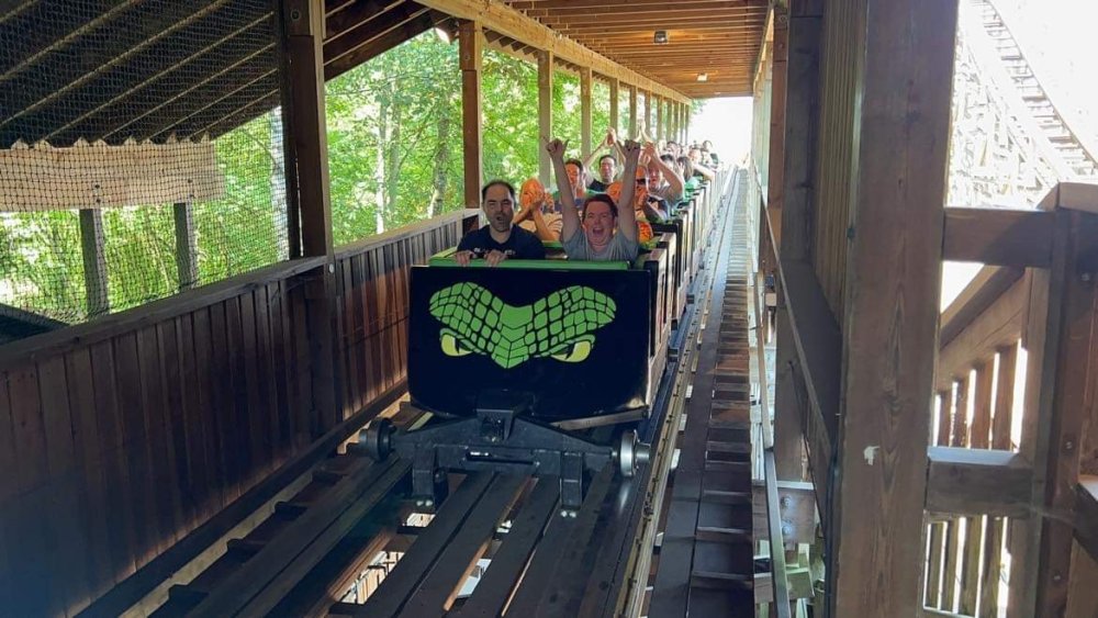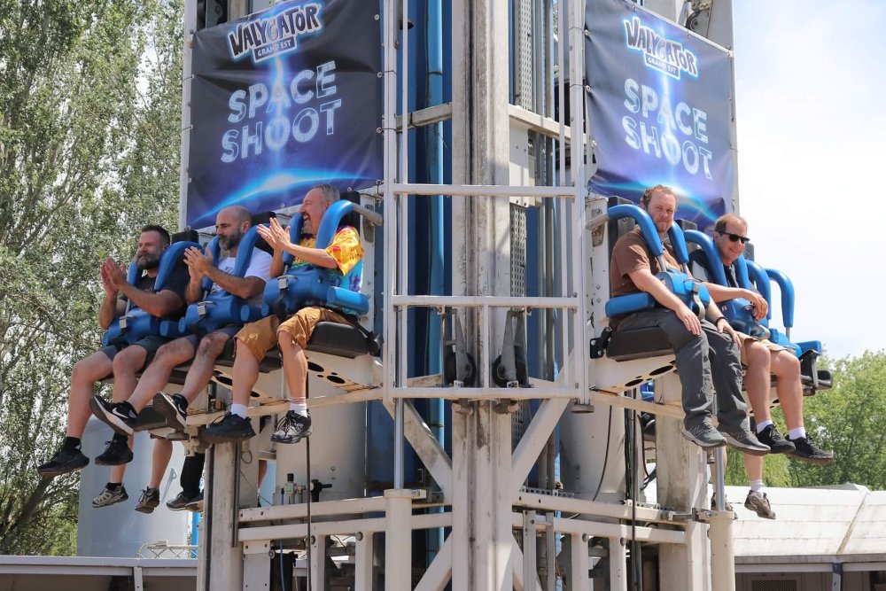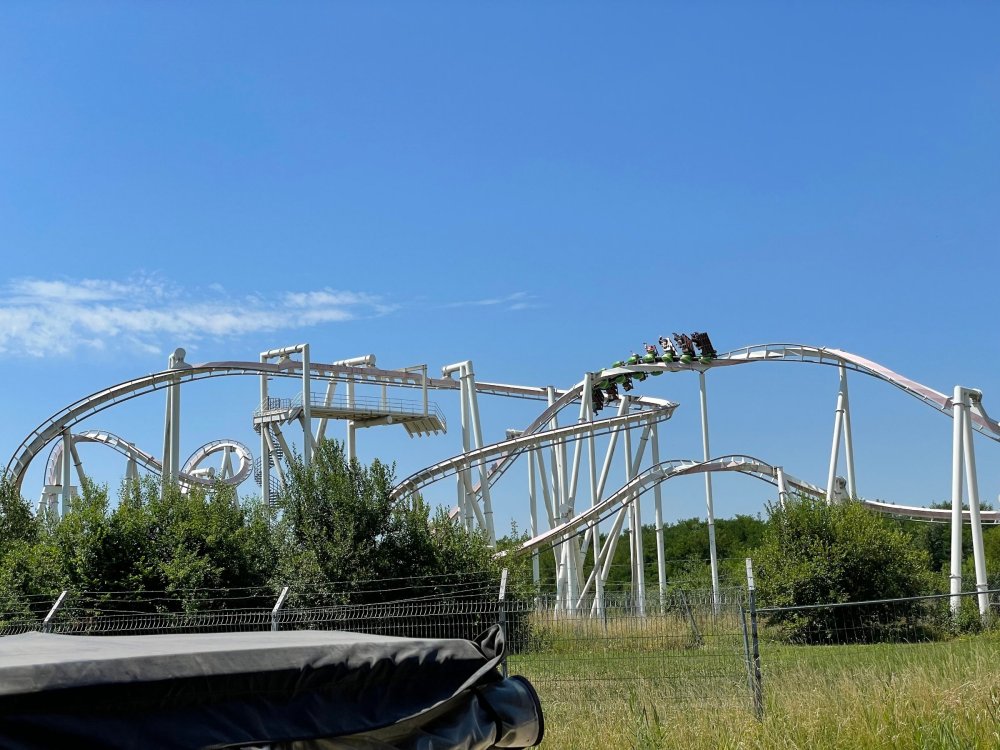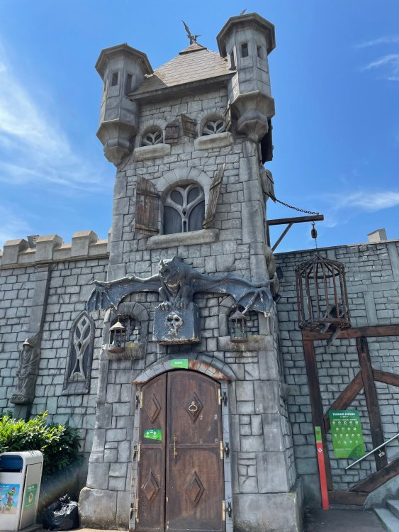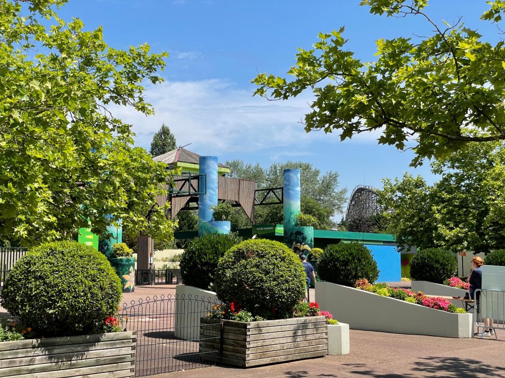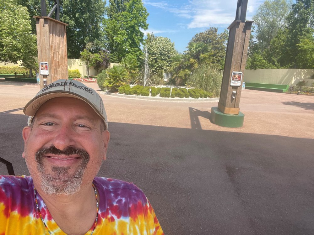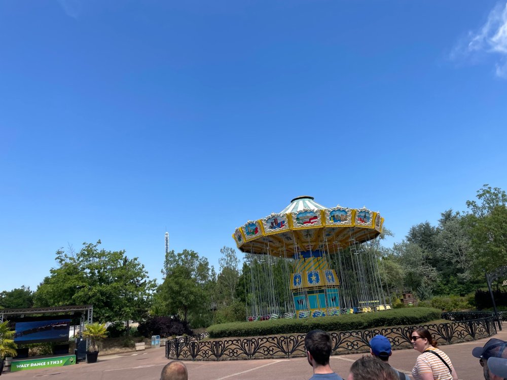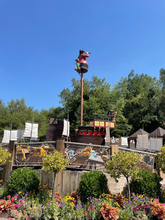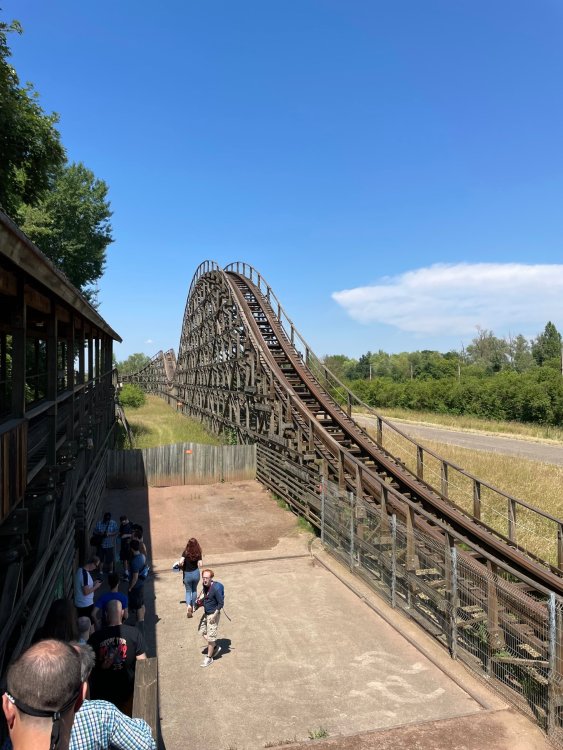 On to the official day one of the trip! this was a packed day, out of the lobby and on the bus at 8:30am, driving from France to Germany (with a bonus surprise park along the way) and checking into hotel El Andaluz at Europa park post 7pm - too late to go into the park (closed around 6pm this day), but early enough to explore the hotel and surrounding hotels - which were all super neat. so I will break up day 1 into two parts. first off, let's have a look at the hotel at the Airport in Paris where we had stayed, Hotel Ibis. it was very typical of a European Hotel (so I was told). . fairly small room, with two small single beds (with very thin mattresses). oh, it was fine for staying in overnight, but glad we weren't here for multiple nights, as the beds were probably the most uncomfortable out of all the hotels we stayed in on the trip. But hey, at the end of the day? I'm in Paris (at the airport, but in Paris. .so I'm not complaining!). the view of the hotel area at this stop for the airport shuttles as we were walking to the bus that would be our main mode of transportation for this trip. The Paris airport is HUGE! on the bus! and ready to go! I think there were 36 of us, on a bus that sat 50? so plenty of space to spread out and move around. . although I ended up sharing a row with my roomie James for the entire time we were on the bus thruout the trip (such a wonderful guy, and he put up with me as I got more and more stressed about what was going on at home during the trip. Both on the bus, in Disney, and in the room). Really. . James is gold. The TPR crew on official day one of the trip, as we're leaving the CDG airport in Paris. Photo courtesy of Robb this was on the window, and just cracked me up, every time i looked up at it. I mean, I know it's directing you how to use the emergency "crowbar" thing to break the window out in case of an accident. . but "Nooduitgang" makes me giggle. some pics of the French Countryside as we began our trip! windmills, windmills everywhere. . so many windmills. and really, rather soothing and pretty. huh. . what's this? empty parking lot? Tho I really like how the shade for the parking is made from Solar Panels. hmmmm. . what could they be generating electricity for? this is a LOT of parking. . I feel like I'm Charlie on "Lost". . "where AREEEE we?" I spot a roller coaster thru the trees! yup, we're at Wallygator Parc in Maizières-les-Metz, Lorraine, France ! but ..why is it empty? wow. . this is Tuesday, and the park is not actually open! But Robb made some magic happen, and the park opened just for us on the trip for a few hours so we could experience their 3 big coasters: Comet (a Vekoma Corkscrew), Anaconda (an infamously rough woodie) and Monster (a Raptor clone, relocated from Japan, but it runs with no midcourse). OMG. .thanks Robb! (or should that be "thanks?". . a Vekoma and a rough woodie as the first two coasters of the trip. . . after they haven't been running for a few days since the park hadn't been open since Sat). lol. .I'm teasing. . this was WONDERFUL! a couple of folks from the park met us at the front, and along with a couple of operators - who led us from ride to ride to run them for us - we headed into the closed park! so strange to be walking into a closed park. . . it was eerily quiet, and such a gorgeous day. I spy a carousel! wow..another absolutely stunning Carousel. 2nd day in a row, I didn't ride tho. . as this wasn't what the operators and the park had opened for us to ride. But it was so pretty I stopped to take a picture anyways, just happy to get to see it. how about a picture of Erik taking a picture of Ian taking a picture of me who was taking a picture of them? because? why not? the park is absolutely lovely. . there is some really nice theming thruout the park (which is odd because the theming is so nice, but then a lot of the rides themselves didn't seem to have much theming put into them). But still a lovely park.. . and this river cruise ride (which ended up being a very popular ride in most of the parks we visited) was very pretty, even with not a whole lot of theming. oh, I spoke a little too soon. . . entering Jurassic Park..sorta the dinos are part of the themed Raft ride, which has the rafts going thru a dinosaur enclosure while trying to survive escaped dinos. it looked really well done, but as the park was closed today it wasn't operating. I think this was a haunted house attraction? the exterior was interesting. . . but left me a little confused on what the theming/storyline was supposed to be. Celtic spirits perhaps? oooo..they have a Zamperla Air Race? I love the one at SFFT, although that one goes up. this is a park that has a nice assortment of flats and thrill rides! and then we came around the corner and this came into view.. our first coaster of the official trip: Comet. a Vekoma Corkscrew. the operators ran a couple of test trains while we watched nervously and took pics. it sure LOOKS pretty. . . Crossing Fingers and ready for a ride! (pic courtesy or either Robb or Elissa) whee! front row! know what? it was really . . . good ? OMG. .it was good! I think I rode it three times before I stepped off to take some pics of my own. Never thought I'd enjoy a Vekoma Corkscrew. . but maybe because it *hadn't* warmed up? it was very enjoyable the pics I took of it.. with the "Space Shoot" tower threading the needle the park reps were really excited that we were enjoying ourselves. . and they offered to open up the Space Shoot tower if anyone wanted to ride for us, before we headed over to the next coaster. i think there was complete agreement that, "yes, please". . . so they tested it a few times, and opened it up for us to get a ride or two. it was a really fun S&S Space Shot tower . . I enjoyed it. and this one had a little bit of theming too. I mean, not much, but a little bit in the queue and around it. (pics courtesy of AJ or Brad, I believe in this case) as we headed over to the parks woodie, An