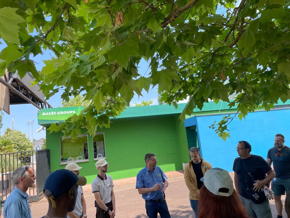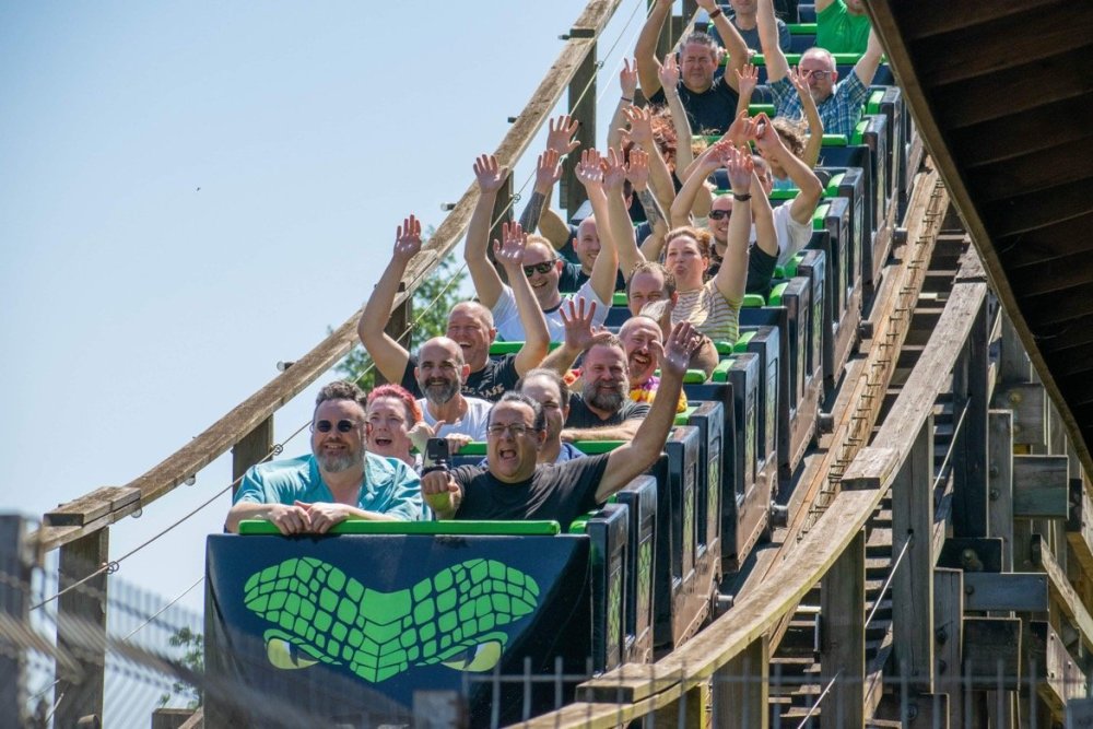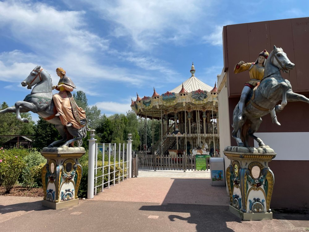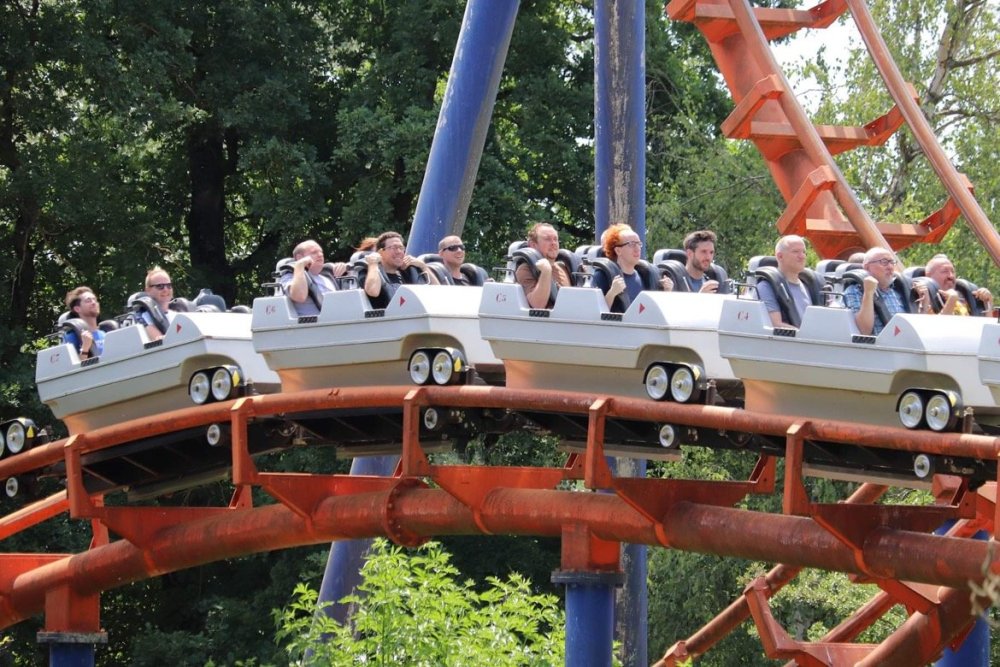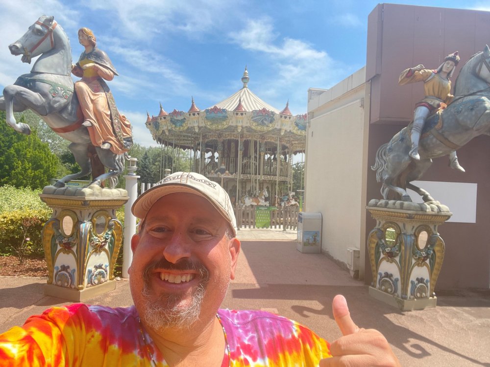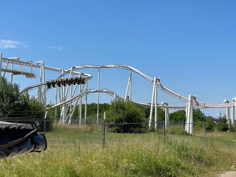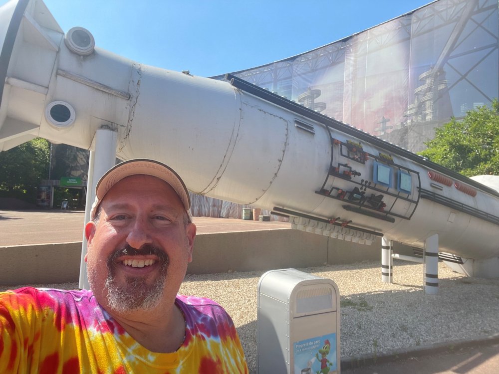 On to the official day one of the trip! this was a packed day, out of the lobby and on the bus at 8:30am, driving from France to Germany (with a bonus surprise park along the way) and checking into hotel El Andaluz at Europa park post 7pm - too late to go into the park (closed around 6pm this day), but early enough to explore the hotel and surrounding hotels - which were all super neat. so I will break up day 1 into two parts. first off, let's have a look at the hotel at the Airport in Paris where we had stayed, Hotel Ibis. it was very typical of a European Hotel (so I was told). . fairly small room, with two small single beds (with very thin mattresses). oh, it was fine for staying in overnight, but glad we weren't here for multiple nights, as the beds were probably the most uncomfortable out of all the hotels we stayed in on the trip. But hey, at the end of the day? I'm in Paris (at the airport, but in Paris. .so I'm not complaining!). the view of the hotel area at this stop for the airport shuttles as we were walking to the bus that would be our main mode of transportation for this trip. The Paris airport is HUGE! on the bus! and ready to go! I think there were 36 of us, on a bus that sat 50? so plenty of space to spread out and move around. . although I ended up sharing a row with my roomie James for the entire time we were on the bus thruout the trip (such a wonderful guy, and he put up with me as I got more and more stressed about what was going on at home during the trip. Both on the bus, in Disney, and in the room). Really. . James is gold. The TPR crew on official day one of the trip, as we're leaving the CDG airport in Paris. Photo courtesy of Robb this was on the window, and just cracked me up, every time i looked up at it. I mean, I know it's directing you how to use the emergency "crowbar" thing to break the window out in case of an accident. . but "Nooduitgang" makes me giggle. some pics of the French Countryside as we began our trip! windmills, windmills everywhere. . so many windmills. and really, rather soothing and pretty. huh. . what's this? empty parking lot? Tho I really like how the shade for the parking is made from Solar Panels. hmmmm. . what could they be generating electricity for? this is a LOT of parking. . I feel like I'm Charlie on "Lost". . "where AREEEE we?" I spot a roller coaster thru the trees! yup, we're at Wallygator Parc in Maizières-les-Metz, Lorraine, France ! but ..why is it empty? wow. . this is Tuesday, and the park is not actually open! But Robb made some magic happen, and the park opened just for us on the trip for a few hours so we could experience their 3 big coasters: Comet (a Vekoma Corkscrew), Anaconda (an infamously rough woodie) and Monster (a Raptor clone, relocated from Japan, but it runs with no midcourse). OMG. .thanks Robb! (or should that be "thanks?". . a Vekoma and a rough woodie as the first two coasters of the trip. . . after they haven't been running for a few days since the park hadn't been open since Sat). lol. .I'm teasing. . this was WONDERFUL! a couple of folks from the park met us at the front, and along with a couple of operators - who led us from ride to ride to run them for us - we headed into the closed park! so strange to be walking into a closed park. . . it was eerily quiet, and such a gorgeous day. I spy a carousel! wow..another absolutely stunning Carousel. 2nd day in a row, I didn't ride tho. . as this wasn't what the operators and the park had opened for us to ride. But it was so pretty I stopped to take a picture anyways, just happy to get to see it. how about a picture of Erik taking a picture of Ian taking a picture of me who was taking a picture of them? because? why not? the park is absolutely lovely. . there is some really nice theming thruout the park (which is odd because the theming is so nice, but then a lot of the rides themselves didn't seem to have much theming put into them). But still a lovely park.. . and this river cruise ride (which ended up being a very popular ride in most of the parks we visited) was very pretty, even with not a whole lot of theming. oh, I spoke a little too soon. . . entering Jurassic Park..sorta the dinos are part of the themed Raft ride, which has the rafts going thru a dinosaur enclosure while trying to survive escaped dinos. it looked really well done, but as the park was closed today it wasn't operating. I think this was a haunted house attraction? the exterior was interesting. . . but left me a little confused on what the theming/storyline was supposed to be. Celtic spirits perhaps? oooo..they have a Zamperla Air Race? I love the one at SFFT, although that one goes up. this is a park that has a nice assortment of flats and thrill rides! and then we came around the corner and this came into view.. our first coaster of the official trip: Comet. a Vekoma Corkscrew. the operators ran a couple of test trains while we watched nervously and took pics. it sure LOOKS pretty. . . Crossing Fingers and ready for a ride! (pic courtesy or either Robb or Elissa) whee! front row! know what? it was really . . . good ? OMG. .it was good! I think I rode it three times before I stepped off to take some pics of my own. Never thought I'd enjoy a Vekoma Corkscrew. . but maybe because it *hadn't* warmed up? it was very enjoyable the pics I took of it.. with the "Space Shoot" tower threading the needle the park reps were really excited that we were enjoying ourselves. . and they offered to open up the Space Shoot tower if anyone wanted to ride for us, before we headed over to the next coaster. i think there was complete agreement that, "yes, please". . . so they tested it a few times, and opened it up for us to get a ride or two. it was a really fun S&S Space Shot tower . . I enjoyed it. and this one had a little bit of theming too. I mean, not much, but a little bit in the queue and around it. (pics courtesy of AJ or Brad, I believe in this case) as we headed over to the parks woodie, An