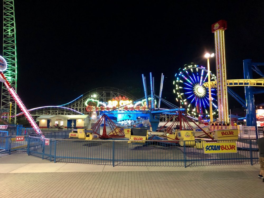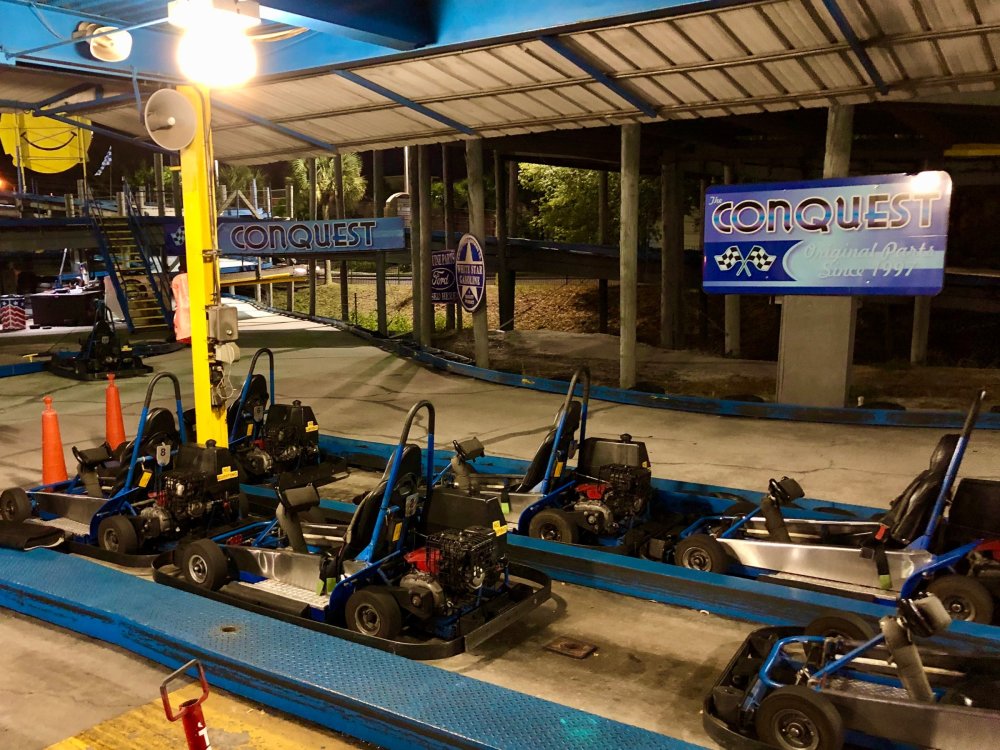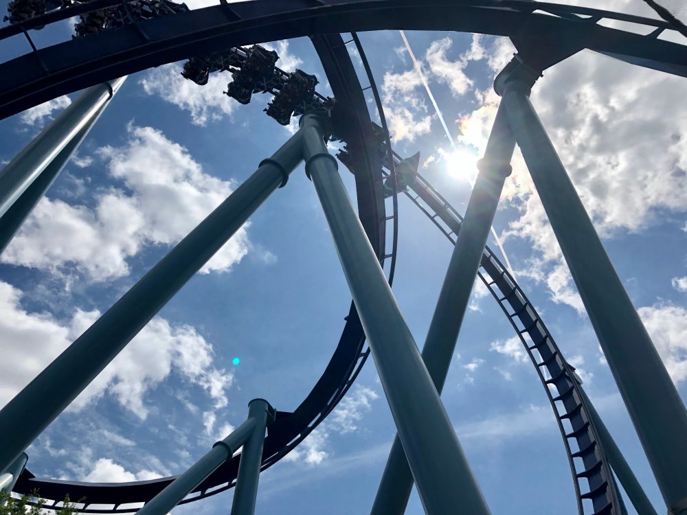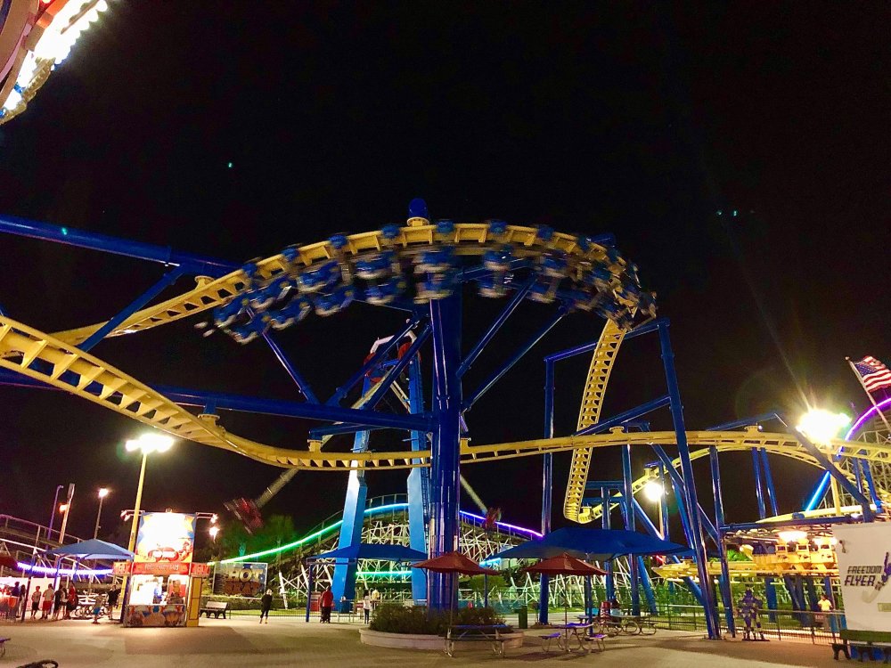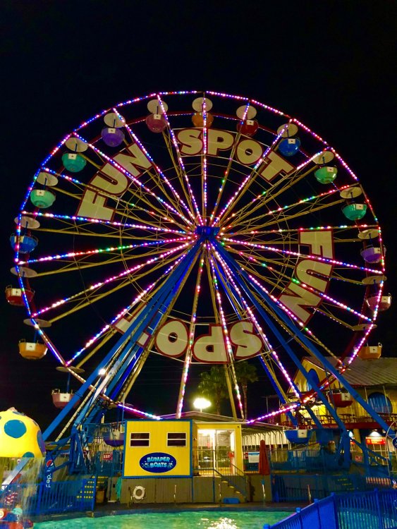 After two days at Seaworld we decided to spend our Sunday evening hanging out at the hotel and hit the pool. Sunset over Orlando. I can tell you we had a bite and some drinks at the hotel's poolside bar/restaurant. I couldn't tell you what we ate or what was in these drinks if you paid me. Orange crush maybe? We had a long day planned for Monday, so we retired to bed early so we could get some rest ahead of our much-anticipated first visit to... Discovery Cove! There's lots of great things I can tell you about Discovery Cove but the most important thing you need to know is that your entrance fee includes all-you-can-eat food and drinks all day. This was a very early breakfast. Not pictured: a huge lunch and endless snacks all day. And yes booze is included. You do have to pay for a "premium" drink package to all get all kinds of goodies but if you're content with basic-ass beer all day, drink as much as you want. (In 2021 we visited again and they were now including hard seltzers with the basic-ass-free-beers). And the food is decent. And there is lots of it. Just eat it all. The thing with DC is you're in a wetsuit all day and so you do things like stick your phone in a locker and don't look at it all day long and also don't take any pictures because you're busy living your best life at Discovery Cove. Doing things like swimming with dolphins. And the lazy river. Did I mention the lazy river? It's fu*king phenomenal. We spent hours in it. Nevertheless, we did manage a few photos of us swimming with the dolphins. This is a super cool, amazing experience but for us was a one-and-done. While we were super stoked to come back to DC in 2021, we were content to not swim with the dolphins again. P.S. the water in the dolphin lagoon is cold. Like f*cking holy sh*tballs freezing cold. You have been warned. This is the only other photo of anything at DC, taken as we were leaving. We absolutely love this park so much and will go here every single time we are in Orlando for the rest of our lives. Thinking about visiting? Just do it. Worth every penny. We stopped back at the hotel for showers and headed out on the town. No Orlando trip would be complete without a visit to Fun Spot Orlando. We love this park, probably more than we should. Sure, there's never anyone here when we visit and they're generally incredibly understaffed. But they have Fun Spot punch. Lots of bright and humorously named flats. And Freedom Flyer! We love Freedom Flyer. And probably the jankiest Screamin' Swing I've ever been on. And White Lightning! This ride is criminally underrated, imo. I've always ranked this humble, mid-tier GCI way higher than I should. In 2021 I finally got to ride in the back of a fully loaded train and holy crap. We waited zero minutes for a spin on the parks nice Ferris Wheel. And the hit up each of the parks phenomenal go-karts; our fave is Conquest. We ended the night with a dozen+ zen-rides on White Lightning and Freedom Flyer and closed out an empty park. And that was a wrap for Monday. Low on photos but high on fun, dolphin swims and endless beers. We still had one more (half)day before this trip was to end, more to come...1 point