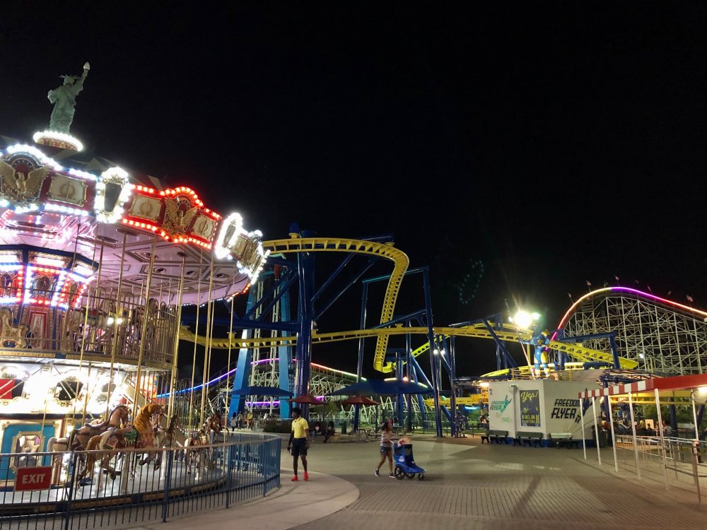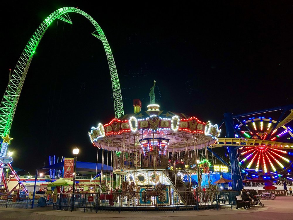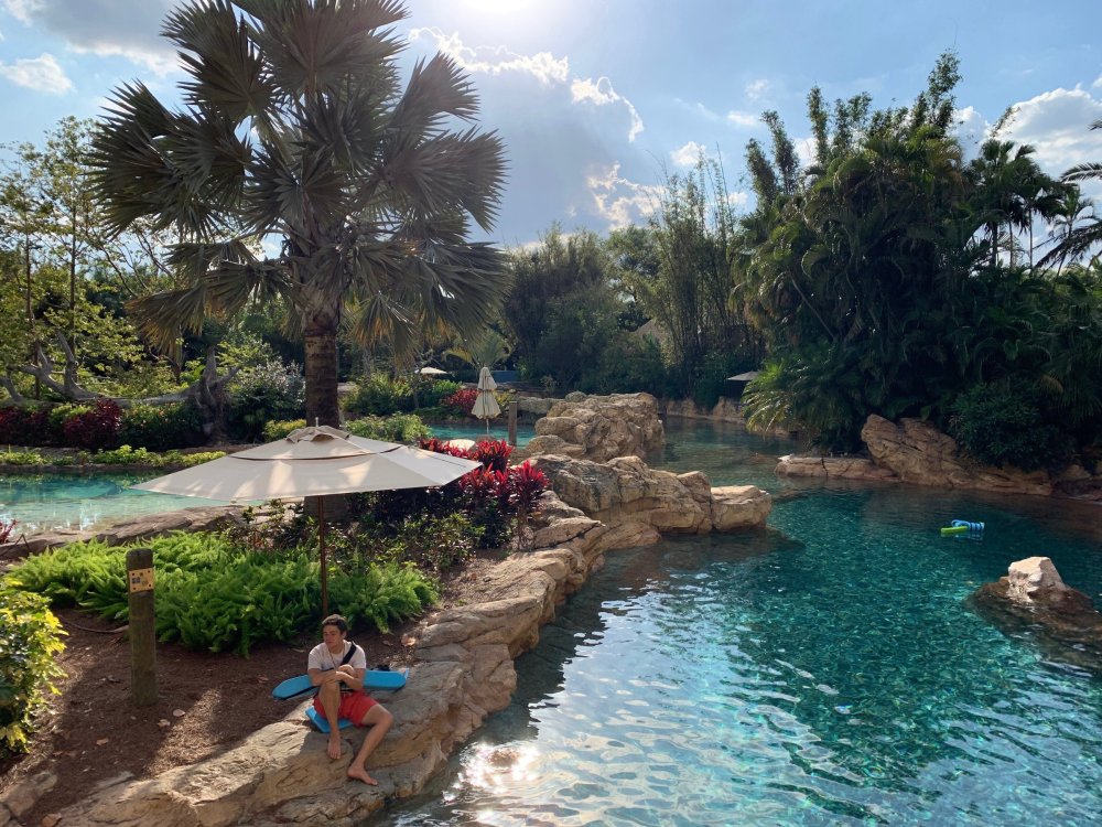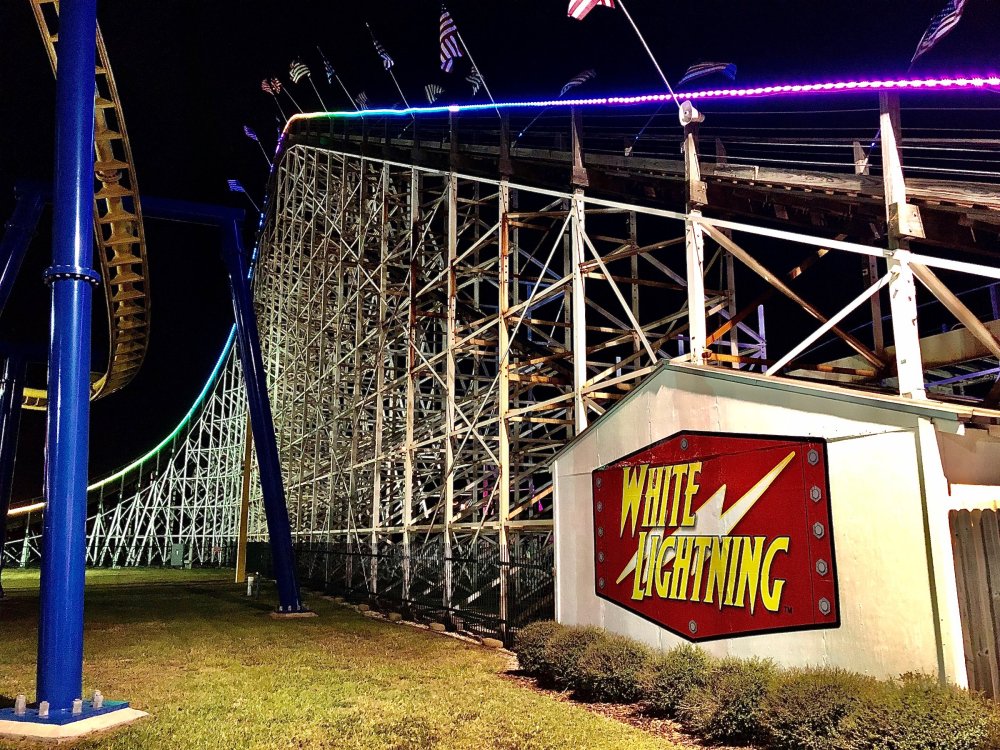 After two days at Seaworld we decided to spend our Sunday evening hanging out at the hotel and hit the pool. Sunset over Orlando. I can tell you we had a bite and some drinks at the hotel's poolside bar/restaurant. I couldn't tell you what we ate or what was in these drinks if you paid me. Orange crush maybe? We had a long day planned for Monday, so we retired to bed early so we could get some rest ahead of our much-anticipated first visit to... Discovery Cove! There's lots of great things I can tell you about Discovery Cove but the most important thing you need to know is that your entrance fee includes all-you-can-eat food and drinks all day. This was a very early breakfast. Not pictured: a huge lunch and endless snacks all day. And yes booze is included. You do have to pay for a "premium" drink package to all get all kinds of goodies but if you're content with basic-ass beer all day, drink as much as you want. (In 2021 we visited again and they were now including hard seltzers with the basic-ass-free-beers). And the food is decent. And there is lots of it. Just eat it all. The thing with DC is you're in a wetsuit all day and so you do things like stick your phone in a locker and don't look at it all day long and also don't take any pictures because you're busy living your best life at Discovery Cove. Doing things like swimming with dolphins. And the lazy river. Did I mention the lazy river? It's fu*king phenomenal. We spent hours in it. Nevertheless, we did manage a few photos of us swimming with the dolphins. This is a super cool, amazing experience but for us was a one-and-done. While we were super stoked to come back to DC in 2021, we were content to not swim with the dolphins again. P.S. the water in the dolphin lagoon is cold. Like f*cking holy sh*tballs freezing cold. You have been warned. This is the only other photo of anything at DC, taken as we were leaving. We absolutely love this park so much and will go here every single time we are in Orlando for the rest of our lives. Thinking about visiting? Just do it. Worth every penny. We stopped back at the hotel for showers and headed out on the town. No Orlando trip would be complete without a visit to Fun Spot Orlando. We love this park, probably more than we should. Sure, there's never anyone here when we visit and they're generally incredibly understaffed. But they have Fun Spot punch. Lots of bright and humorously named flats. And Freedom Flyer! We love Freedom Flyer. And probably the jankiest Screamin' Swing I've ever been on. And White Lightning! This ride is criminally underrated, imo. I've always ranked this humble, mid-tier GCI way higher than I should. In 2021 I finally got to ride in the back of a fully loaded train and holy crap. We waited zero minutes for a spin on the parks nice Ferris Wheel. And the hit up each of the parks phenomenal go-karts; our fave is Conquest. We ended the night with a dozen+ zen-rides on White Lightning and Freedom Flyer and closed out an empty park. And that was a wrap for Monday. Low on photos but high on fun, dolphin swims and endless beers. We still had one more (half)day before this trip was to end, more to come...1 point