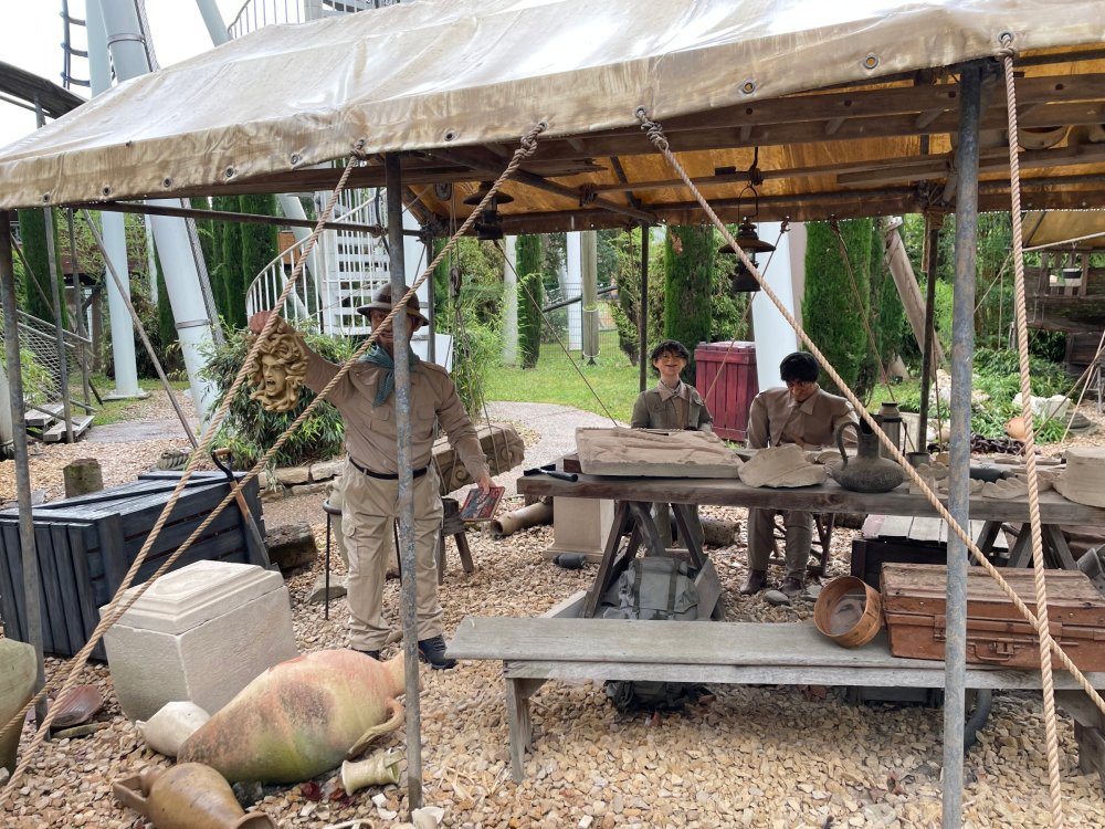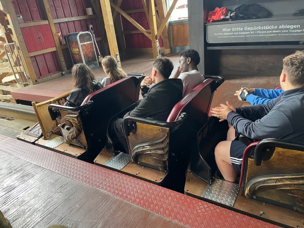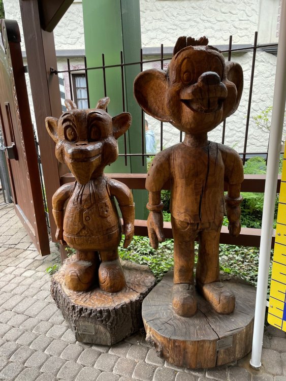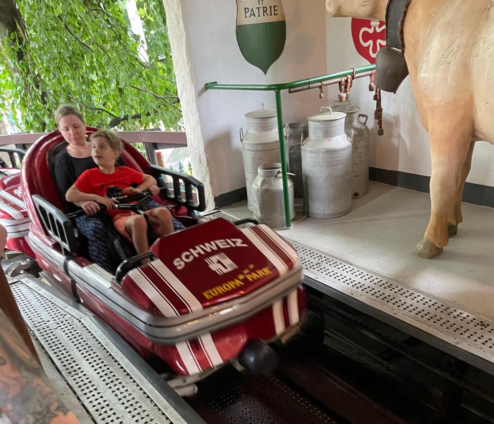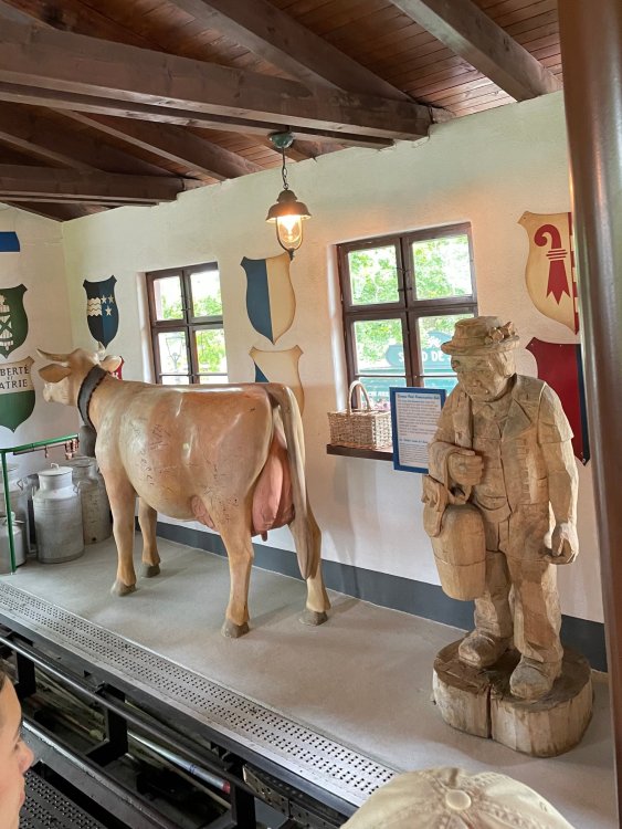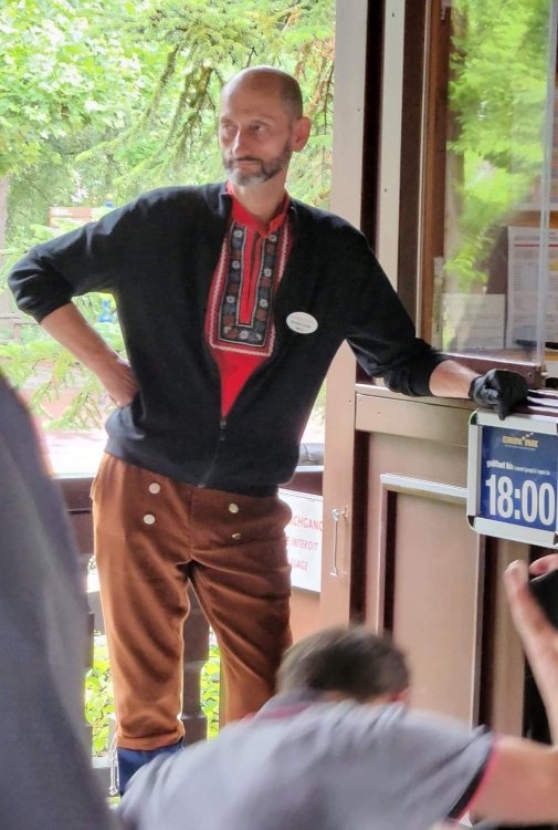 Europa Park, Day 1 continued . . . after snacks at pirates. . we headed over to the Greece section. I had no interest in the Atlantica Supersplash over in the Portugal section, as that is the exact same design as the Journey To Atlantis ride at SeaWorld San Antonio, so i've ridden that tons of time (and honestly don't think it's worth the line, just for that short backwards "coaster" section). I don't think anyone in the group I was hanging around with wanted to ride it anyways. but we all were interested in what was over here in Greece: Poseidon: the Water Coaster: (and oh, look, I actually did get a picture of Sliver Star - in the back on the right. Funny. . thought I had missed it). saving the best for last tho, we went to hit the other attractions in this section before heading to Poseidon (and they have construction walls over here, for the new coaster being built that was part of the presentation, but I dont' think I actually did get pics of those). 1st stop was "Curse of Cassandra" - a really cool Madhouse. before this trip, I never had ridden any type of Madhouse, and this being the first one, I was really super impressed with it. But like SeaStorms, and slow boat rides around lagoons, it seemed that *every* park had it's own Madhouse.. so I ended up riding 7 or 8 of them during the trip. Curse of Cassandra was a pretty good one, and if I'm recalling correctly, the "benches" had moving parts in them to indicate creatures/bugs moving beneath you as the whole room spun. I enjoyed it. but only got a picture of a statue outside it. we then walked around the Poseidon lagoon area to head to Pegasus - a powered junior coaster. but managed to perfectly capture the big monorail passing by (reminding me that I hadn't ridden it yet, and sadly never got to it on this trip. . . even tho it passed right in front of our hotel room!). as noted, Pegasus is a junior powered coaster. it reminded me a lot of the Flight of the Hippogriff, tho maybe slightly more exciting in the layout. the entrance certainly is more interesting. not just a horse's ass. . you enter under a Trojan Horse's ass. . . and the train certainly is pretty exciting. . .at least the front car. for some reason, the queue is themed around an Archeological Dig. . .complete with animatronics. . . and holding up of Medusa's head (ok ???). . . LOL but yeah, the trains sure are pretty! tho I had to laugh, in that the kids who were lined up to ride in the Pegasus front car? yeah. .they can't see ANYTHING. . . LOL great view of the "coaster section" of Poseidon next door from Pegasus' loading area tho again. . as with every other section of this park, the theming is pretty immersive. this was the way to get to the Poseidon queue. . .I don't have any decent pics, so won't share, but we did get more than a little "moist" on the splashdown section. and tho I bought the picture and we're mostly smiling (this is the presplashdown), I must admit that the coaster part of the ride, was quite a bit jerky. it wrenched my back a good bit, and I did have to get into my travel medical kit to take some Aleve after. . . . but overall it was fun, if a bit painful. (so no, didn't ride it again on this visit) good pic tho. clockwork from front left: Andrew (happy Bday! today), Ian, John, Ryan, Jon, and me. (and two other folks park visitors in the back seat) we had another pass for Arthur, so we headed back thru fairytale land. . but first we had to move out of the way for some street entertainment rolling thru (I believe this was passing thru the England section)? she comes out and fluffs a pillow. .that fills the air with foam. the kiddos were having a BALL underneath playing in the foam coming down. back to the weirdness that is Arthur. WTF are these? I dunno. . but I like them. I really, really like them. a little blurry, but coming into the loading platform from the dark section. and the folks pushing the buttons and discussing why they didn't turn around as the other cars did (I'm assuming that's what they were discussing, and the answer is that you have to all hit the buttons to break the alien's mirrors if you want the car to flip around backwards. . I think? who knows! but it's brilliant). exiting the ride, there were lifesize fairies !! OMG. . am I gonna pose with them? what do you think?? (as Elissa put it when i shared this pic: "Nightmare fuel" a Rastafarian bee. why? Arthur !!! we were starting to get a little hungry, so we headed over to Switezerland (just LOOK how lovely) .. . but first, stopping in France to get a fresh Baguette. why? RACLETTE of course! yep, it was time to finally try the famous Europa Park Raclette. mmmmmmmmmm OMG. . looks amazing. oooy, and gooey, and so, so good. . slurp!!! the view we had while eating. the Swiss Bob Run - a bobsled coaster, that actually has a pretty steep "roller coaster" style drop, hadn't been running all day. . but while we were eating, we heard the unmistakable noises of a chain lift. So after we finished our Raclette, we headed down the street to check out if it was open. But first. . . . yes! not only was it open, but it had *just* opened. . whatever they had been working on (we saw guys on the chain lift earlier) they had gotten it going. So the line wasn't bad at all..maybe 10 minutes. lots of interesting wood carvings in this queue: yeah. . I took this picture for the uniform. (I'll be honest. . .we all have our types, and this is one of mine. . so yes, this counts as eye candy too.. . tho the uniform IS rather cute) Ian and I actually spent a lot of the trip sending each other pictures of "interesting" things we saw in the parks. . . but I won't share most of those. . LOL Naughty Naughty, but still. . just some clean fun for the most part. I actually thought this was a real guy in the operating booth. . but when we got closer? nope, Europa Park found a way to squeeze an animatronic in, even in THIS open queue. . James got to ride without someone sitting in his lap! so did Ian and John. . .