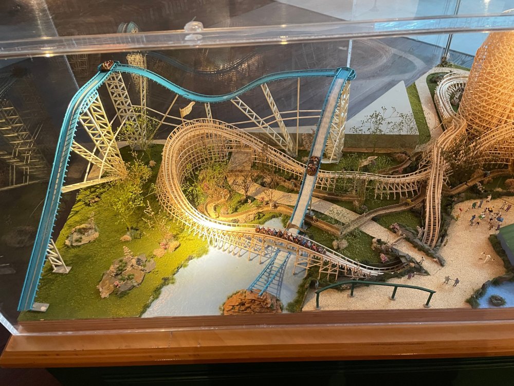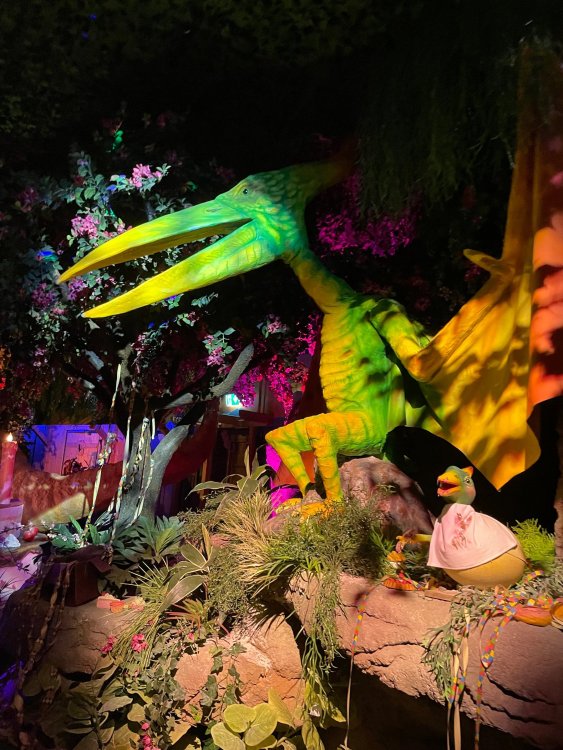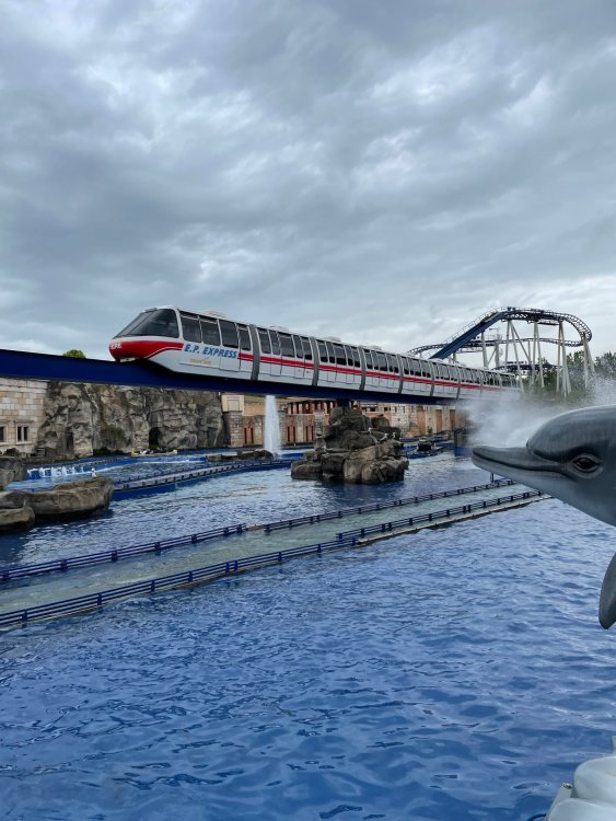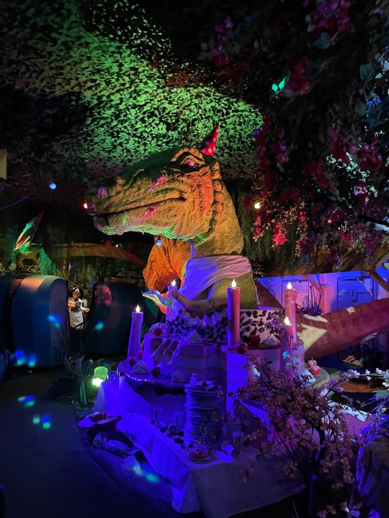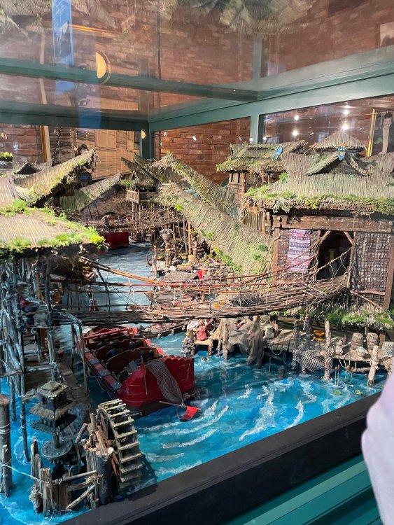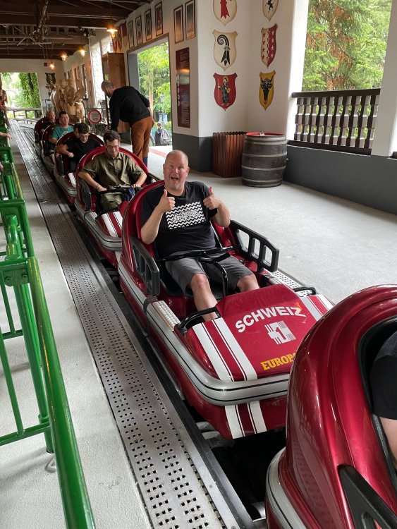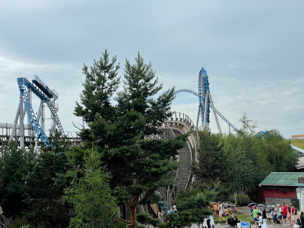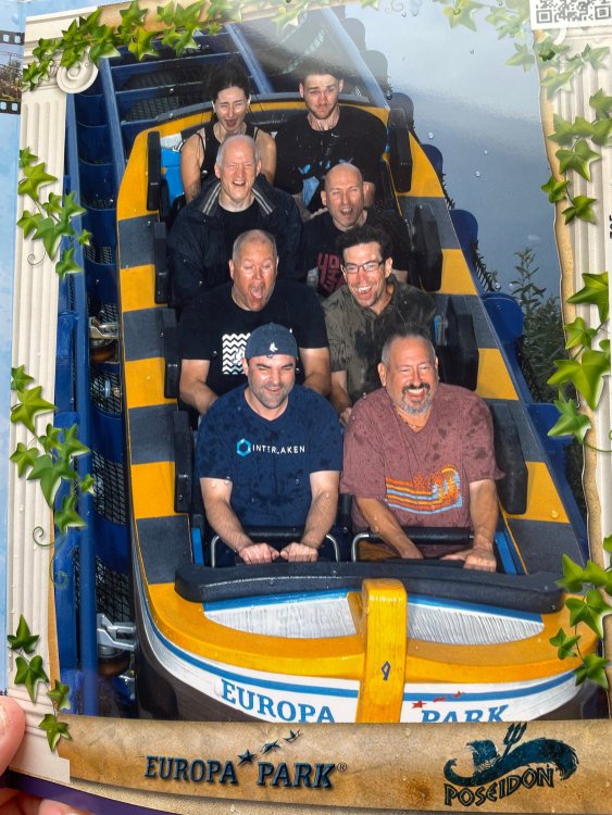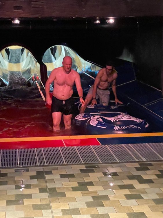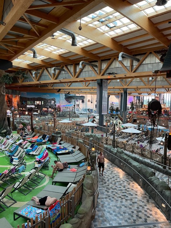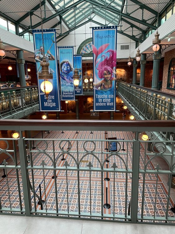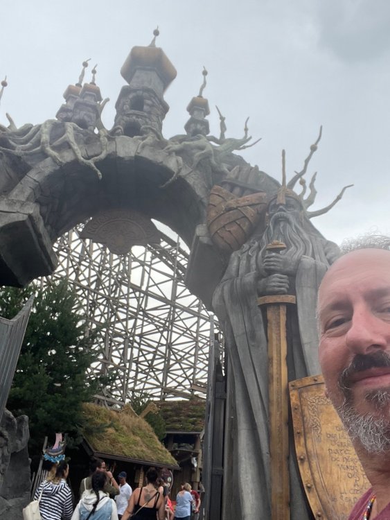 Europa Park, Day 1, part III (Rulantica!) so after getting back to the room, and changing to swimwear. . we headed out to the shuttle bus stop, and took the short ride over to Hotel KRØNASÅR - which is themed to a Museum of Natural History (and also contains the connected "Rulantica" - a HUGE indoor/outdoor waterpark that Europa Park is continuing to add on to. it's also very heavily themed. I wasn't sure I was going to actually swim, as I'm not a waterpark fan. . and once I saw the actual inside of the park? yeah, I kept my phone/camera with me, and decided to just take pics rather than get wet. enjoy: the lobby here is quite impressive! and this sea-creature skeleton? really cool. up the stairs and across the bridgeway gets you into the main Rulantica lobby. But before we head down to the entry booths, let's check out the really neat models they have on display here. . . (honestly worth the trip over here just to look at these, even if not a waterpark fan) I believe this is a model for the reimagined Pirates a peek inside EuroSat (pre CanCan coaster overlay) a super cool model of Wodan. . . with Blue Fire cutting thru it on the end there! Atlantica Supersplash. . and how it interacts with Wodan at the turnaround. after drooling over the models, we went thru entrance, and down into the locker rooms - you walk thru the locker rooms (which are huge. . and turns out there are two completely separate ones, so really pay attention where you put your clothes, or good luck finding your locker after a few cocktails (as I found out later.. . LOL). then you pass thru the shower rooms, and bathroom areas. . and you come out into the main atrium of Rulantica. STUNNING: a photo op? where I can put my face in Snorri? don't mind if I do! the main Wave Pool which is the center of the indoor section of the waterpark. big ol Dragon-slide on the left. . along with one of those "we're gonna fly off it!" triangle shaped tornado type slides. outside is a whole other section with a play area - and they are building more slides over there too. and on the right are the big bars/food areas. . as well as the lazy river, a "rapids" river, and more super steep hidden slides. and just beyond the wave pool (between the wave pool and the outside sections). . . water obstacle course. That many on the TPR trip braved (Robb put up footage on their insta) . .but only the super light (ie: skinny) folks made it across the floating islands easily. as I was nursing a bad ankle on this trip (injured it ~1 month prior to going and still had a brace on the entire trip). . I didnt' even attempt. but was fun to watch others wipe out. stepping out back - as it was SUPER humid in there, as one would expect an indoor water park to be. . what's this? oooo. . they are smart! big outdoor bar by the kids play area outside. the options all look pretty good. . and they were. Tho all came from a machine, that seemed to mix all from the same spout (so I do wonder if some of them might taste off if it "bleeds" some of the other mixed drinks coming thru). still. . what I got (and I can't recall. . tho I had 3 of them, and yep, was feeling it by the time I left. .LOL), but it was GOOOD. drinks in hand, started to explore the outdoor area.. . here's the map . . everything in the "triangle" is indoors. and they are adding new stuff both to the left and the right of the outdoors area at the bottom of the map. as you can tell, they have a lot of room for expansion and new attractions here. yeah.. you are gonna get WET at Rulantica. . .everything sprays and shoots water! something new that was just about to open. . .as super splash battle crossed with a Tilt a Whirl looked like to me. huge, and looks like it's a TON of fun. pretty close to being open, but wasn't open yet on our visit. new concept from Mack rides: sand volleyball, and more room for expansion. (it was already close to 9pm I think, and just look how light it still is.) back inside, to meet up with some TPR folks, and James and Ryan wanted to ride the Dragon Slide theming everywhere. . and so well done. .this was over the lazy river. and just to the right here, was a lagoon you could leave the lazy river to hang out in. . as it had a swim up bar with in-pool seating. if you went up a few levels, was a large restaurant/bar that overlooked the entire indoors area. and also had these really rather cool "clear sections" of the steepest "drop" flumes. . so you could watch the riders zoom by while you relaxed with your drink or food. yeah. .it was a hell of a climb on the stairs to get up to these flumes. . but those that rode them said it was well worth the treck up there. the bottom of the steepest "tube" slides skloosh! James and Jon enjoying the slides. . . and a blurry pic. . but probably THE most thankless job in Rulantica. She stood at the end of the slide catch pool. . and squeegied back in all the water that sklooshed out all over the area after every batch of tubes cam crashing down. she looked miserable. . but repeated this every 15 seconds or so. . . a peek at the indoors kiddie section that's to the right of the lazy river entrance. which is this middle ramp down. yeah. .it can get a bit confusing. . especially after a few drinks! LOL this seemed to be the entrance to a great hall / party room that can be rented. . . loved the design here. the giant screens behind the eating area (connected to the "fast food" option. . pizza/italian stuff. rather soothing. and occasionally an octopus (or Snorri) or some Mermaids would swim by and stop to interact with those sitting at the tables and eating. at the top of the wave pool.. looking out. I was getting tired - it had been a full day, and was ready to head back to our hotel, so started making my way back to the dressing rooms. . tho I hadn't realized there was more than one. and it took me an EMBARRASSINGLY long time to figure out how to get back to the level of dressing rooms that we had come in at, and where my locker was so I could