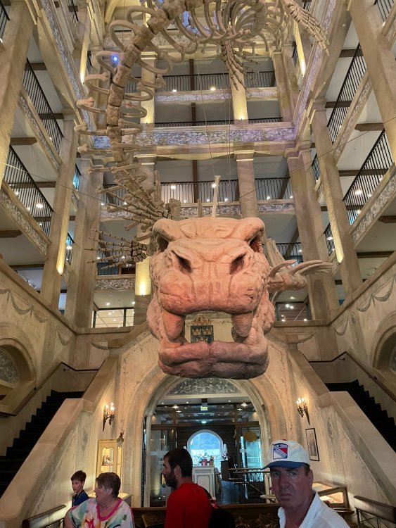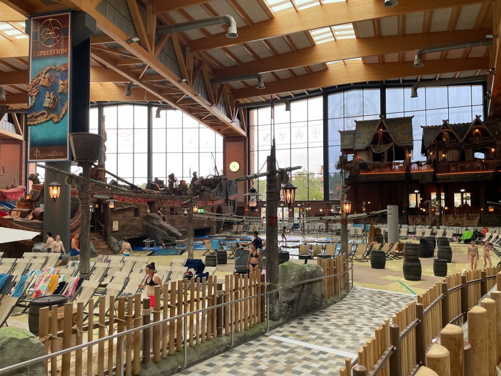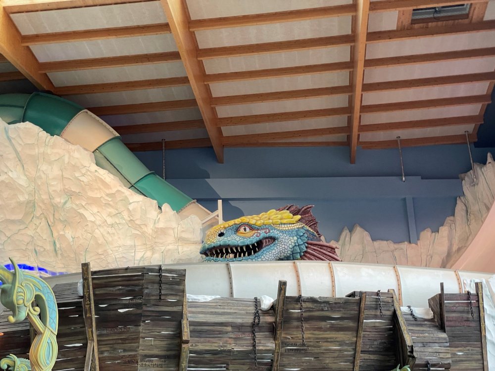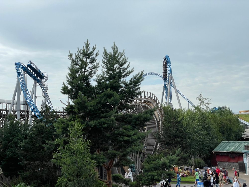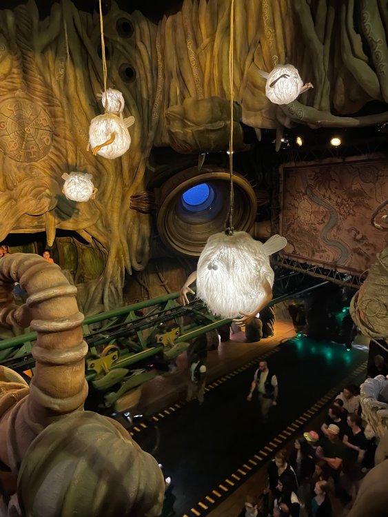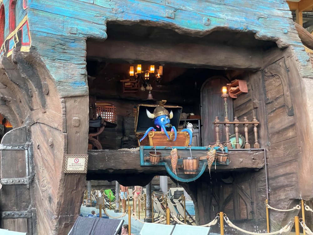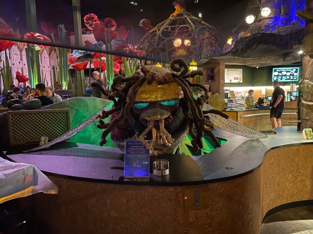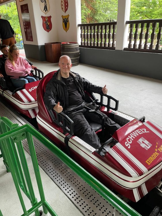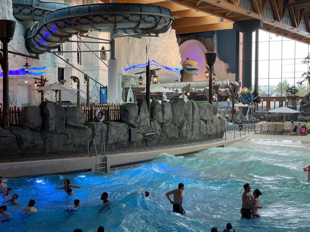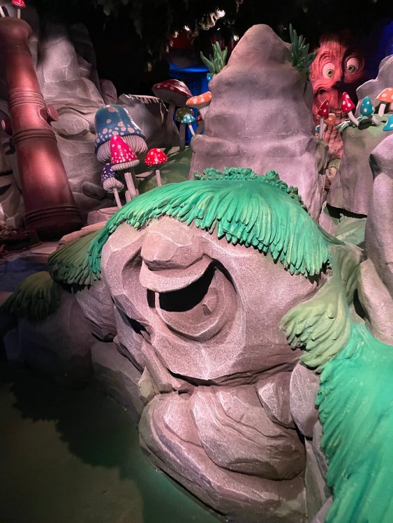 Europa Park, Day 1, part III (Rulantica!) so after getting back to the room, and changing to swimwear. . we headed out to the shuttle bus stop, and took the short ride over to Hotel KRØNASÅR - which is themed to a Museum of Natural History (and also contains the connected "Rulantica" - a HUGE indoor/outdoor waterpark that Europa Park is continuing to add on to. it's also very heavily themed. I wasn't sure I was going to actually swim, as I'm not a waterpark fan. . and once I saw the actual inside of the park? yeah, I kept my phone/camera with me, and decided to just take pics rather than get wet. enjoy: the lobby here is quite impressive! and this sea-creature skeleton? really cool. up the stairs and across the bridgeway gets you into the main Rulantica lobby. But before we head down to the entry booths, let's check out the really neat models they have on display here. . . (honestly worth the trip over here just to look at these, even if not a waterpark fan) I believe this is a model for the reimagined Pirates a peek inside EuroSat (pre CanCan coaster overlay) a super cool model of Wodan. . . with Blue Fire cutting thru it on the end there! Atlantica Supersplash. . and how it interacts with Wodan at the turnaround. after drooling over the models, we went thru entrance, and down into the locker rooms - you walk thru the locker rooms (which are huge. . and turns out there are two completely separate ones, so really pay attention where you put your clothes, or good luck finding your locker after a few cocktails (as I found out later.. . LOL). then you pass thru the shower rooms, and bathroom areas. . and you come out into the main atrium of Rulantica. STUNNING: a photo op? where I can put my face in Snorri? don't mind if I do! the main Wave Pool which is the center of the indoor section of the waterpark. big ol Dragon-slide on the left. . along with one of those "we're gonna fly off it!" triangle shaped tornado type slides. outside is a whole other section with a play area - and they are building more slides over there too. and on the right are the big bars/food areas. . as well as the lazy river, a "rapids" river, and more super steep hidden slides. and just beyond the wave pool (between the wave pool and the outside sections). . . water obstacle course. That many on the TPR trip braved (Robb put up footage on their insta) . .but only the super light (ie: skinny) folks made it across the floating islands easily. as I was nursing a bad ankle on this trip (injured it ~1 month prior to going and still had a brace on the entire trip). . I didnt' even attempt. but was fun to watch others wipe out. stepping out back - as it was SUPER humid in there, as one would expect an indoor water park to be. . what's this? oooo. . they are smart! big outdoor bar by the kids play area outside. the options all look pretty good. . and they were. Tho all came from a machine, that seemed to mix all from the same spout (so I do wonder if some of them might taste off if it "bleeds" some of the other mixed drinks coming thru). still. . what I got (and I can't recall. . tho I had 3 of them, and yep, was feeling it by the time I left. .LOL), but it was GOOOD. drinks in hand, started to explore the outdoor area.. . here's the map . . everything in the "triangle" is indoors. and they are adding new stuff both to the left and the right of the outdoors area at the bottom of the map. as you can tell, they have a lot of room for expansion and new attractions here. yeah.. you are gonna get WET at Rulantica. . .everything sprays and shoots water! something new that was just about to open. . .as super splash battle crossed with a Tilt a Whirl looked like to me. huge, and looks like it's a TON of fun. pretty close to being open, but wasn't open yet on our visit. new concept from Mack rides: sand volleyball, and more room for expansion. (it was already close to 9pm I think, and just look how light it still is.) back inside, to meet up with some TPR folks, and James and Ryan wanted to ride the Dragon Slide theming everywhere. . and so well done. .this was over the lazy river. and just to the right here, was a lagoon you could leave the lazy river to hang out in. . as it had a swim up bar with in-pool seating. if you went up a few levels, was a large restaurant/bar that overlooked the entire indoors area. and also had these really rather cool "clear sections" of the steepest "drop" flumes. . so you could watch the riders zoom by while you relaxed with your drink or food. yeah. .it was a hell of a climb on the stairs to get up to these flumes. . but those that rode them said it was well worth the treck up there. the bottom of the steepest "tube" slides skloosh! James and Jon enjoying the slides. . . and a blurry pic. . but probably THE most thankless job in Rulantica. She stood at the end of the slide catch pool. . and squeegied back in all the water that sklooshed out all over the area after every batch of tubes cam crashing down. she looked miserable. . but repeated this every 15 seconds or so. . . a peek at the indoors kiddie section that's to the right of the lazy river entrance. which is this middle ramp down. yeah. .it can get a bit confusing. . especially after a few drinks! LOL this seemed to be the entrance to a great hall / party room that can be rented. . . loved the design here. the giant screens behind the eating area (connected to the "fast food" option. . pizza/italian stuff. rather soothing. and occasionally an octopus (or Snorri) or some Mermaids would swim by and stop to interact with those sitting at the tables and eating. at the top of the wave pool.. looking out. I was getting tired - it had been a full day, and was ready to head back to our hotel, so started making my way back to the dressing rooms. . tho I hadn't realized there was more than one. and it took me an EMBARRASSINGLY long time to figure out how to get back to the level of dressing rooms that we had come in at, and where my locker was so I could