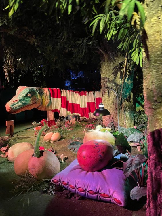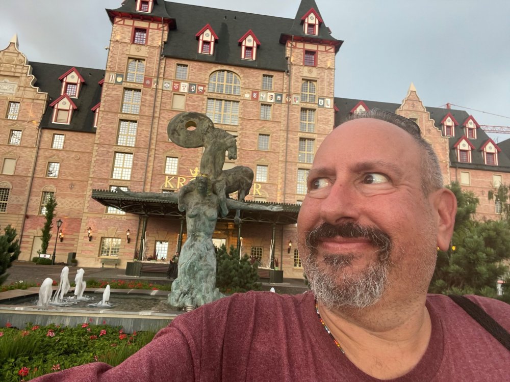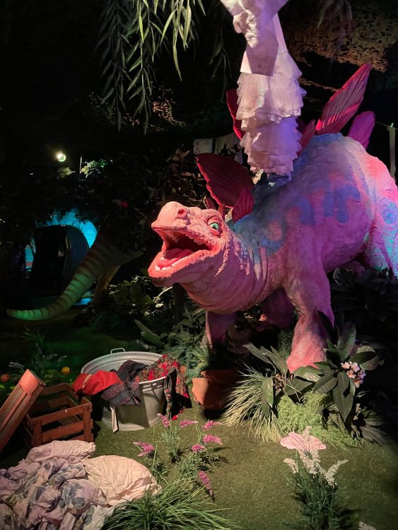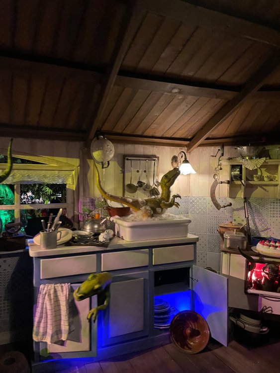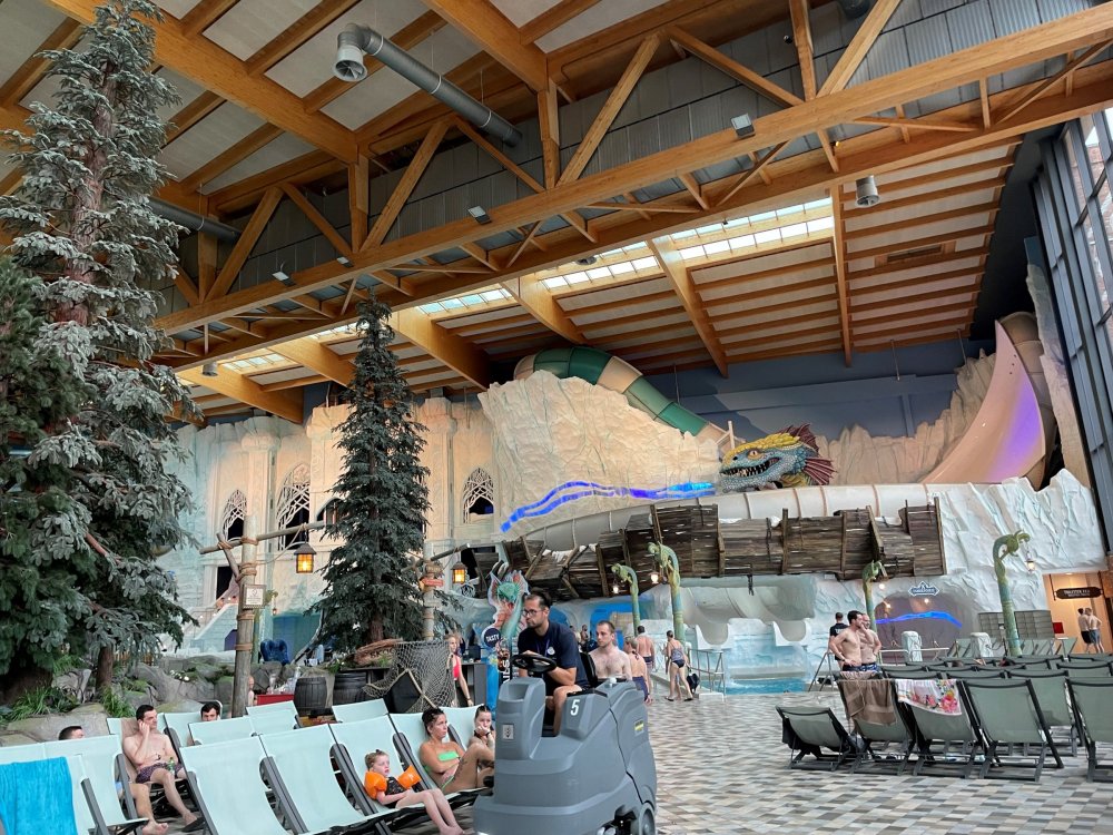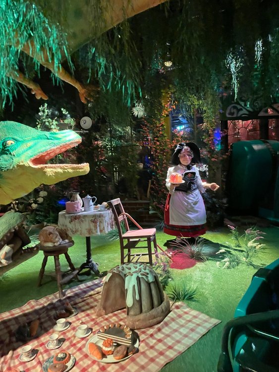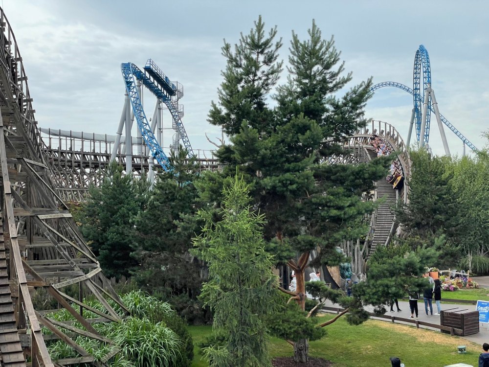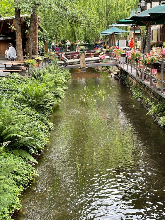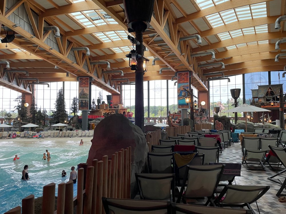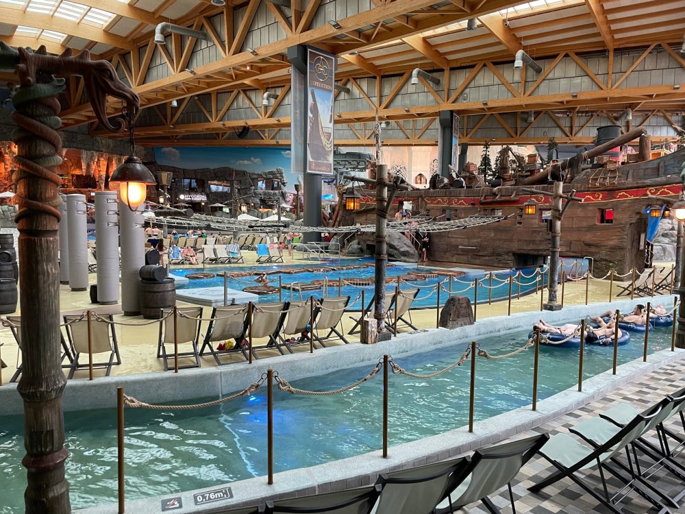 Europa Park, Day 1, part III (Rulantica!) so after getting back to the room, and changing to swimwear. . we headed out to the shuttle bus stop, and took the short ride over to Hotel KRØNASÅR - which is themed to a Museum of Natural History (and also contains the connected "Rulantica" - a HUGE indoor/outdoor waterpark that Europa Park is continuing to add on to. it's also very heavily themed. I wasn't sure I was going to actually swim, as I'm not a waterpark fan. . and once I saw the actual inside of the park? yeah, I kept my phone/camera with me, and decided to just take pics rather than get wet. enjoy: the lobby here is quite impressive! and this sea-creature skeleton? really cool. up the stairs and across the bridgeway gets you into the main Rulantica lobby. But before we head down to the entry booths, let's check out the really neat models they have on display here. . . (honestly worth the trip over here just to look at these, even if not a waterpark fan) I believe this is a model for the reimagined Pirates a peek inside EuroSat (pre CanCan coaster overlay) a super cool model of Wodan. . . with Blue Fire cutting thru it on the end there! Atlantica Supersplash. . and how it interacts with Wodan at the turnaround. after drooling over the models, we went thru entrance, and down into the locker rooms - you walk thru the locker rooms (which are huge. . and turns out there are two completely separate ones, so really pay attention where you put your clothes, or good luck finding your locker after a few cocktails (as I found out later.. . LOL). then you pass thru the shower rooms, and bathroom areas. . and you come out into the main atrium of Rulantica. STUNNING: a photo op? where I can put my face in Snorri? don't mind if I do! the main Wave Pool which is the center of the indoor section of the waterpark. big ol Dragon-slide on the left. . along with one of those "we're gonna fly off it!" triangle shaped tornado type slides. outside is a whole other section with a play area - and they are building more slides over there too. and on the right are the big bars/food areas. . as well as the lazy river, a "rapids" river, and more super steep hidden slides. and just beyond the wave pool (between the wave pool and the outside sections). . . water obstacle course. That many on the TPR trip braved (Robb put up footage on their insta) . .but only the super light (ie: skinny) folks made it across the floating islands easily. as I was nursing a bad ankle on this trip (injured it ~1 month prior to going and still had a brace on the entire trip). . I didnt' even attempt. but was fun to watch others wipe out. stepping out back - as it was SUPER humid in there, as one would expect an indoor water park to be. . what's this? oooo. . they are smart! big outdoor bar by the kids play area outside. the options all look pretty good. . and they were. Tho all came from a machine, that seemed to mix all from the same spout (so I do wonder if some of them might taste off if it "bleeds" some of the other mixed drinks coming thru). still. . what I got (and I can't recall. . tho I had 3 of them, and yep, was feeling it by the time I left. .LOL), but it was GOOOD. drinks in hand, started to explore the outdoor area.. . here's the map . . everything in the "triangle" is indoors. and they are adding new stuff both to the left and the right of the outdoors area at the bottom of the map. as you can tell, they have a lot of room for expansion and new attractions here. yeah.. you are gonna get WET at Rulantica. . .everything sprays and shoots water! something new that was just about to open. . .as super splash battle crossed with a Tilt a Whirl looked like to me. huge, and looks like it's a TON of fun. pretty close to being open, but wasn't open yet on our visit. new concept from Mack rides: sand volleyball, and more room for expansion. (it was already close to 9pm I think, and just look how light it still is.) back inside, to meet up with some TPR folks, and James and Ryan wanted to ride the Dragon Slide theming everywhere. . and so well done. .this was over the lazy river. and just to the right here, was a lagoon you could leave the lazy river to hang out in. . as it had a swim up bar with in-pool seating. if you went up a few levels, was a large restaurant/bar that overlooked the entire indoors area. and also had these really rather cool "clear sections" of the steepest "drop" flumes. . so you could watch the riders zoom by while you relaxed with your drink or food. yeah. .it was a hell of a climb on the stairs to get up to these flumes. . but those that rode them said it was well worth the treck up there. the bottom of the steepest "tube" slides skloosh! James and Jon enjoying the slides. . . and a blurry pic. . but probably THE most thankless job in Rulantica. She stood at the end of the slide catch pool. . and squeegied back in all the water that sklooshed out all over the area after every batch of tubes cam crashing down. she looked miserable. . but repeated this every 15 seconds or so. . . a peek at the indoors kiddie section that's to the right of the lazy river entrance. which is this middle ramp down. yeah. .it can get a bit confusing. . especially after a few drinks! LOL this seemed to be the entrance to a great hall / party room that can be rented. . . loved the design here. the giant screens behind the eating area (connected to the "fast food" option. . pizza/italian stuff. rather soothing. and occasionally an octopus (or Snorri) or some Mermaids would swim by and stop to interact with those sitting at the tables and eating. at the top of the wave pool.. looking out. I was getting tired - it had been a full day, and was ready to head back to our hotel, so started making my way back to the dressing rooms. . tho I hadn't realized there was more than one. and it took me an EMBARRASSINGLY long time to figure out how to get back to the level of dressing rooms that we had come in at, and where my locker was so I could