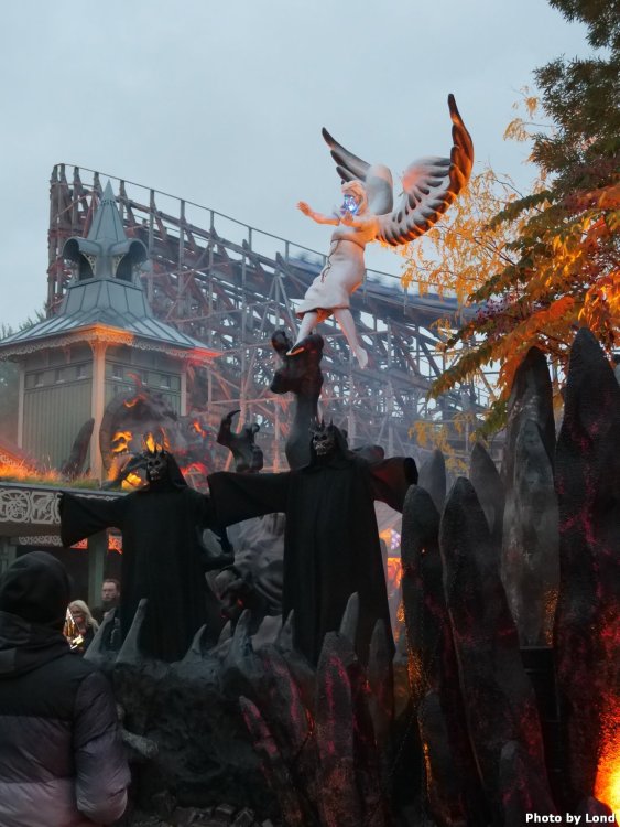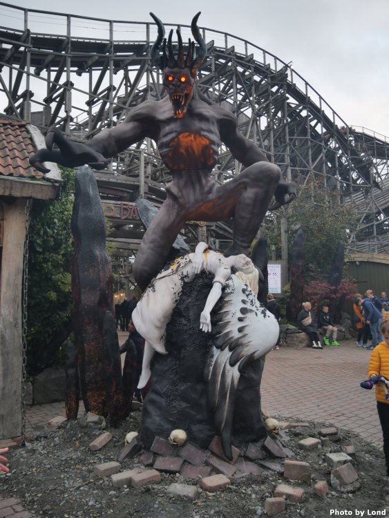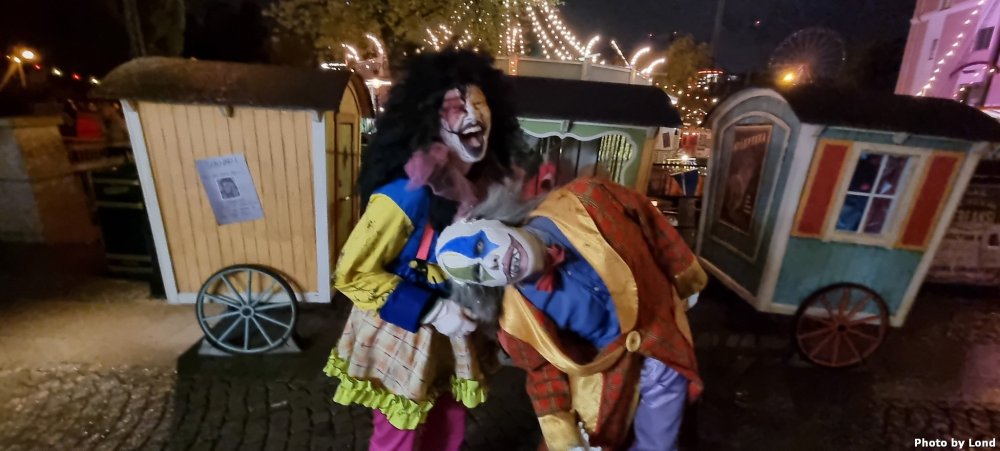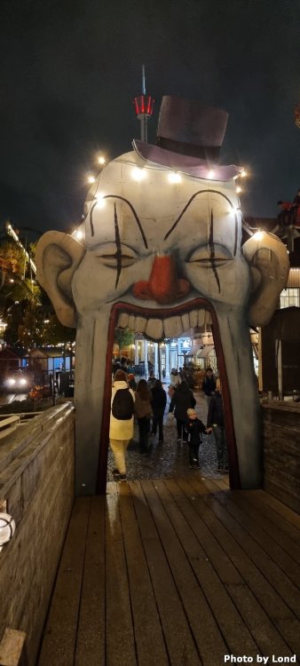 Attended the press meeting on the opening day of Halloween On Liseberg last Friday. The opening begun with the vice president of Liseberg had to round up the scary clowns that escaped from Liseberg and loaded them on one of the "Paddan" sightseeing boats to bring them back to Liseberg... New for this year is a collaboration between Liseberg and Gothenburg Film Festival to show horror movies in Polketten. Also Balder premiered after 15 month of track TLC and it's back better then ever. 15 points of 10 possible And the Halloween decoration in the park was perfect as usual after the staffs hard work to transform the park from summer to Halloween in under 2 weeks.. /// Marcus On to the photos..... Vice president of Liseberg in her normal businesses outfit..... One of the new haunted houses for this year. Very good interaction from the staff Almost full moon.... Even the playhouse looks scary with long exposure time..... Not a nice rabbit... Luna footers... The hotel look really good in the dark.1 point