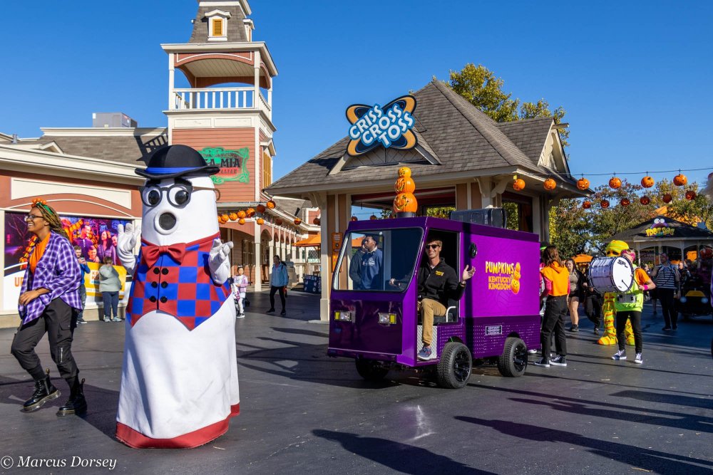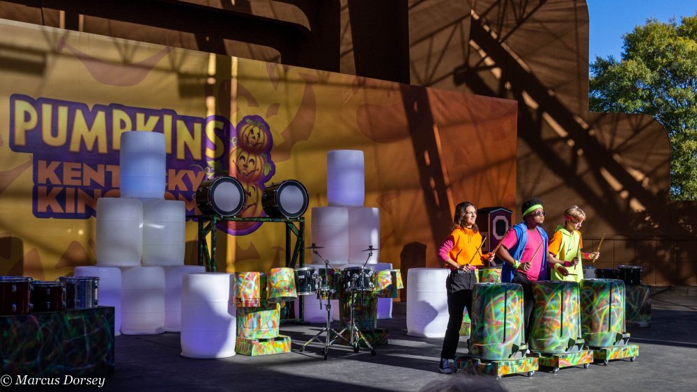 Hope it's still cool to drop photo TR's in discussion threads... let me know if otherwise. Happy month of spooks! Yesterday I got to squeeze out some time to come check out the Pumpkins at Kentucky Kingdom event. Kentucky Kingdom's been doing a huge "family friendly" push this year, and this event certainly epitomizes it, imo. It's a night and day difference between 2019's HalloScream event with haunted houses, spooky sculptures, and even playing a shortened version of Friday the 13th movie in the 5D cinema. Now it's all about Pumpkins! Lots and lots of pumpkins! Frankly speaking, I think this event works really well for Kentucky Kingdom. It's a very local-focused event geared toward families having a place to bring their children without any worry of scares or safety issues (decent security and police presence throughout the park). There were multiple new shows in the park including a glow drumming show, a magician, and a country singer from Bardstown, KY named Will Wright. Thrill seekers can still get night rides on all of the park's major coasters (except T3, which is closed for the rest of the season). People of all ages were out in the park donning halloween costumes, and there were booths set up throughout the front circle of the park for kids to trick or treat at throughout the day. Here's something I don't think I've ever seen at Kentucky Kingdom before: a parade! The Glow Drummers as well as some familiar and new mascots marched the full front circle of the park twice a day starting and ending at the amphitheater. In front of Prof. John's Flying Machines, they cleared out some tables to put in a very small hay maze. The walls are just high enough that most kids can't see over. The two new shows playing in the amphitheater are Glow Drummers and local magician David Garrard (didn't catch his show unfortunately). They do two shows, a daytime show and a nighttime show. There's a second stage with two other acts, including Bardstown country singer Will Wright playing his songs between the carousel and Thunder Run. And last but not least... the pumpkins! And another friendly reminder, night rides are back as well! They're not quite the pitch-black rides you'd expect at other parks, but still nice getting to experience these rides during unusual hours of the day (and in the colder weather). I managed to be on the last train of the night on Storm Chaser which was also cool.3 points