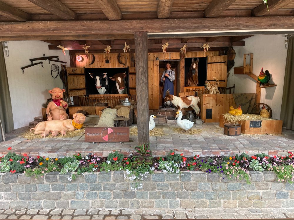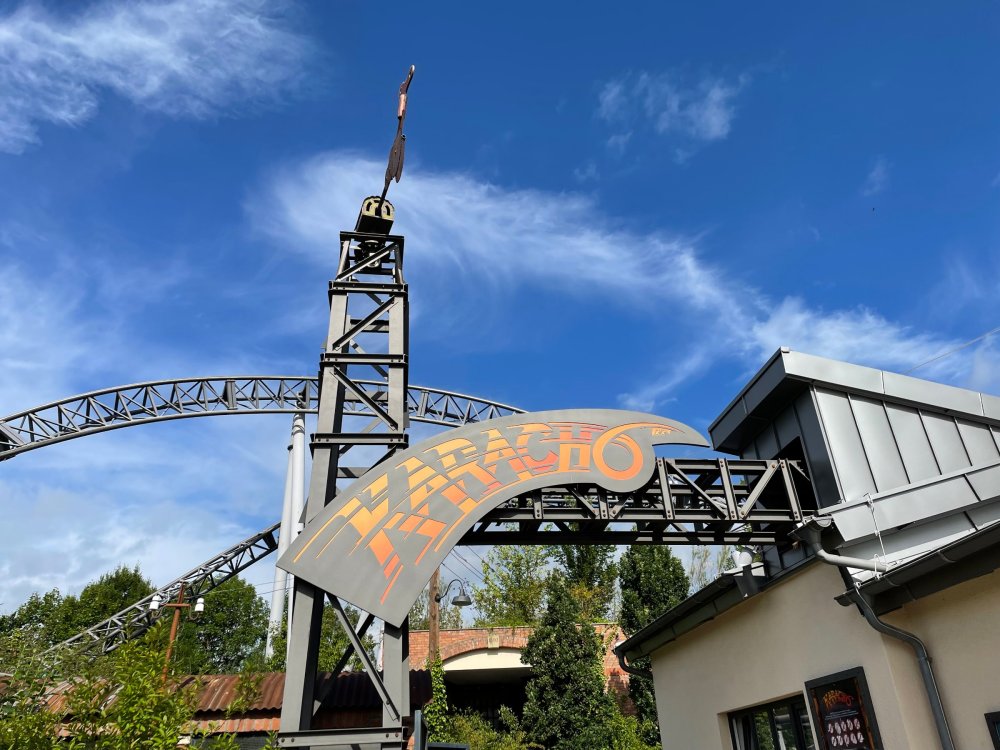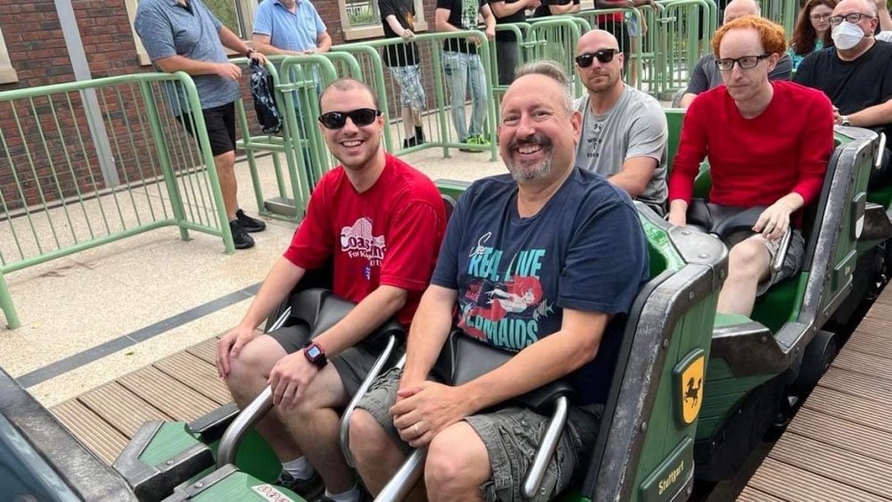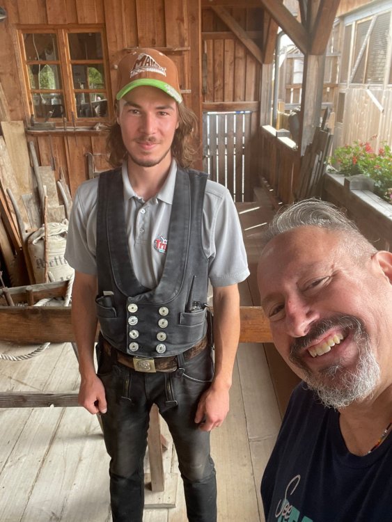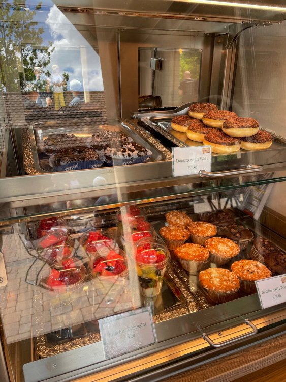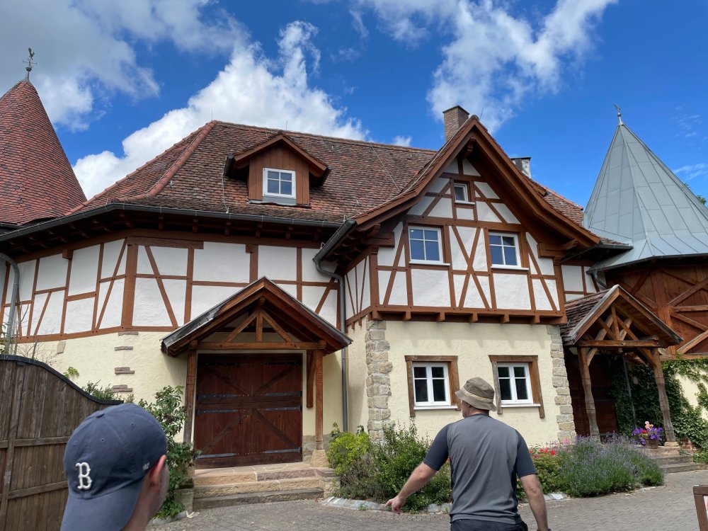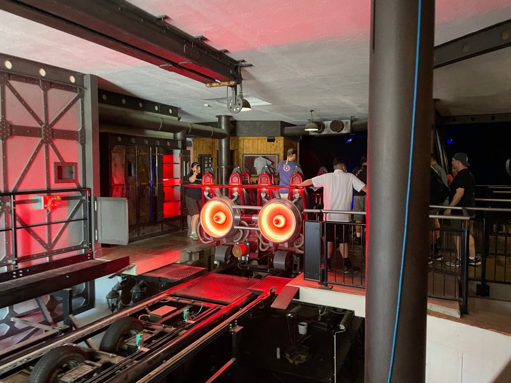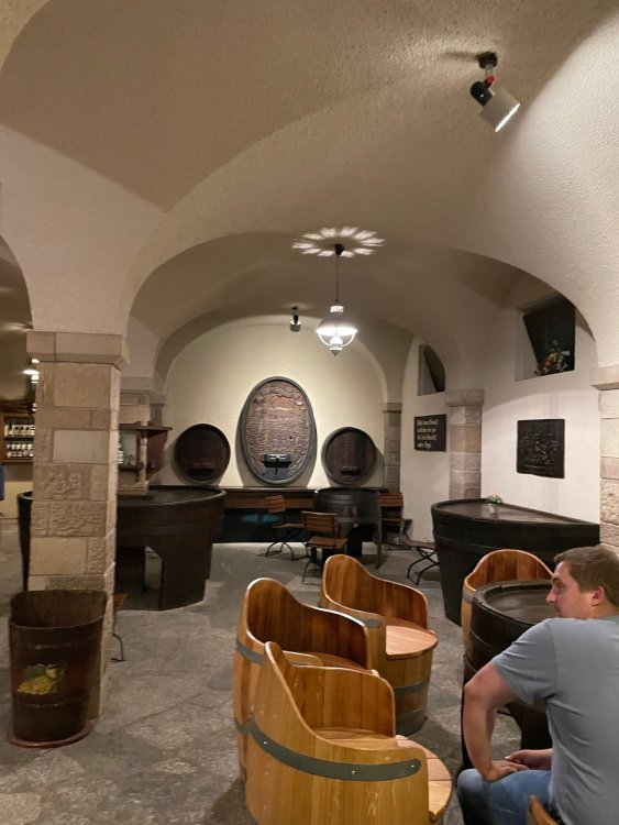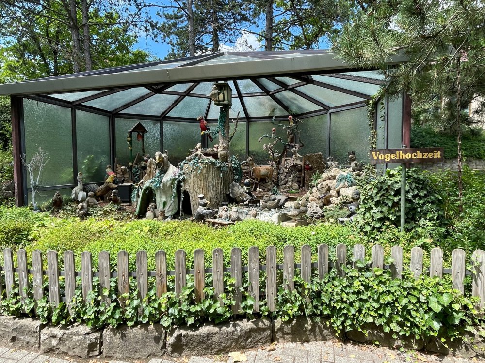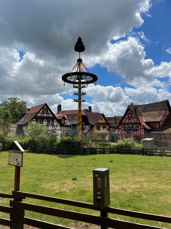 Day 4, part 1: Tripsdrill ! so this day was the earliest "up and out" of the entire trip. . .we had a very full day ahead of us: leaving Europa Park at 6am, spending a good chunk of the the day at Tripsdrill, and then heading out to Holiday Park in the afternoon for some night-time ERT on Expedition GeForce! so we were all up and in our hotel lobby bright and early. can't say that I was super perky, but I still stopped to snap a pic of the beautiful chandelier in the hotel lobby at Europa Park. and then we got the bus loaded up, and said goodbye to Rust. . and headed out towards Tripsdrill. the Countryside is very pretty. . I had to keep reminding myself we were in Germany, and not France any longer. (less windmills) and before too long. . in the middle of rolling green hills, and beautiful farmhouses, we made a turn and I spotted this sign: and moments later? this. a brand new, suspended Vekoma rollercoaster peeking thru the trees. (with the "spike" of a shuttle coaster sticking up in the middle of it???) we made it here for park open - before park open, actually. . . but shortly, the park folks met the group, and led us over to the newest ride in the park (the above coaster) This is the station for Volldampf - the shuttle coaster that has the red track. we'd come back to this in a bit, but yeah, my eyes hadnt' been playing tricks on me - the family Boomerang shuttle coaster "Volldampf" does interact quite closely with the Vekoma suspended. . . intertwining with it and making an excellent (and exciting) option for those too small (or too scared) to ride the bigger, suspended coaster. a better look at that "spike" from the shuttle coaster, poking thru the center of the new Vekoma the front of the train has a terrified sheep hanging onto it . . .LOL but we were mainly here for this. . the newest Vekoma Suspended: Hals Uber Kopf - I believe they said it opened in 2021. tho I'm not exactly sure what the theming was - this was a weird park, and I loved the hell out of it! - much of the theming here SEEMED to be set around German folk tales? So probably something to do with that? 7 guys slaying a bear? not sure how it tied to a suspended coaster with a few inversions. . but it's still a great coaster! and I love how the queue brings you thru the structure. I was a bit wary about riding what I knew was a Vekoma. . . but I absolutely adored that they have the park name/logo on every row hanging between the seats. really COMFORTABLE seats too. wheeee!!! what did I think of it? AMAZING. . and I think my favorite coaster in the park (tho there were some rides in the park that absolutely make this a must visit park). This coaster in particular? high on that "must visit" list - it has AIR TIME! Yes. . . Airtime. On a Suspended coaster! on a VEKOMA Suspended coaster. so smooth, and fun, and so many great elements. . .color me super impressed. and look at that near miss with Volldampf track right here. . . (we were the only ones in the park at the moment, so no chance right now to get the trains together) tho later in the day when we came back to ride again? did manage to get the Boomerang with people on it. speaking of Volldampf. . . after our morning ERT rides, the park had just opened, and the Park Reps walked us over to Volldampf to give TPR a ride. the seats were comfy, and the atmosphere on this is so incredible (since you're moving in and out of the other coaster). . but at the end of the day? it's a family Boomerang, that is really just kinda "meh" . . which is fine, as the Vekoma is so A+ level. since I see Brad and AJ on this train with me, this pic must be courtesy of Elissa or Robb. backwards thru the station. this park is not only full of charm (and WTF is this stuff????). . but also there were a bunch of these 3D illusion "street paintings" thruout the park. not sure if these are permanent installations, or just for a special event and they just happened to be there. . but these were so great (even if some of the illusions worked better than others) oh, I mentioned some WTF stuff in this park? how about this game: you shoot eggs out of a chicken's ass into the open mouths of the villagers (and donkeys). yeah. . . . of COURSE I loved it! the park reps were walking us back to the rear of the park - stopping along the way to ride Rasender Tausendfüßler (Raging Millipede?) the longest coaster train I've ever been on! (pics in a moment). . but that was just a quick stop along the way back to Karacho. . the park's "Smiler" clone (at least I think that's what they told me, it's a clone) EDIT: per Elissa below, it's not a Smiler clone, but it IS similar to Smiler in places it's right across the courtyard from Mamut. . . I LOVED this test seat. yes. . this is the test seat for the trains! speaking of. . these trains are incredible. . . I was glad we got some "ERT" on it, as it was one train ops . . but wow, what a train it is! I mean. . look at this! tho for me? the highlight is this animatronic guy placed in the exit queue. as the train unloads, and the riders exit? he's triggered. . . HAHAHAHAHHAHAHAHAHA. . . brilliant, right? Pic courtesy of, I think, Brad. what did I think? well, having never ridden Smiler, I had no idea what to expect. (in particular that 1st surprise in the dark after leaving the station). I liked it. due to the 1 train restriction, I think I only rode it twice, but I did enjoy it, and if that Vekoma wasn't in the park, this would easily be the #1 coaster here. Apparently this sign is infamous. . but I needed to pee anyways by this point, and it made me laugh, so I snapped a pic of it. and just LOOK at this view - out the windows over the urinal - one gets while peeing. This flat is back over here in this area as well. . I didn't realize until after I got back and saw some posts here on TPR from other parks, that this ride is just an "out of the box" one. . but I was impressed with the theming when we saw it. no time to ride it now, as we had to head over to Mammut. . but
