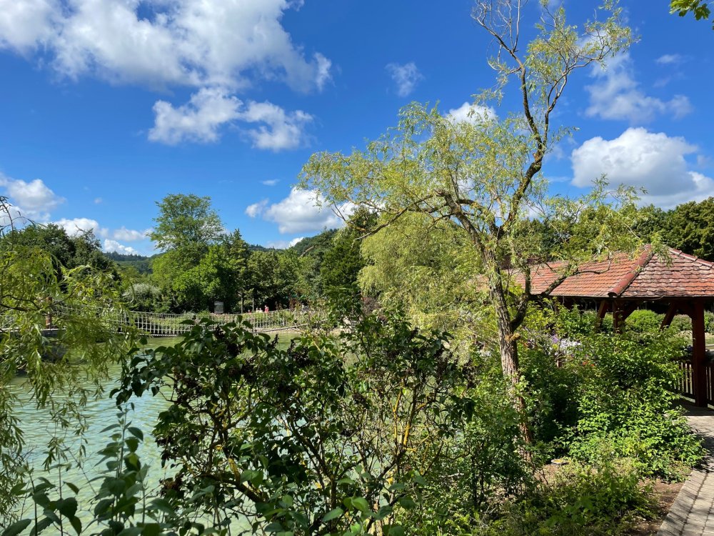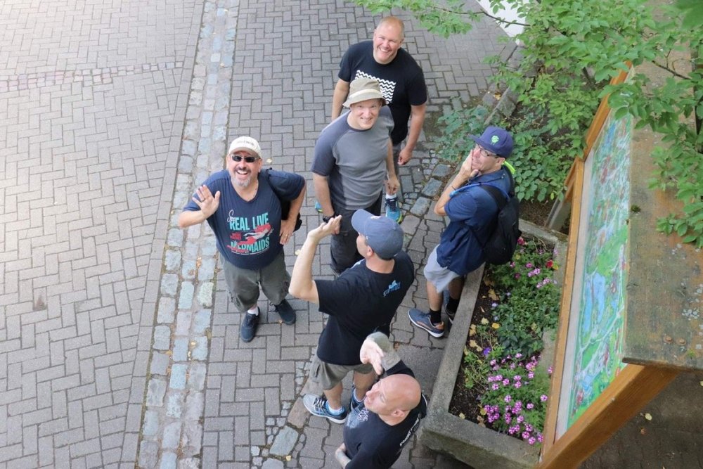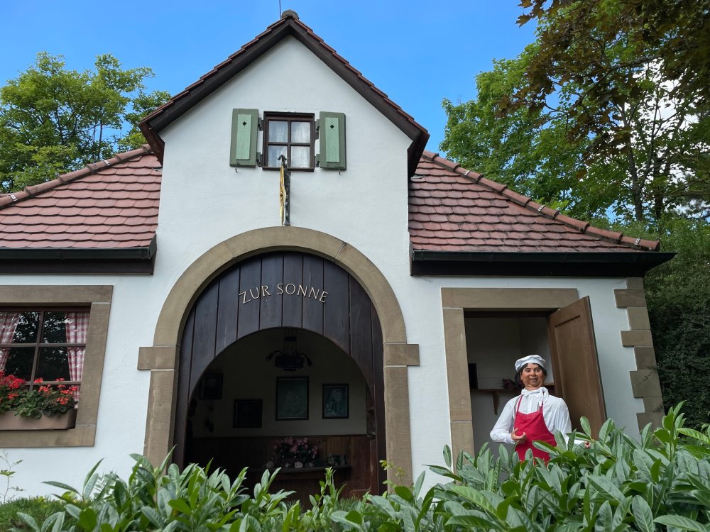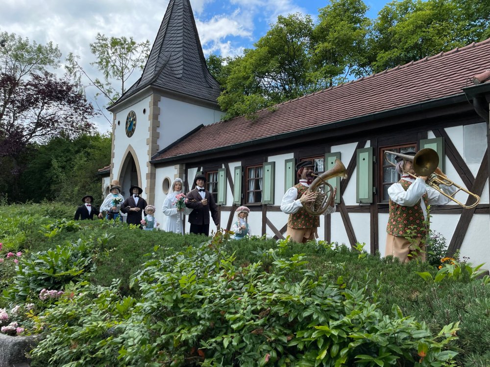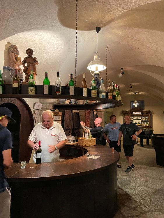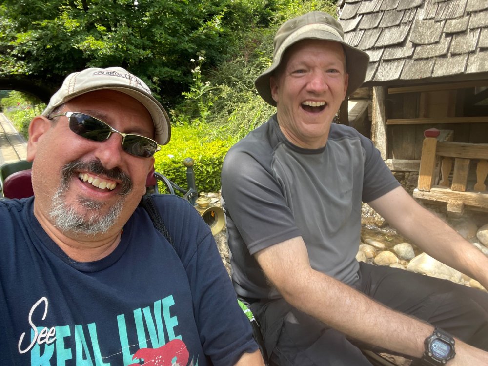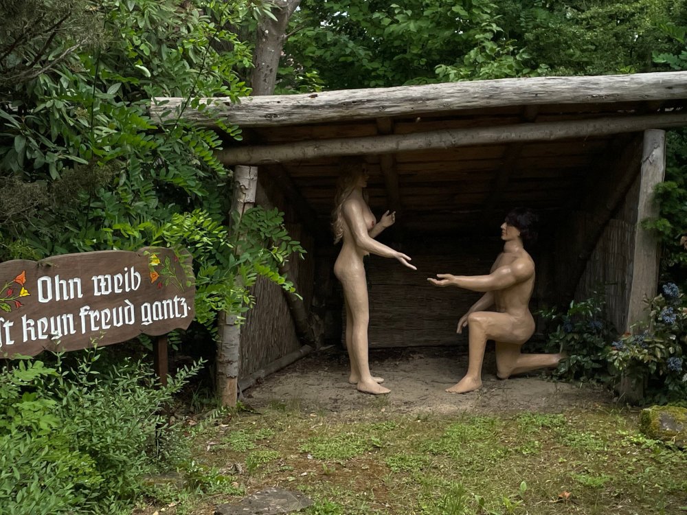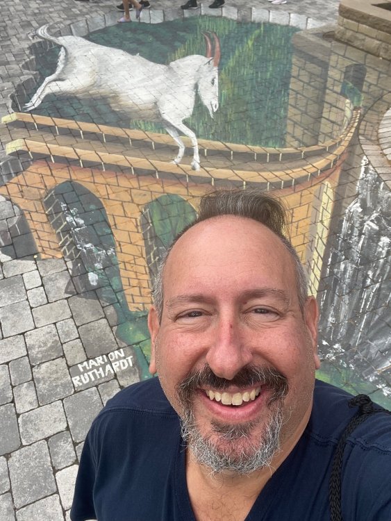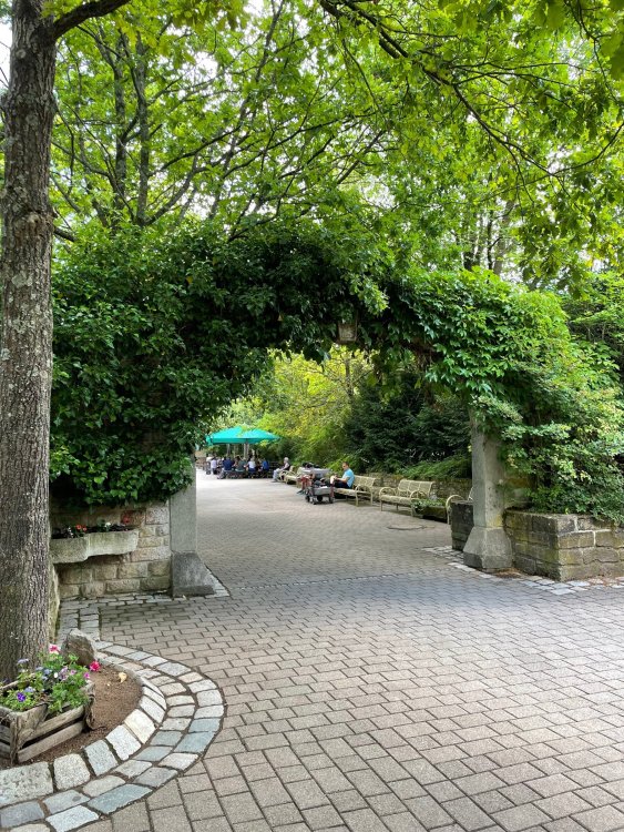 Day 4, part 1: Tripsdrill ! so this day was the earliest "up and out" of the entire trip. . .we had a very full day ahead of us: leaving Europa Park at 6am, spending a good chunk of the the day at Tripsdrill, and then heading out to Holiday Park in the afternoon for some night-time ERT on Expedition GeForce! so we were all up and in our hotel lobby bright and early. can't say that I was super perky, but I still stopped to snap a pic of the beautiful chandelier in the hotel lobby at Europa Park. and then we got the bus loaded up, and said goodbye to Rust. . and headed out towards Tripsdrill. the Countryside is very pretty. . I had to keep reminding myself we were in Germany, and not France any longer. (less windmills) and before too long. . in the middle of rolling green hills, and beautiful farmhouses, we made a turn and I spotted this sign: and moments later? this. a brand new, suspended Vekoma rollercoaster peeking thru the trees. (with the "spike" of a shuttle coaster sticking up in the middle of it???) we made it here for park open - before park open, actually. . . but shortly, the park folks met the group, and led us over to the newest ride in the park (the above coaster) This is the station for Volldampf - the shuttle coaster that has the red track. we'd come back to this in a bit, but yeah, my eyes hadnt' been playing tricks on me - the family Boomerang shuttle coaster "Volldampf" does interact quite closely with the Vekoma suspended. . . intertwining with it and making an excellent (and exciting) option for those too small (or too scared) to ride the bigger, suspended coaster. a better look at that "spike" from the shuttle coaster, poking thru the center of the new Vekoma the front of the train has a terrified sheep hanging onto it . . .LOL but we were mainly here for this. . the newest Vekoma Suspended: Hals Uber Kopf - I believe they said it opened in 2021. tho I'm not exactly sure what the theming was - this was a weird park, and I loved the hell out of it! - much of the theming here SEEMED to be set around German folk tales? So probably something to do with that? 7 guys slaying a bear? not sure how it tied to a suspended coaster with a few inversions. . but it's still a great coaster! and I love how the queue brings you thru the structure. I was a bit wary about riding what I knew was a Vekoma. . . but I absolutely adored that they have the park name/logo on every row hanging between the seats. really COMFORTABLE seats too. wheeee!!! what did I think of it? AMAZING. . and I think my favorite coaster in the park (tho there were some rides in the park that absolutely make this a must visit park). This coaster in particular? high on that "must visit" list - it has AIR TIME! Yes. . . Airtime. On a Suspended coaster! on a VEKOMA Suspended coaster. so smooth, and fun, and so many great elements. . .color me super impressed. and look at that near miss with Volldampf track right here. . . (we were the only ones in the park at the moment, so no chance right now to get the trains together) tho later in the day when we came back to ride again? did manage to get the Boomerang with people on it. speaking of Volldampf. . . after our morning ERT rides, the park had just opened, and the Park Reps walked us over to Volldampf to give TPR a ride. the seats were comfy, and the atmosphere on this is so incredible (since you're moving in and out of the other coaster). . but at the end of the day? it's a family Boomerang, that is really just kinda "meh" . . which is fine, as the Vekoma is so A+ level. since I see Brad and AJ on this train with me, this pic must be courtesy of Elissa or Robb. backwards thru the station. this park is not only full of charm (and WTF is this stuff????). . but also there were a bunch of these 3D illusion "street paintings" thruout the park. not sure if these are permanent installations, or just for a special event and they just happened to be there. . but these were so great (even if some of the illusions worked better than others) oh, I mentioned some WTF stuff in this park? how about this game: you shoot eggs out of a chicken's ass into the open mouths of the villagers (and donkeys). yeah. . . . of COURSE I loved it! the park reps were walking us back to the rear of the park - stopping along the way to ride Rasender Tausendfüßler (Raging Millipede?) the longest coaster train I've ever been on! (pics in a moment). . but that was just a quick stop along the way back to Karacho. . the park's "Smiler" clone (at least I think that's what they told me, it's a clone) EDIT: per Elissa below, it's not a Smiler clone, but it IS similar to Smiler in places it's right across the courtyard from Mamut. . . I LOVED this test seat. yes. . this is the test seat for the trains! speaking of. . these trains are incredible. . . I was glad we got some "ERT" on it, as it was one train ops . . but wow, what a train it is! I mean. . look at this! tho for me? the highlight is this animatronic guy placed in the exit queue. as the train unloads, and the riders exit? he's triggered. . . HAHAHAHAHHAHAHAHAHA. . . brilliant, right? Pic courtesy of, I think, Brad. what did I think? well, having never ridden Smiler, I had no idea what to expect. (in particular that 1st surprise in the dark after leaving the station). I liked it. due to the 1 train restriction, I think I only rode it twice, but I did enjoy it, and if that Vekoma wasn't in the park, this would easily be the #1 coaster here. Apparently this sign is infamous. . but I needed to pee anyways by this point, and it made me laugh, so I snapped a pic of it. and just LOOK at this view - out the windows over the urinal - one gets while peeing. This flat is back over here in this area as well. . I didn't realize until after I got back and saw some posts here on TPR from other parks, that this ride is just an "out of the box" one. . but I was impressed with the theming when we saw it. no time to ride it now, as we had to head over to Mammut. . but