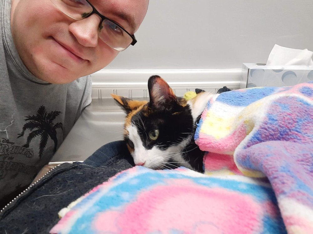 We had to put our cat to sleep tonight. I was the last thing she saw. I was wearing a Pirates of the Caribbean shirt with the silhouette of a skull on the front and text on the back reading "Dead Men Tell No Tales." RIP Kisses. October 2008-August 26, 2022 1:09 am. We adopted her when she was about 9 months.0 points
