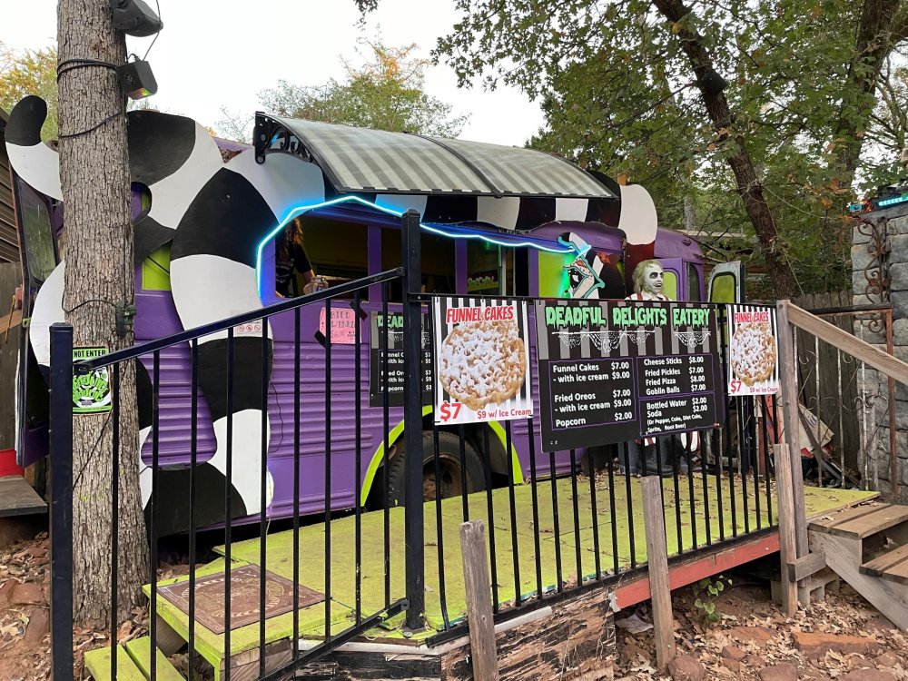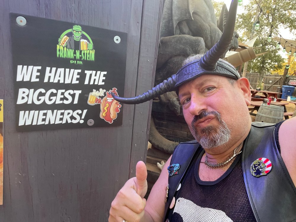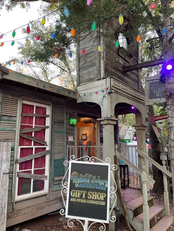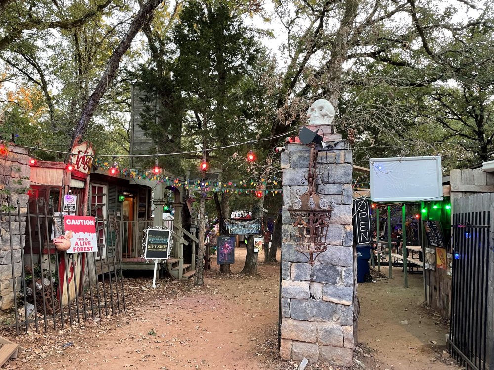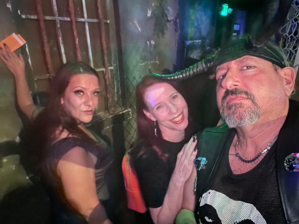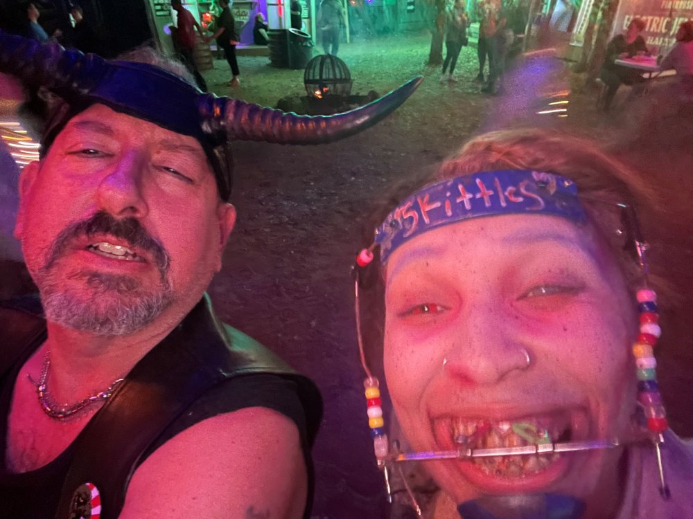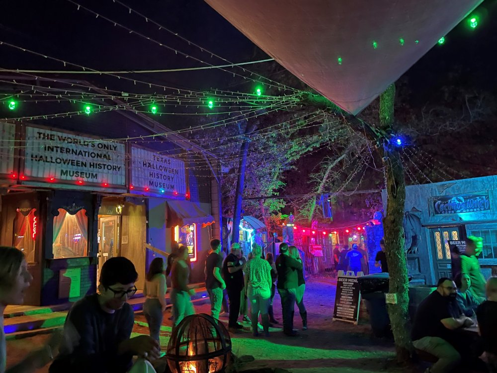 I know I'm in the middle of my massive Trip Report on the trip I took to Europe hitting parks and having fun with TPR. . . but interrupting that to gush about this fantastic thing I did last night. and hey, 'tis the season, right? my friends have been really trying to keep me pretty occupied, so I don't go under due to the grief of losing my spouse back in July. With Halloween quickly approaching, they've been booking me up every Weekend - with last weekend at FrightFest at SFFT, and two weeks before that Howl-O-Scream at SWSA. although I've lived in Austin for well over 35 years, I still have yet to do some of the "local" attractions that have popped up over the last couple of decades. (tho I'm really looking forward to COTALand opening up, as I'm sure I'll do that a LOT once they get more out there - tho I did go to the track/COTA occasionally with my late spouse for races and/or concerts). what made me think of COTA (Circuit of the Americas)? Well, it's F1 weekend here in Austin, but we also passed it last night on our way out to Scream Hollow. I'd seen Scream Hollow mentioned on the Travel Chanel, but wasn't really sure what it was, other than a "spooky" attraction. A haunted house for Halloween. Well, I was certainly mistaken. Located ~35 minutes from Austin, between Bastrop & Smithville - down a long, pretty deserted looking road (that passes right in front of "the Gas Station". . . where they filmed scenes from the original Texas Chainsaw Massacre - and has been turned in to Slaughter BBQ & gift shop - so of course we stopped in there too on the way. . .LOL) is what's basically a permanent "Ren-fair" installation that's basically a theme park dedicated to all things "scare the shit out of you" the official tag for the place is "Wicked Halloween Park" - but I think my description better sums it up. The owners live in a big castle (spookily lit at night) that overlooks the property. And it's quite a large property - encompassing a Halloween Museum, several food stands, drink stands, gift shop, stage for live music, 4 very large houses, and a common area that's decked out in scary decorations & lights - not to mention the scare actors roaming freely among the patrons, very often scaring the crap out of them by sneaking up behind. tho I called it a "theme park" the only "ride" they have is the Haunted Hayride - which is groups of 20 or so pulled behind a tractor thru the woods as creatures come at you from all sides. It's brilliant, and had the longest line of the night (at about a 30 minute wait, and was still worth it). . . but damn this place is super immersive. You aren't allowed to take pictures or film inside the houses, and although I did get permission from the owner's Son, when i was introduced to him by my friend Amy (who is the one who really convinced me to go last night), I only took a few in the houses. Because really. . you need to experience them yourself. the Four houses are all really well done, with tons of long dark hallways, really impressive "gotchas" sprinkled thruout, my overall impression? Food: what we had was really good - tho they were out of a few things, and as it got later in the evening, and the place hit capacity (think the Manager told me it was 3000), many food items on the menus were sold out. Oh, we still found stuff to eat (the voodoo fries - french fries covered in Queso, pico, and brisket were fantastic, and are a great "sponge" to sop up an alcohol drank). And the Pizza seemed really popular and was still selling right up until closing time. the prices are super reasonable too. But if you are gonna eat, eat early if possible - maybe the 1st hour they open, but before the houses really open. Drinks: well below "park" prices, with water and soda only $2, and most drinks/beer in the $6 range. I didn't notice any mixed drinks - but there are several bars, and it wouldn't surprise me if at least one of them was pouring by hand. . . tho vast majority of the crowd was drinking Beer, or canned Margaritas (surprisingly quite good), or Cider (locally made. . the Honey Cider is so good!). the Haunts themselves/Scare actors: As many places are these days ? They are very short staffed - resulting in only a few scare actors in the houses (that should have over a dozen - there were tons of nooks and crannies where I would think a scare actor would hide to scare guests). But that means way fewer jump scares and you can enjoy the long (and really detailed) effects in the houses. Each of the 4 main houses has at least one stand out feature that makes that house worth going thru. and these are not "quick" houses - each one took at least 12-15 minutes to go thru. And in *more* than one of them, we got lost and had to backtrack to find the correct way to go in order to move forward - while a scare actor watched us from above and taunted/laughed at us. the only place there were "enough" scare actors is on the Haunted Hayride, which is where they clearly needed to put the most - it's a very large area - and they have been promoting as a new attraction (the storyline on the Haunted Hayride involved the Wendigo in the woods that has been killing people). So no issue at all with the lack of "in house" scares. . I still feel like we absolutely were terrified in each house, at least a few times. It’s a good time Entertainment: as noted, there are some scare actors roaming the grounds oustide of the houses, but the biggest entertainment aspect is right at the front of the property - next to the main bar/food stand: a stage with live music. That has a DJ spinning between sets, so there's always music coming from the front of the grounds. I saw quite a few folks dancing out on the floor in front of the state, so people really seemed to like it. Price: tho you can buy a ticket for just admission, or just admission and one attraction. . . the way to go is the combo ticket. Which we got on Saturday night. For only ~$40, you get access to the grounds (pretty cool on their own)
