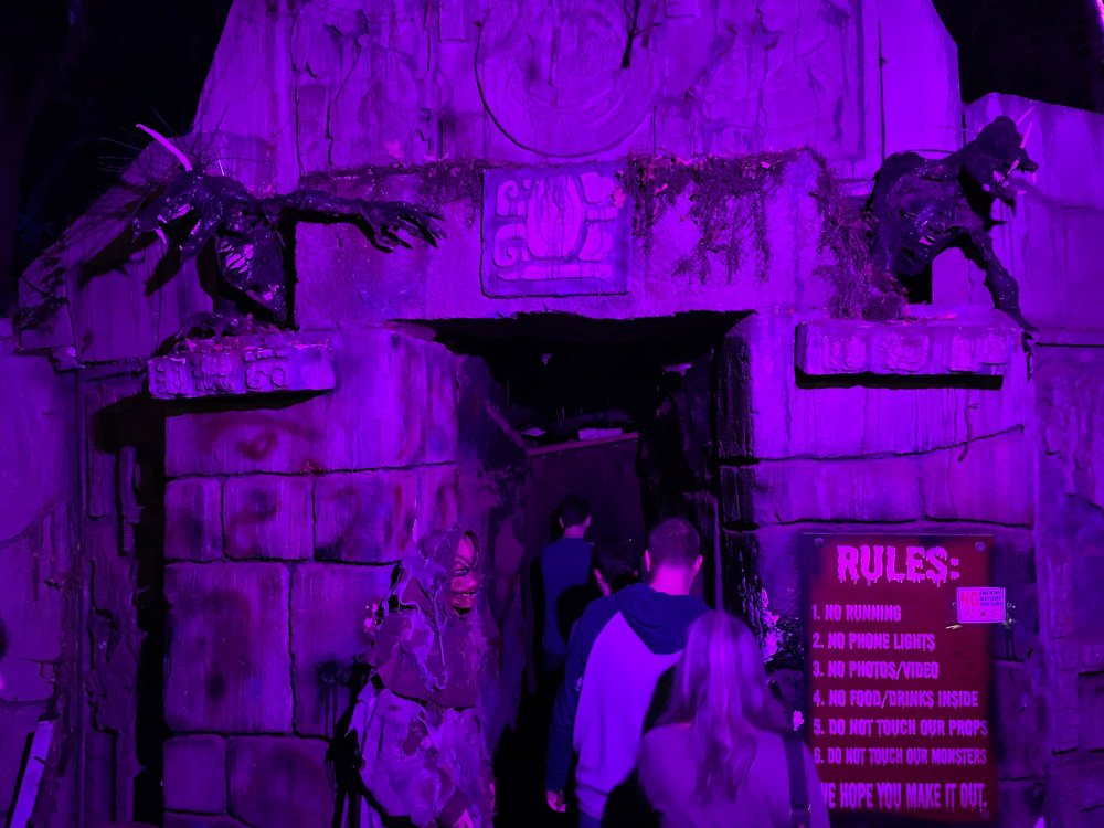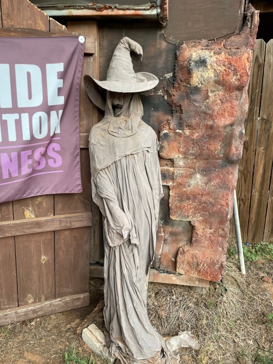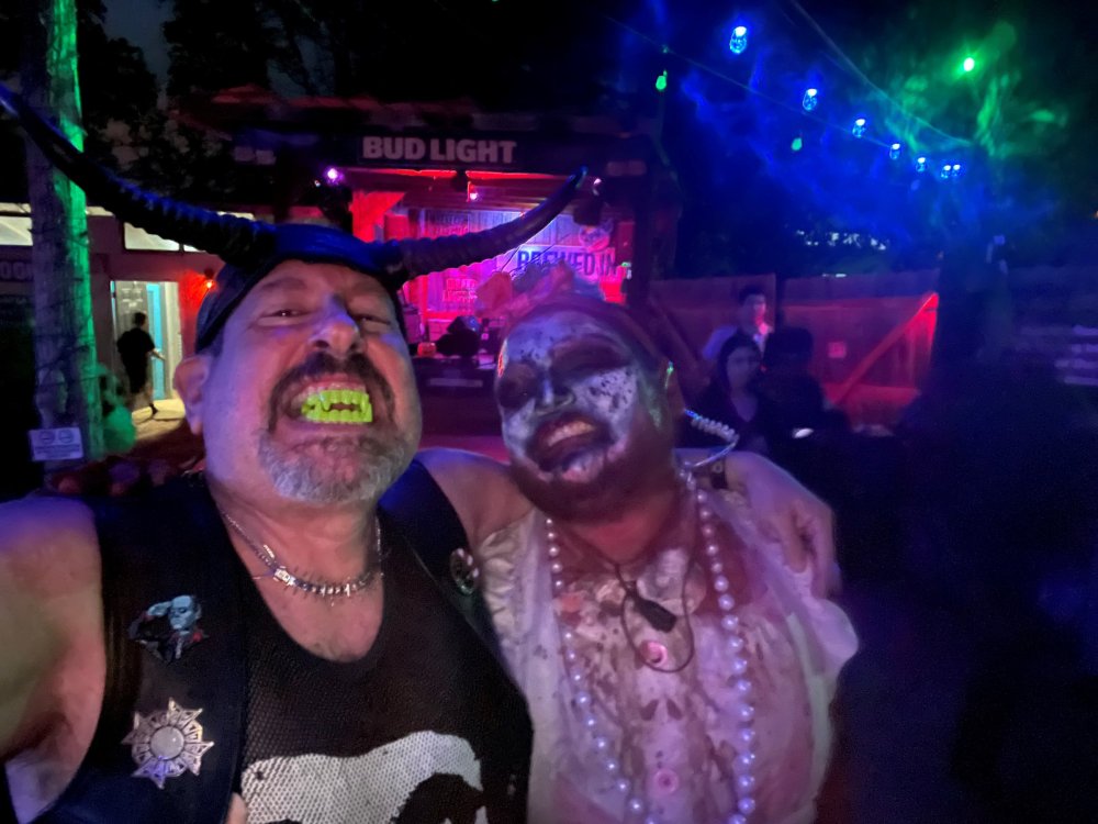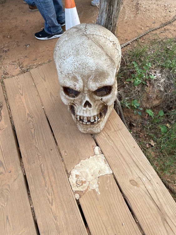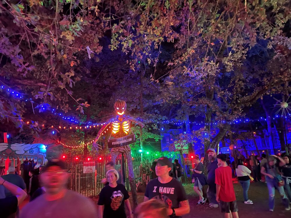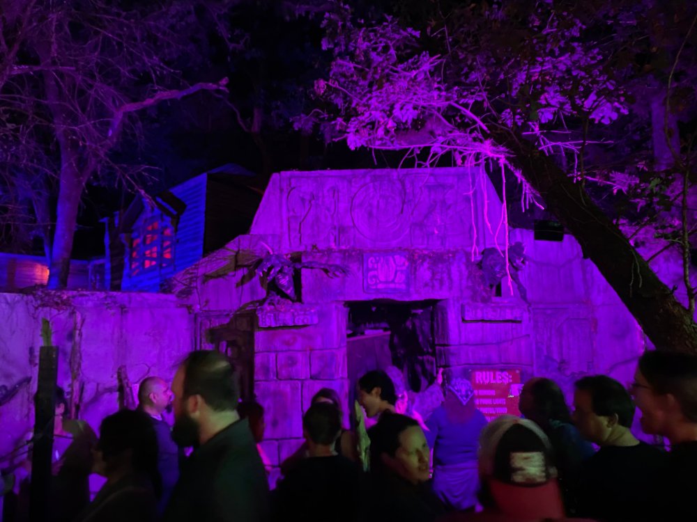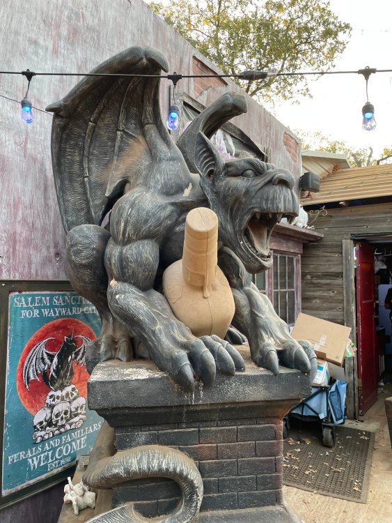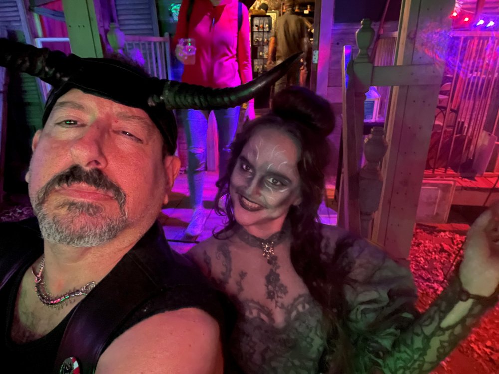 I know I'm in the middle of my massive Trip Report on the trip I took to Europe hitting parks and having fun with TPR. . . but interrupting that to gush about this fantastic thing I did last night. and hey, 'tis the season, right? my friends have been really trying to keep me pretty occupied, so I don't go under due to the grief of losing my spouse back in July. With Halloween quickly approaching, they've been booking me up every Weekend - with last weekend at FrightFest at SFFT, and two weeks before that Howl-O-Scream at SWSA. although I've lived in Austin for well over 35 years, I still have yet to do some of the "local" attractions that have popped up over the last couple of decades. (tho I'm really looking forward to COTALand opening up, as I'm sure I'll do that a LOT once they get more out there - tho I did go to the track/COTA occasionally with my late spouse for races and/or concerts). what made me think of COTA (Circuit of the Americas)? Well, it's F1 weekend here in Austin, but we also passed it last night on our way out to Scream Hollow. I'd seen Scream Hollow mentioned on the Travel Chanel, but wasn't really sure what it was, other than a "spooky" attraction. A haunted house for Halloween. Well, I was certainly mistaken. Located ~35 minutes from Austin, between Bastrop & Smithville - down a long, pretty deserted looking road (that passes right in front of "the Gas Station". . . where they filmed scenes from the original Texas Chainsaw Massacre - and has been turned in to Slaughter BBQ & gift shop - so of course we stopped in there too on the way. . .LOL) is what's basically a permanent "Ren-fair" installation that's basically a theme park dedicated to all things "scare the shit out of you" the official tag for the place is "Wicked Halloween Park" - but I think my description better sums it up. The owners live in a big castle (spookily lit at night) that overlooks the property. And it's quite a large property - encompassing a Halloween Museum, several food stands, drink stands, gift shop, stage for live music, 4 very large houses, and a common area that's decked out in scary decorations & lights - not to mention the scare actors roaming freely among the patrons, very often scaring the crap out of them by sneaking up behind. tho I called it a "theme park" the only "ride" they have is the Haunted Hayride - which is groups of 20 or so pulled behind a tractor thru the woods as creatures come at you from all sides. It's brilliant, and had the longest line of the night (at about a 30 minute wait, and was still worth it). . . but damn this place is super immersive. You aren't allowed to take pictures or film inside the houses, and although I did get permission from the owner's Son, when i was introduced to him by my friend Amy (who is the one who really convinced me to go last night), I only took a few in the houses. Because really. . you need to experience them yourself. the Four houses are all really well done, with tons of long dark hallways, really impressive "gotchas" sprinkled thruout, my overall impression? Food: what we had was really good - tho they were out of a few things, and as it got later in the evening, and the place hit capacity (think the Manager told me it was 3000), many food items on the menus were sold out. Oh, we still found stuff to eat (the voodoo fries - french fries covered in Queso, pico, and brisket were fantastic, and are a great "sponge" to sop up an alcohol drank). And the Pizza seemed really popular and was still selling right up until closing time. the prices are super reasonable too. But if you are gonna eat, eat early if possible - maybe the 1st hour they open, but before the houses really open. Drinks: well below "park" prices, with water and soda only $2, and most drinks/beer in the $6 range. I didn't notice any mixed drinks - but there are several bars, and it wouldn't surprise me if at least one of them was pouring by hand. . . tho vast majority of the crowd was drinking Beer, or canned Margaritas (surprisingly quite good), or Cider (locally made. . the Honey Cider is so good!). the Haunts themselves/Scare actors: As many places are these days ? They are very short staffed - resulting in only a few scare actors in the houses (that should have over a dozen - there were tons of nooks and crannies where I would think a scare actor would hide to scare guests). But that means way fewer jump scares and you can enjoy the long (and really detailed) effects in the houses. Each of the 4 main houses has at least one stand out feature that makes that house worth going thru. and these are not "quick" houses - each one took at least 12-15 minutes to go thru. And in *more* than one of them, we got lost and had to backtrack to find the correct way to go in order to move forward - while a scare actor watched us from above and taunted/laughed at us. the only place there were "enough" scare actors is on the Haunted Hayride, which is where they clearly needed to put the most - it's a very large area - and they have been promoting as a new attraction (the storyline on the Haunted Hayride involved the Wendigo in the woods that has been killing people). So no issue at all with the lack of "in house" scares. . I still feel like we absolutely were terrified in each house, at least a few times. It’s a good time Entertainment: as noted, there are some scare actors roaming the grounds oustide of the houses, but the biggest entertainment aspect is right at the front of the property - next to the main bar/food stand: a stage with live music. That has a DJ spinning between sets, so there's always music coming from the front of the grounds. I saw quite a few folks dancing out on the floor in front of the state, so people really seemed to like it. Price: tho you can buy a ticket for just admission, or just admission and one attraction. . . the way to go is the combo ticket. Which we got on Saturday night. For only ~$40, you get access to the grounds (pretty cool on their own)