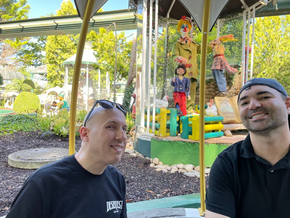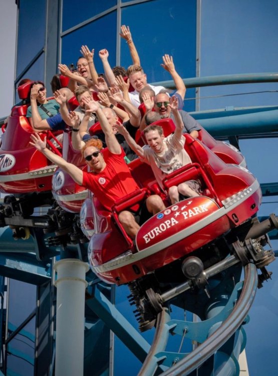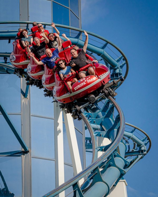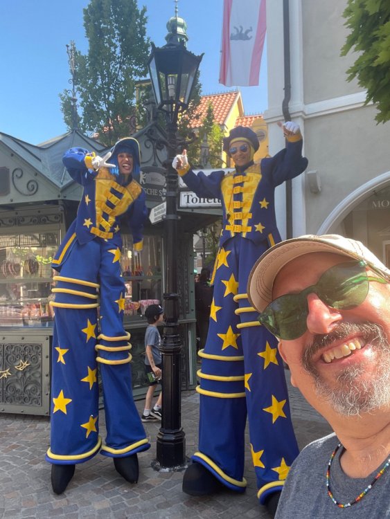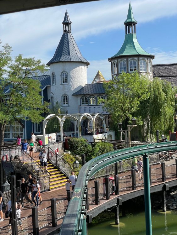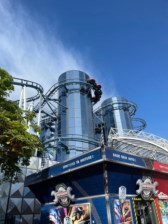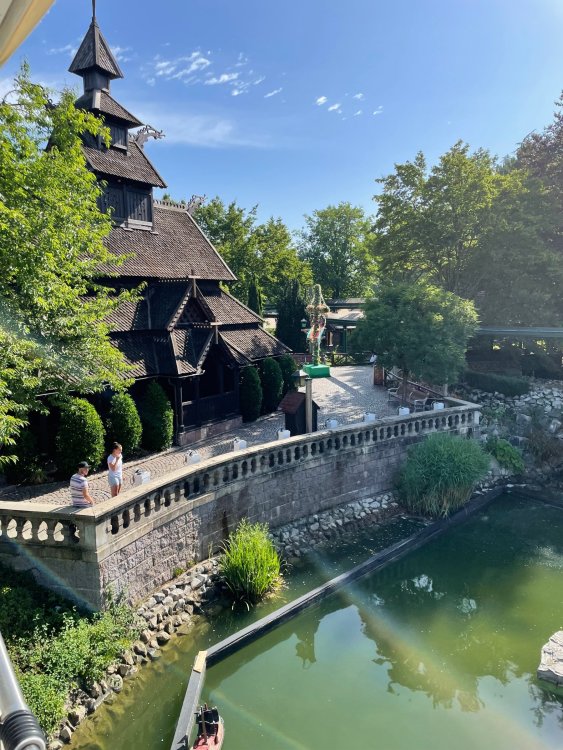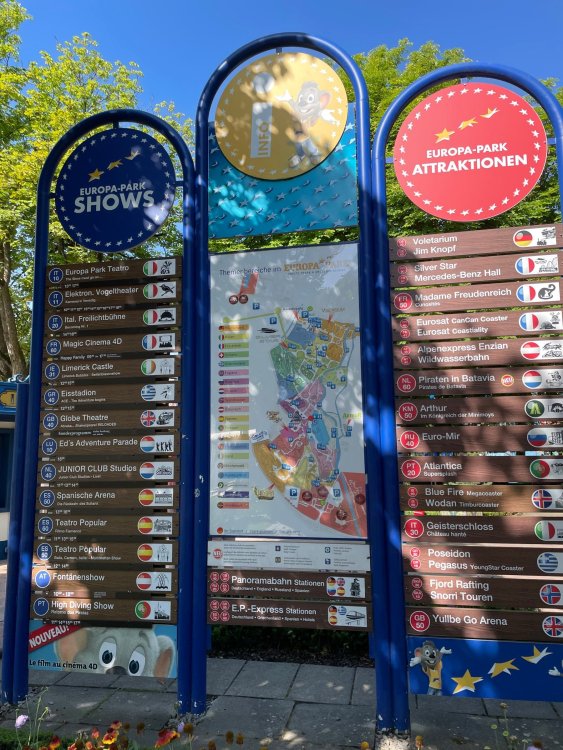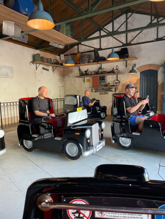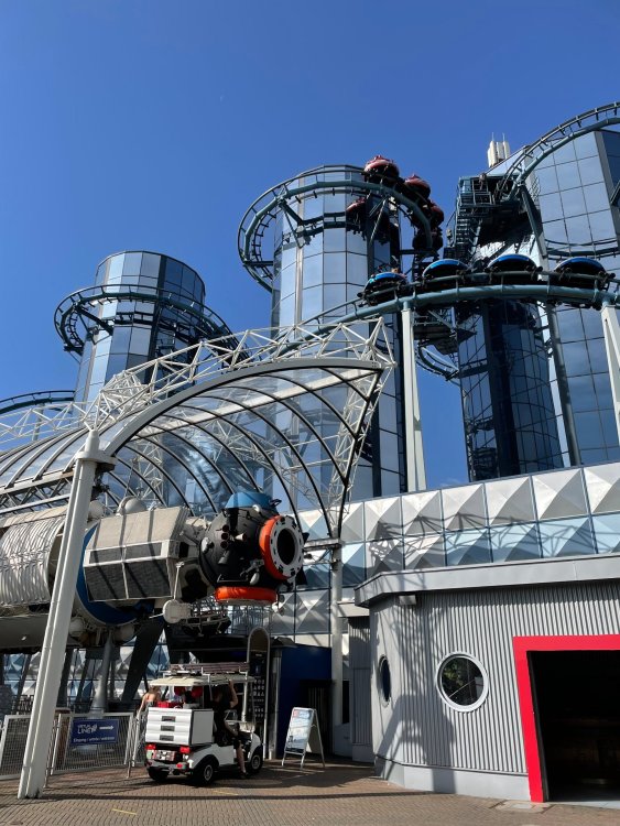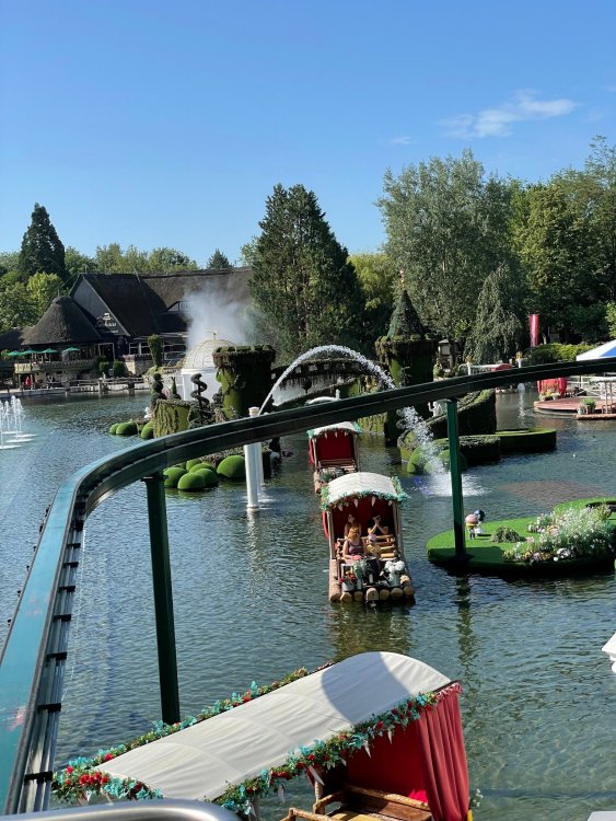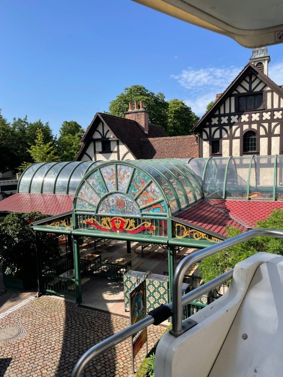 Europa Park Day 2 - part 1: so we got up before park open again, grabbed breakfast, and met up with the park guide who once again walked us into the park before general guests. .this time bringing us around the left side of the big lagoon with the boats (which I was planning to ride later) so pretty when it's empty. . and loved this train "station" over here in the Russia area. . .wait. . why were we in Russia? because our morning ERT was on Euro-Mir this am! going up the disco steps to the station. . . and getting ready to ride. That "bees in a can" song gets stuck on one's head! sheesh. . was humming it for a couple of hours after! our host. . whom, after seeing several updates on the new coaster videos posted - and hosted by him, I now recall his name was Lukas. WHEE !!! Since I see AJ and Andy in this pic, I have to assume this one is courtesy of Brad Roach. after multiple rides on Euro Mir (and I must admit, that I could only ride 4-5 times before I needed a break. . . going down that drop backwards - more often than not - wears you out) I had planned to ride the "stupid" stuff today. . things that didn't really do much, or just the dumb rides I really like. and to my surprise, almost the entire group I had hung out with on day 1, wanted to hang with and also ride the dumb stuff. . at least for a bit. So since we were right here, we took another spin on Bench: the Ride (this time with working a/c) WHEE!!!!!!! hahahahaha. . just look how thrilled we all are! (tho honestly, it was such stupid fun. .I loved it) right around the corner was a station for the inpark monorail, so we headed there and took over the first couple of rows. a nice, slow moving - 10 minute or so ride (I think it was that long). . great views of the whole back portion of this gorgeous park. Remember, it was still really early - park had just opened, and we had started in the center at Euro Mir. . so the people hadn't really made it over here, which is why it looks so empty at the moment. I see you. .and will get to you, later! shamefully, didn't do ANY shows on this trip. There just was not enough time, so that means I need to go back. But loved this "Globe Theater" in the England Section. theming! and made it over to the part I've been calling "Amity". . . this inpark monorail really does give such a great, relaxing ride. and goes over the rapids ride. Doesn't look like it gets you too wet. . . ummmm. . . I spoke too soon! Aquatica Super-splash (which I just rode the other weekend at SWSA). . . SKLOOSH!!!! YES! such a good coaster. . . will see YOU later too. and you too, Blue Fire construction cranes over towards Greece.. where they are building the new coaster I totally forgot Europa Park has one of these. . .didn't' ride it, and didn't' even remember until I saw this pic I took. that's a long rapids ride! see? "Amity" the loading/exit station for the Monorail where we got on, was in the same building as the "roller coaster restaurant". . .so although it wasn't open yet (it was too early, and it was fully booked anyways), was able to peek in and see the "serving" tracks that are used to bet the food to the tables. wasn't quite ready to ride the slow moving barges around the lake - I think we were headed to Arthur perhaps. . .but we walked along it, and again, stopped for pics. there are SO many photo spots in this park even the attractions list is well done. and then we went to England. I mean. . how could I not stop for this? but we had spotted this from the monorail. . and I REALLY wanted to ride it. yep, my kind of stupid ride. so dumb, there was ZERO line for it. . and there were 6 of us. . .so it was a complete TPR takeover of Crazy Taxi. . LOL (and the operator encouraged us to take pictures while riding, hence so many cameras out ) wheeee! after Crazy Taxi. . we headed over to Ireland. it's the kiddie section. . but there are a few rides over here that Adults can ride. . . I didn't really WANT to. . I'm absolutely not a credit whore. . . . but yeah, I got on the kiddie coaster with the group. but after we all got to ride the spinning dragons. . .which is a big ol gay "Tilt a Whirl" type of ride. I mean, you ride in pastel femmy dragons! it was awesome. and tractors. . . yup. . slow moving, bouncing up and down tractors. and we rode them. the train even comes thru the kiddie section. . with no drop-bars, they just expect people not to be dumb and to move out of the way. ah. . Europe! next up on the silly/dumb ride agenda for me was the infamous "Creepy dolls" ride. . . where you ride a slow moving round boat past nightmare fuel clowns! turns out it's THEMED to Marionettes. . . but that doesn't make it *any* less creepy. and it was awesome! there was also a pretty creepy/weird boat ride closeby that was also themed. .this time to fairies and mushrooms! we'd come back to ride this one. . . but . . yeah. . several creepy boat rides over here in this area and a "hanging" monorail themed to Leonardo DaVinchi's inventions. but we were headed towards the front gate, to ride the "flying theater". . think it was called the Volarium, or something? on the way tho. . passed the golden idol mascot of the park: and there was a meet and greet going on. NO idea who she is, but she had a short line, so I hopped in it. (later ont he way back, the Elephant was out, but his line was really long, so passed him by) headed to the front gate to shop, and ride a flying theater ooo. .they have some of the Berlin Wall here? Photo op! never made it outside the front gates (a shame, as the pics that Erik shared, show that it's beautiful out there). . .but we just had too much we wanted to do. and flying theater was the one everyone wanted before it got too busy (since it's near the front gate). cool model of it in the queue. heck, the whole queue for it was pretty cool. . even if the show was just "Soarin" but over Europe. I dont' remember much of it. . just that it was "ok" Queue is great tho to be continued in part II. . . .1 point