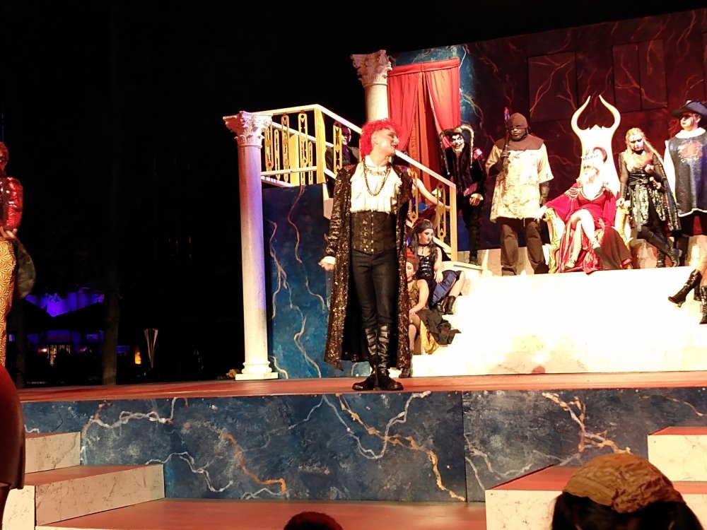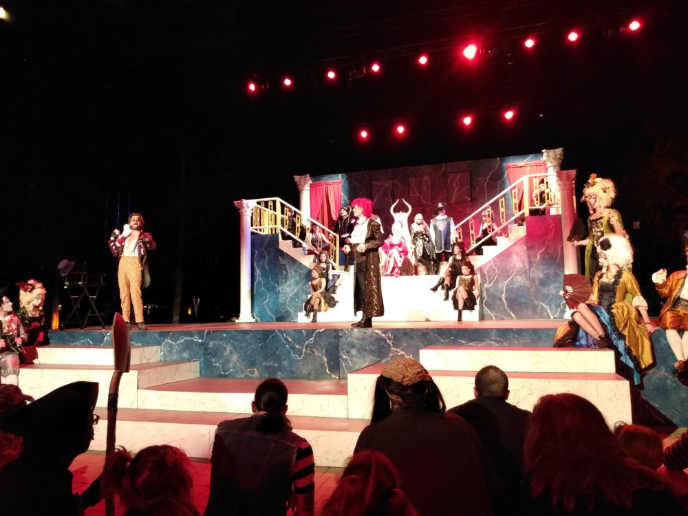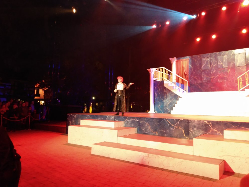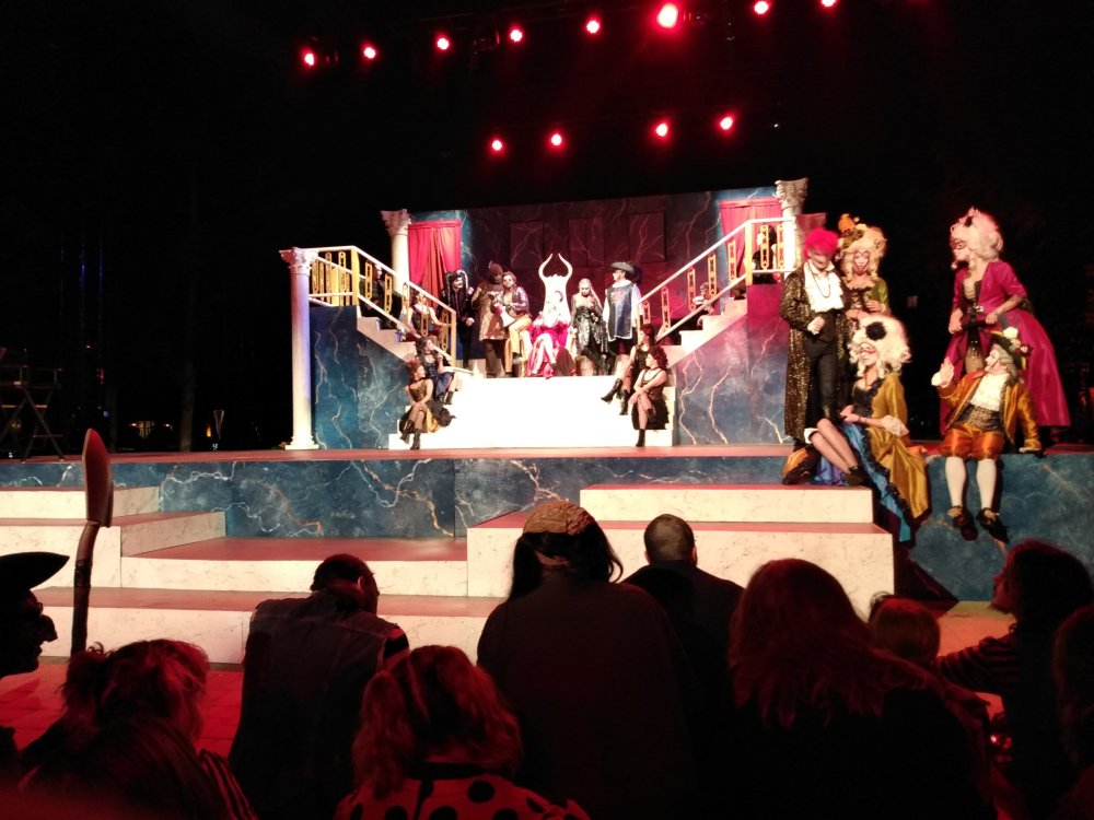 On the way back from Kings Island (normally a 9-10 hour drive), I decided to "stop by" (ignore the fact that it adds 6 hours to my total drive time) Kings Dominion to try to catch the full Queen's Ball show, that I missed during my initial Haunt trip here. Was I successful? Read on. BONUS! Kings Dominion Sunday, October 16th. I arrived at the park around 4:00 PM, grabbed my FL+ wristband, and then made my way around the park. I had some time to kill until 7 PM, when the show would begin. The skies were overcast, and the weather forecast called for a good chance of light rain, but I figured, "hey, shows should still happen in the rain, right?" Winterfest preparation had begun: I grabbed a "quick" ride on Reptilian: 17 minute wait, with Fast Lane, for the front row. Yeah, they really need to put a grouper in place to manage this station. Here was the standby queue on my way off the ride. After that, I decided to just plop myself down in front of the main stage to make sure I got a good spot for the opening ceremonies, Blood Reign. Despite the same name, this show was different from last years. I know I provided some pics and videos in my initial report, but this time I was a lot closer! Note that a slight drizzle had begun. As a bonus, here's videos of pretty much the entire show: M4H03298_Trim.mp4 M4H03299_Trim.mp4 858818504_BloodReign3_Trim.mp4 Now, Queen's Ball was supposed to immediately follow this show, but the Astaroth character (so dreamy), said something to the effect of "come back later, I melt in the rain." Uh-oh. I asked one of the ushers if that meant that the show wouldn't be happening as scheduled, and they confirmed: try again at the 8:30 show. Bummer. With some extra time to kill, and the rain increasing slightly, I took another walk through Grimm Woods with my not-the-right-color Fast Lane band, and noticed a really cool animatronic dragon at the end which I hadn't noticed last time. Unfortunately, the oven prop in the Hansel & Gretel section was still not illuminated. I then took another walk through Trick or Treat, and it was good as always, but was a pure conga line. With the crowds at the park, and many rides shut down for weather, I guess they didn't have a choice. Winterfest lights in place. I made my way back up to the International Street Bandstand, and plopped myself down in the still-increasing rain, waiting for the show to hopefully start up. The ushers first began pushing the water from the stage in an attempt to dry it, but around 10 minutes before the show was to start, some of the entertainment managers came out, walked over the stage, and shook their heads. Alas, it was not to be. Sad face. Now properly soaked, I depressedly made my back to my car, and began my 4 hour drive home. *sigh*1 point