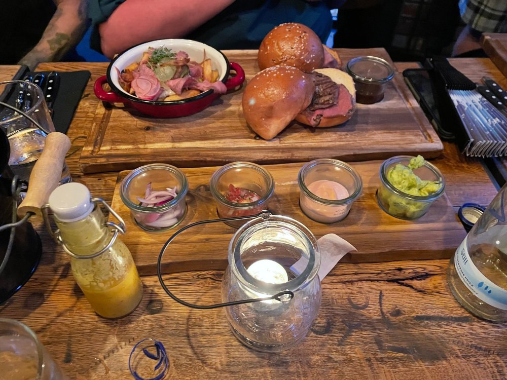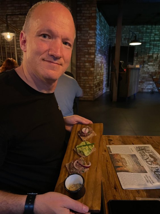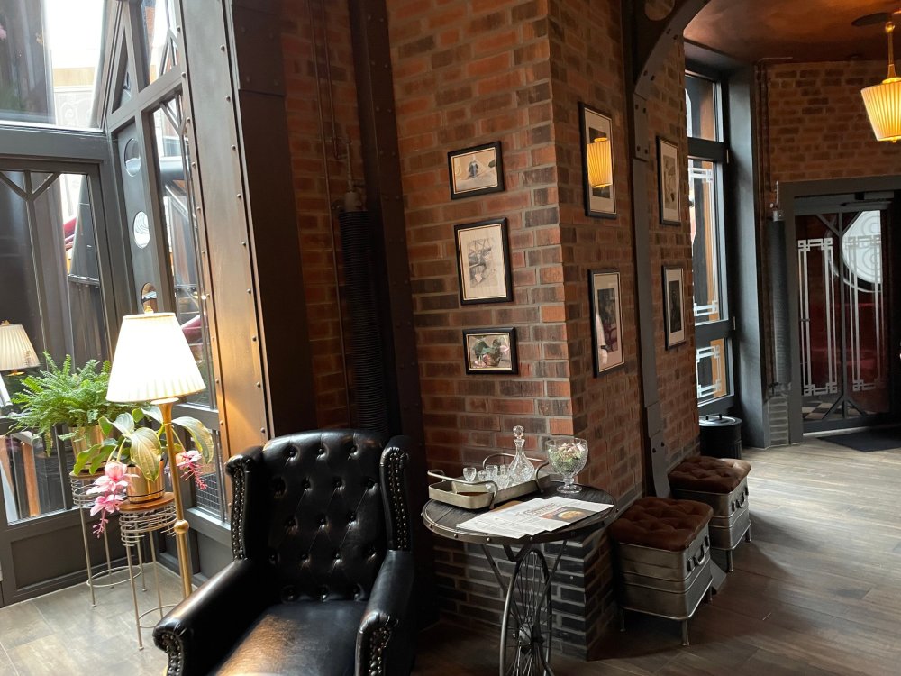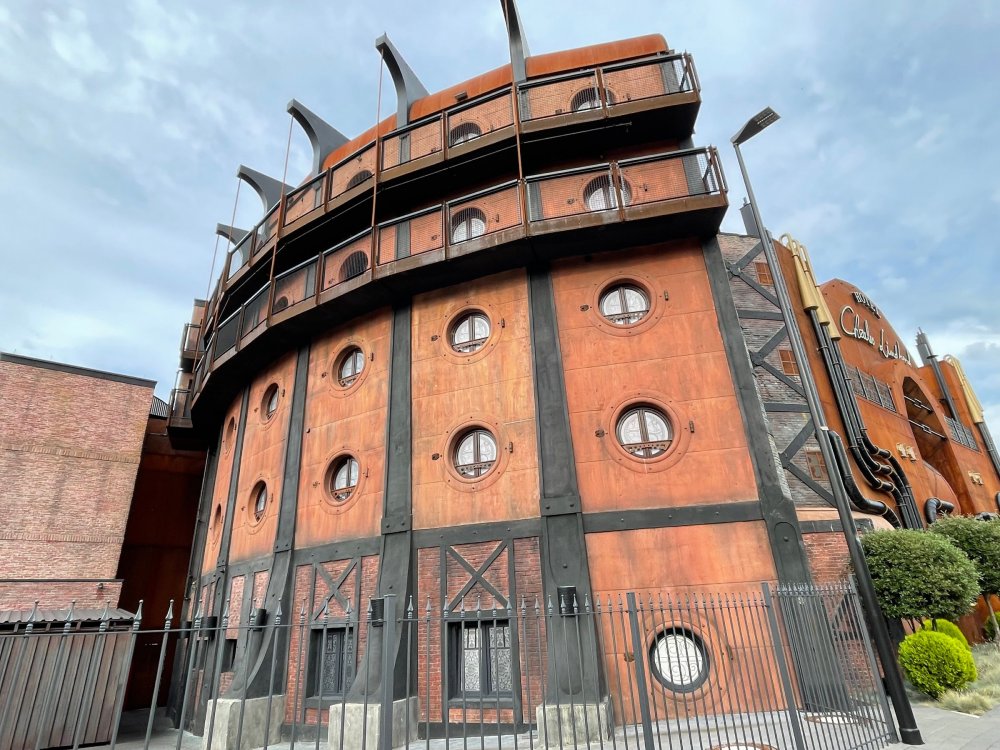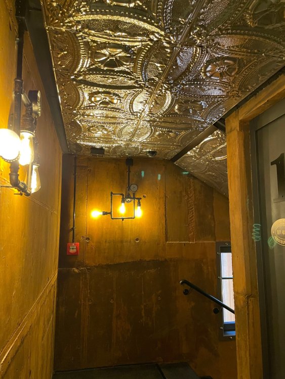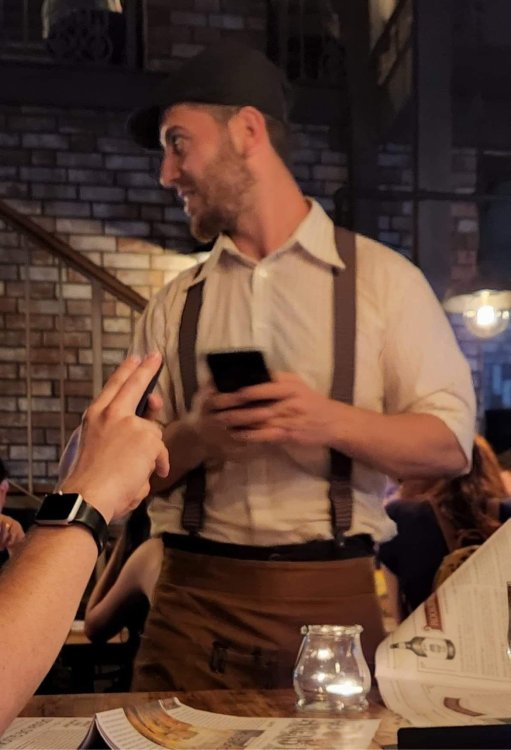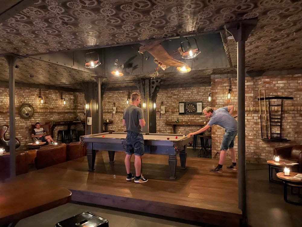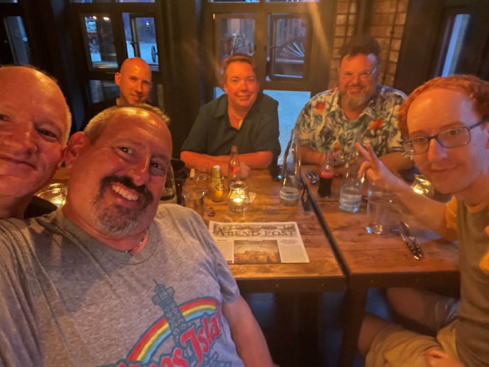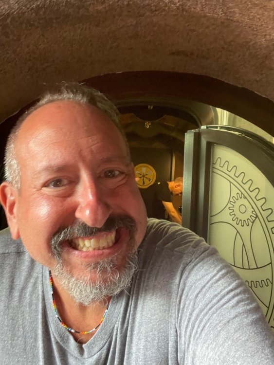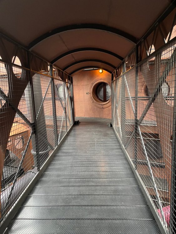 Day 5, part IV - the conclusion of the day: arriving at Phantasialand ! it had already been a packed (and thrilling) day, but we weren't done yet! Soon, we pulled up outside of Phantasialand (which is really well hidden from the surrounding area, as you couldn't really see any rides at all), stopped in front of our home for the next two nights: Hotel Charles Lindbergh - a fully immersive ON SITE boutique hotel that is heavily themed from the moment you walk inside. unloading bags from the bus and waiting outside for our room keys/directions. so I wandered and took some pics of the outside of the hotel facade as noted, it's heavily themed. you are an "Aeronaut". . . traveling thru time and space, and you've checked into this steampunk/time lost hotel to rest between time jumps. here's the lobby check in: these long hallways connect the lobby to the main "Pod A" (tower) of the hotel - which has, I believe, 4 "pods" of rooms. Although Pod A also has the access into Rookburgh. what is Rookburgh? well, Rookburgh is the themed area of Phantasialand where the new F.L.Y. coaster is. It's also where the Hotel is located, and guests at the hotel have access to the area after the park has been closed to guests. (no the coaster is not operating after hours. . . but holy crap is it cool to wander around that area, JUST with hotel guests - as you will see coming up). anyways - the walkway that would lead to Rookburgh/Pod A: and the way we went to get to our Pod C rooms OMG. . yeah, the coaster is RIGHT there. interacting very closely with the hotel. this is going to be so cool during the daytime operating hours! the coaster is literally outside the walkways to the rooms! love the old-timey / lost in timey tin ceiling tiles in the stairwells between floors. looking across at Pod B tower. . those are the back-side of rooms (ie: the bathroom windows) here's me looking out our bathroom window in Pod C and the view from said bathroom window: (went a little out of order). . . here's the door to our room and what the inside of the room looks like. Very small - in keeping with the theme. and a LITTLE cramped with two people plus luggage. But OMG, so cool, it doesn't matter. again, heavily themed (we didnt' turn the tv to anything other than the "old time static" broadcast it was on when we came in the whole time). James and I standing in doorway to get a pic of the walkway across to Pod B (and the access to the rooftop viewing platform that only guests of the hotel have access to) Bathroom. Small, but decent. again, the theming is that you're an Aeronaut only resting briefly before your next jaunt. ok. . settled into the room. . it's time to stretch our legs before dinner (which is included in the Restaurant attached to the hotel. (the only area of the hotel that during the day, non hotel guests have access to). from the end of our pod walkway, you get an EXCELLENT overview of Rookburgh area, and the F.L.Y. coaster and how much it weaves in and out of the theming in the area. SO well themed. . other than Mystery Castle - the tower off to the right in the distance - you can't see anything else of the park other than Rookburgh. They really put some thought & design into this theming! the steps under the rounded turret on the right are the ones that lead down to the Hotel Entrance into Rookburgh snapping pics, as we walk over to Pod A and head up the steps to the Hotel Exclusive viewing area. . . up on the viewing area, we bumped into Andy (the Great Zo), who had the same thought to come up and see the view/take pics. so we took a pic of all of us. the view from up here is SPECTACULAR. and even up here, other than Mystery Castle, you can't really see any other parts of this park! Pics taken. . let's head down into Rookburgh popper, since we still have about 30 minutes until dinner seating. such an amazing job with the Steampunk/time lost theming. . the private gate out of the hotel into the park. and looking back into the hotel entrance - during the day, there is a staff member stationed here that only will allow Hotel guests in and out of this gate. down the steps and into the deserted Rookburgh. the park had closed a couple of hours earlier, so we were the only ones there. . one of THE best reasons to splurge and stay onsite here. the theming is incredible, and it's so cool that you can see it / touch it/ take pics of it - without hundreds of people around! fully immersive. . . one of the "exit gates" into the other sections of the park. . .tho as noted, the park closes off this area at park close, to keep Hotel Guests inside Rookburgh and maintain the "Aeromaut" role-playing. . . the special gate for F.L.Y. that we would use our hotel passes at tomorrow or the next day. the main / standby line entrance for the ride. (which by the way is an AMAZE-BALLS flying coaster. . that some in the group didn't realize was a "flying" coaster until the seats tilted face down on the main lift/launch. . LOL). security stands here during the day. but off hours? yup, photo op! and I absolutely adore how they keep all the theming on even after park close in this area. steam and lights stay on until well after 11pm for hotel guests to enjoy the area/atmosphere. another "gate" that would lead to the indoor section where Winjas is located (tho oddly, these doors never opened while we were there. . so maybe they just don't use these any longer, as the other entrance - thru the tunnel - is way more immersive into the Rookburgh area) peeking across/thru the coaster track & theming, you can see folks sitting in the private Bar patio in our hotel. . only hotel guests have access to this bar/patio. (based on that blue shirt? I *think* that's Daniel sitting there?) tho it would be cool if they operated this coaster after hours for hotel guests? I can totally understand why they do NOT. can you imagine the noise in the rooms? I mean look how close it gets to the pods. Instead they give hotel guests "skip the line" / "special Hotel entranc