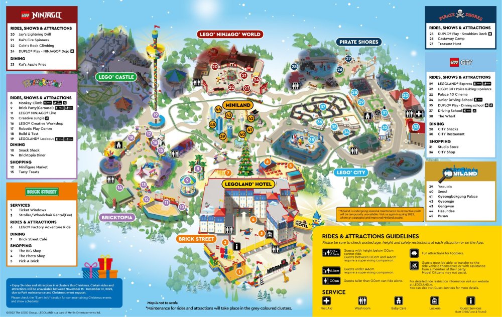 I wonder if Legoland Korea hasn't been hitting the attendance they were hoping for with their Christmas event. Despite only a few weeks left until the park closes in March they've suddenly updated the map for a 3rd time with more parts of the park open. Although, it looks like they are just adding the small Duplo area, Ninjago button basher and spinners, a playground, and one indoor digital sand area. No actual rides have joined this expansion. I thought the Ninjago ride would be added to boost the indoor avaliablity now the temperature is low, but the actual ride line-up hasn't changed at all. The map on our visit, although the Duplo train was removed from the line-up before the Christmas event had begun. The new map that now boasts of 24 attractions while still keeping the ride count at 7 (counting the 4D cinema) Like I said in my previous post, they're competing against other theme parks that not only run almost all their rides 365 days a year but most open rubber tube snow slopes to entice people to visit in the Winter as well as the ski slopes now being operational not too far away.1 point