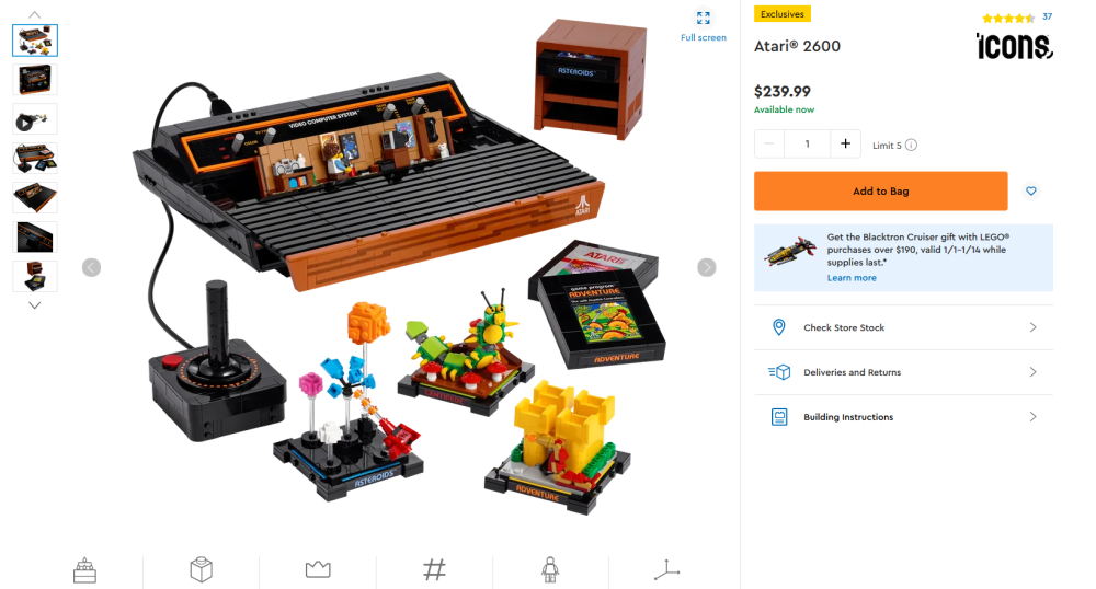 OMG. .that is the coolest thing ever. . and I'm now so sorry I looked, because I want it. . but I know I dont' have the space (or the self control to take the time to build it). HOWEVER. . on the site? they also sell this - which has already made it into my shopping cart. . . . dang it! LOL https://www.lego.com/en-us/product/atari-2600-103062 points