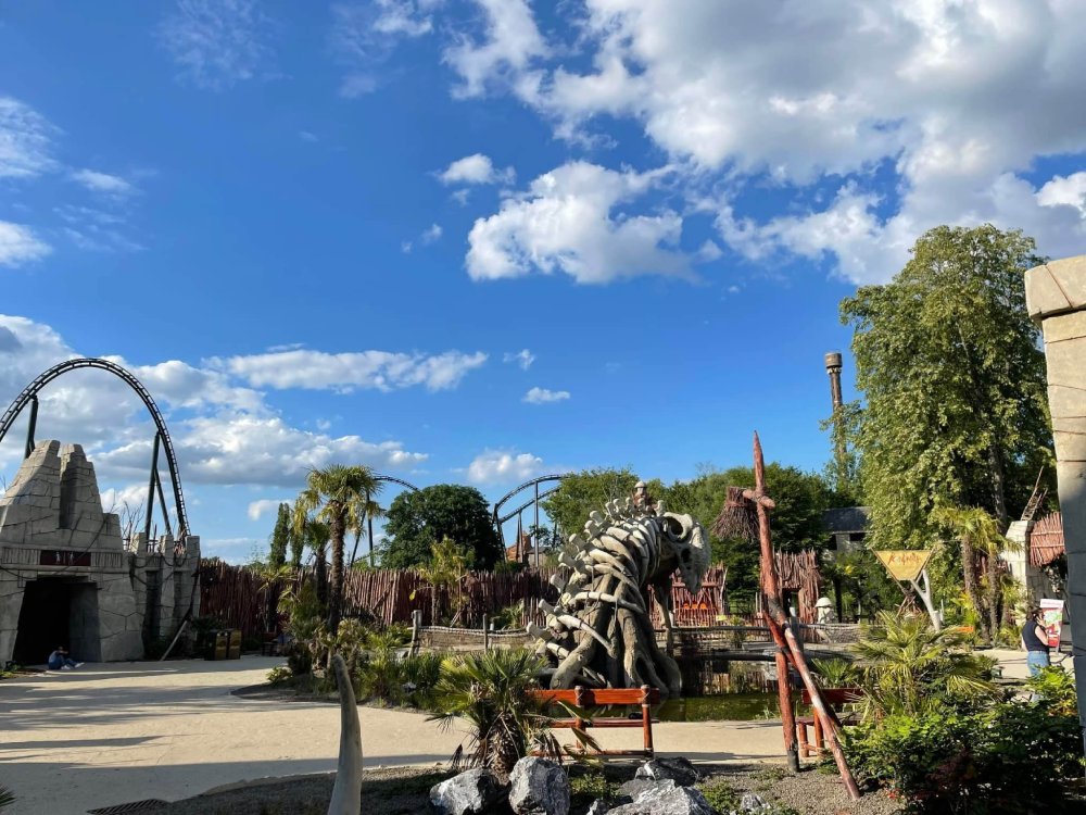 Walibi Belgium, part 2: we headed over to the "western" part of the park. . a smallish area, with a bunch of shops, and two rides. . the drop tower, Dalton Terror, and the Vekoma mine train, Calamity Mine. I used to love this at Astroworld, and tho got to ride it at SFStL before it closed. .and earlier in the trip at Holiday Park. .so any chance to ride these, I take. you can see from the lines forming, it was really starting to get busy as we got into early afternoon timeframe. the mine train was only so-so, I thought. . .but I did like the look of this area. and was able to get James to do a photo op with me. i'm so pretty! we headed over to Buzzsaw, and wow.. what a line over here. with the fast lane it still took almost 20 minutes. and the cycle was really pretty bad. I mean, nothing could really compare with Talocan - especially the day right after. But this thing flipped, I think, maybe 3 times total? the rest was just rocking back and forth. i was sadly disappointed in this. tho it was very photogenic. phantom cars!!! it's a g-g-g-ghost driving!! ruh-roh!! we still had 3 coasters left in the parks line up, and I really wasn't looking forward to any of them (and didn't plan to ride two of them anyways, the kiddie and the Boomerang). . but to get up my nerve - and it was on the way - we stopped at the Carousel on the way to Vampire, the parks Vekoma SLC. lovely carousel. and all the effects were working: the spinning cups, the galloping horses, and the rocking carriages. see? my happy place. even rode twice maybe? Unless Jon fell off from the prior pic? while some went for a coffee break, I popped into the store up front to see if there were any shirts I might want later. i was surprised to see them selling merch from everyone in here! DC Superheroes (Six Flags parks), Harry Potter (Universal), Star Wars/Marvel (Disney), even cartoon network stuf fand Nintendo stuff! . . it's a copyright free for all up in here.. . LOL but eventually we had to face it. another "pretty to photograph, but it's gonna suck" ride. Vekoma SLC with some nice theming tho. but yes. . it suuuuuuucked. I haaaaaaated it. the only thing that even made it worthwhile to come over to this part of the park (near the front gates) was the Carousel. oh. .and passing these two inked Bears. . . hello misters! after the crapfest that was Vampire, we were starting to get hungry, but wanted to let stomachs settle. So we headed across the park to the one section we hadn't been in yet - and to ride Popcorn's Revenge - the other shooting dark ride. nature will find a way: although this seems like a huge waste of space - like SOMETHING should be in here for use? - it really is lovely to have a lake in the center of the park. and allows for some great views. this Elephant sculpture was adorable. and it "mists" you as you walk by. . LOL before we got to Popcorn tho.. most of the guys wanted to ride the boomerang. why? I dunno. .to get the credit I guess? I decided to just wait for them and watch. the best seat on a Vekoma Boomerang? the bench out front of the entrance THIS is what I was interested in. I had called this Mediterranean section. .but I think it's more going for an India street vibe, right? huge queueline, that was almost completely empty. for such a fun shooting dark ride. I think maybe just a lot of people don't realize it's over here? if you ever go to Walibi Belgium? don't miss this one. .it's great. and so well themed. (yes, it's basically Toystory Mania. . but it's still a good ride) this is all just the queueline theming! exit thru the gift shop. . . so you can buy a stuffed Popcorn. . . LOL he was cute - and it smelled wonderfully of buttered popcorn in here - but I couldn't fit that in my bag to get back home. this lil magnet tho, i could. . so grabbed him. Pink, of course. so photogenic. . .but so. . . boomerang-y the park has a flying carpet over here.. but no one was really riding it other than some small kids. i asked if adults were allowed, and the operator said "sure! come on aboard!" he said we could have cameras out so I got on with a couple of others, figuring I could get some good pics from the ride. catching Loup-Garou over the lake - and thru the trees and catching Kondaa on the 1st drop. for such a huge splash, it's so fun not more . . . wet. But I really liked Pulsar, and it too is very photogenic we sat to have a drink in the cafe across from the magic carpet and noticed these water jets. what's this? oh. .it's the parks rapids ride, "Radja River" - which I hadn't realized they had. I noticed this too over there.. . oh my! I convinced a couple of folks to ride with me. . but can't recall if we got really wet or not. I don't think we did? it was well done tho. . and like the rapids rides we saw in other parks? never in USA. . the boats were sent pretty closely together, making for a more fun time. across from it was the kiddie. and since I had talked some into riding the rapids - and the kiddie was a walk on basically.. . yeah. . I rode "Fun Pilot" oooo. .another Mad House? yes please.. I've gotten to like these, and happy that so many parks we visited had one. sorry so many pics of Pulsar. . I really DID edit out a lot of them! it's just so pretty with the sky behind it. it was time to eat. No idea what this was. I do remember it was good, tho the desert was a bit too chocolatly. but it was good. pic from Robb, that he sent out while we were stopped for lunch, so it saved in my camera in this spot. I guess from the top of the drop tower? But showing the full layout of Kondaa after lunch, we all wanted something "relaxing". . so we headed to that "slow boat" ride that's nearby Tiki-Waka feeeeed meeeeeeeee really do love how closely this ride interacts with the coaster (and vice versa) awww. . a pony ride, similar to what I got to ride at Dollywood (tho on bears there). we couldn't ride tho, as we were all too tall. so instead we went and rode the angry giant vagina monster ride. at least I'm gue
