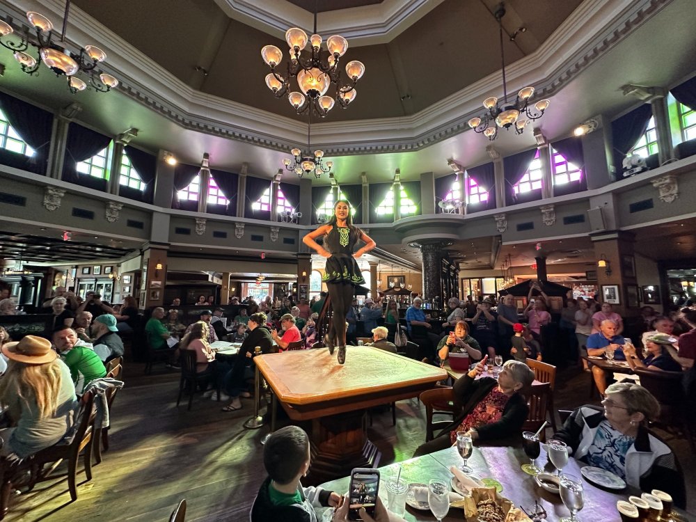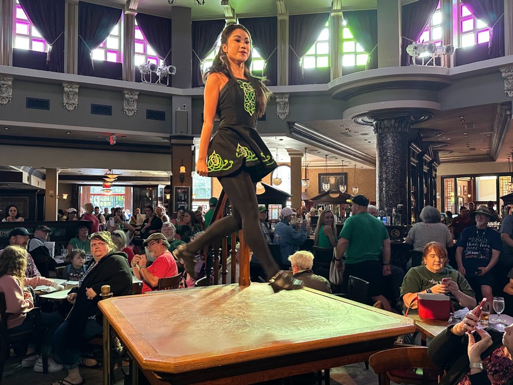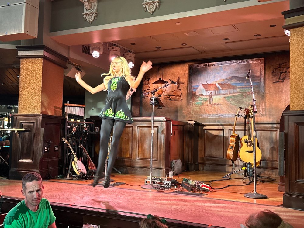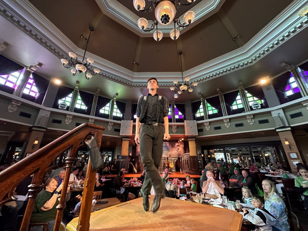 Yesterday Raglan Road hosted TPR and other outlets for a preview of this weekend's Mighty St. Patrick's Festival. This annual festival has been running at Raglan Road Pub for 17 of the 18 years that the Pub has operated at Disney Springs, and each year the offerings expand with new acts and new food and beverage options, all on top of what already makes Raglan Road a special place to visit year round. The Mighty St. Patrick's Festival takes place this year between March 16th and March 19th! One of my favorite places to eat and drink in Orlando! We had an opportunity to sample some Raglan Road favorites as well as new menu items, starting with the Berry UnIrish (a non-alcoholic drink featuring muddled blackberries, fresh lemon juice, rosemary & honey syrup and sparkling lemon Pellegrino) and the Misty Irish Eyed (a mixture of Irish Mist honey, Grace O'Malley gin, Italicus, lemon sour & prosecco). While a normal visit to Raglan Road is filled with entertaining musical and dancing acts, during the Mighty St. Patrick's Festival, the schedule is filled from end to end authentic Irish entertainment! In what I could best compare to a savory cupcake, the Truly Scrumpet Goat Fig features caramelized (torched!) goat's cheese with a fig & port jam on a chive scrumpet with walnuts, pickled beets & poached figs). This was easily the most unique and standout taste of evening! "That Salad with Seared Beef" was a surprising combination of flavors, textures and perfectly prepared ingredients. I'd happily order a plate of this during my next visit! A staple on the Raglan Road menu for many years, the Dalkey Duo is a perfect Dalkey mustard beer battered Cheshire Heritage pork sausage served with Dalkey mustard mayo and buffalo apple sauce. These battered sausages are heavy and filling but the rich batter and unique sausage make them perfectly addicting bites that you'll definitely want to keep digging into. There's lots to see and hear while dining at Raglan Road! The center of the restaurant gives guests an up-close chance to experience all the fun of the pub. The Seafood Sharing Board offers a selection of sesame crusted tuna, smoked fish cakes, "The Pink Panko" (panko crusted seared salmon) and the "Kiss Before Shrimp" (a garlicky-bathed set of shrimp bites with toast). It is always a pleasure to hear from the owners of Raglan Road Pub. The restaurant along with the attached shop, bars and Cookes of Dublin quick service venue are all owned an operated independently of any larger corporation. The venues operate out of scratch kitchens so you know everything is served at its freshest. Much of the staff and entertainers are Irish and the menus offer authentic tastes of Irish heritage with modern flair. Clare Sands (pictured right) is a 6ht generation fiddler, bilingual singer, composer and multi-instrumentalist who is performing daily along with her sister (pictured left) during the Mighty St. Patrick's Festival before moving on to perform in New York, Washington D.C., the United Kingdom and Europe. We capped off our tasting experience with the Guinness Chocolate Cake, made up of dark chocolate, soda bread ice cream and a whiskey caramel sauce. There is no better place to experience authentic Irish step-dancing than at Raglan Road Pub. Defying gravity. Step-dancing isn't reserved to the main stage, with a center stage to put guests in the center of the action. A truly unique experience! Thanks again to Raglan Road for hosting us for another fantastic evening! Be sure to check out the Mighty St. Patrick's Festival this weekend, or if you can't make it before then, don't hesitate to add the Pub to your future Orlando plans--you won't regret it!2 points