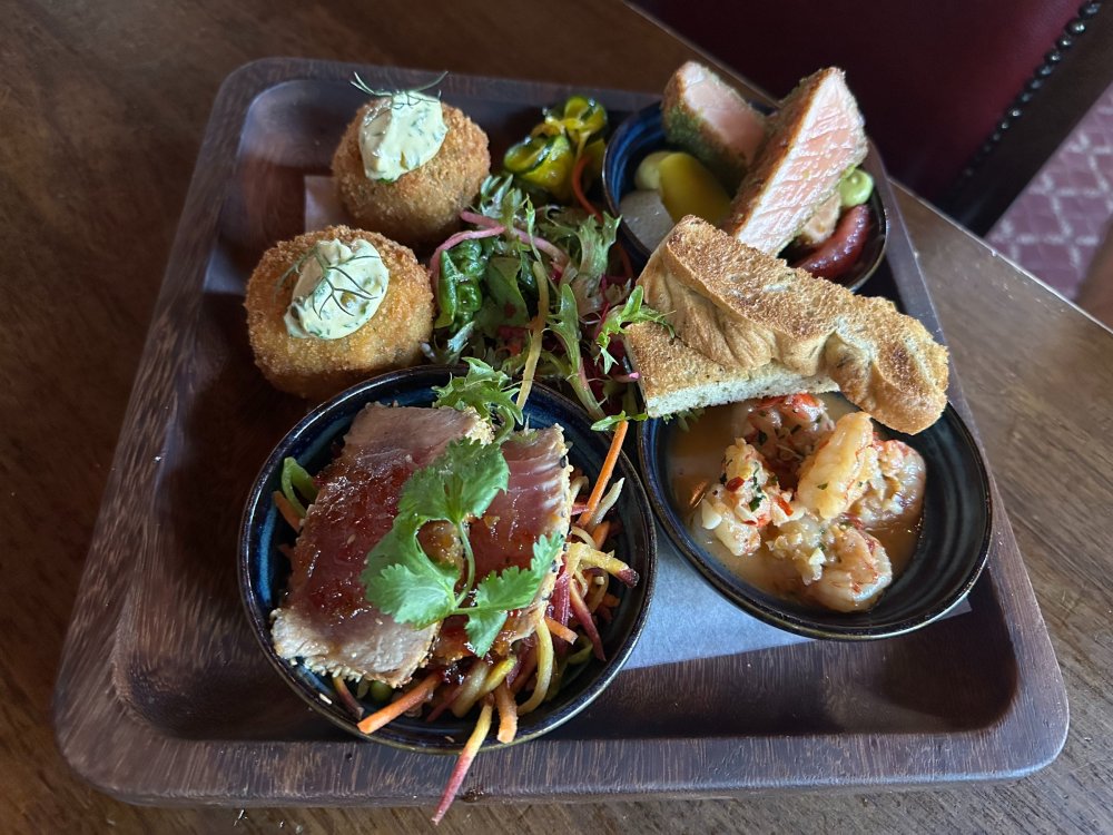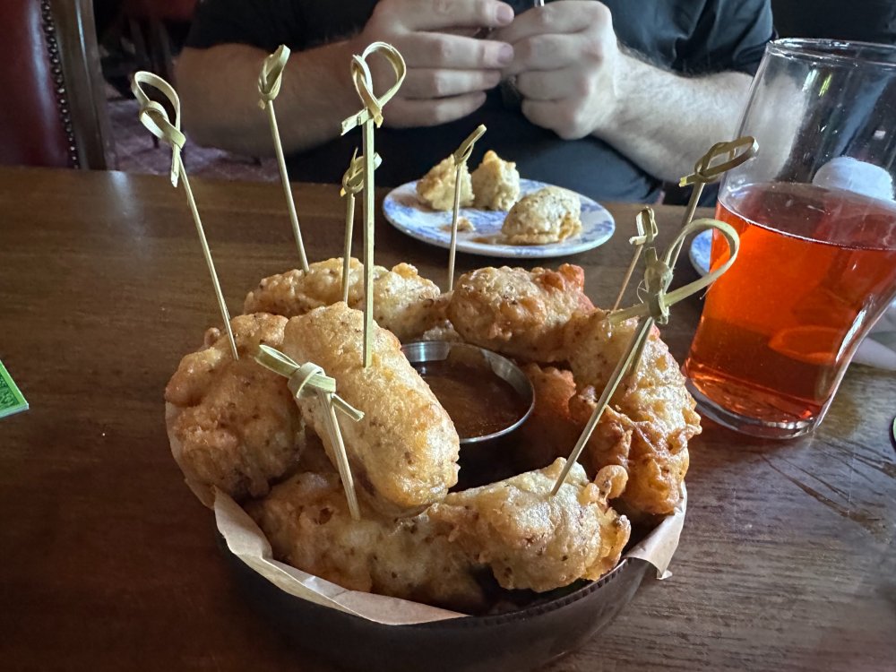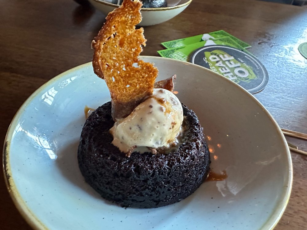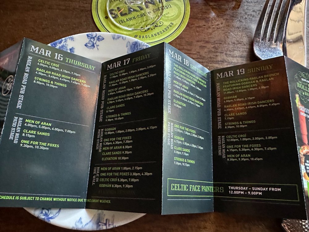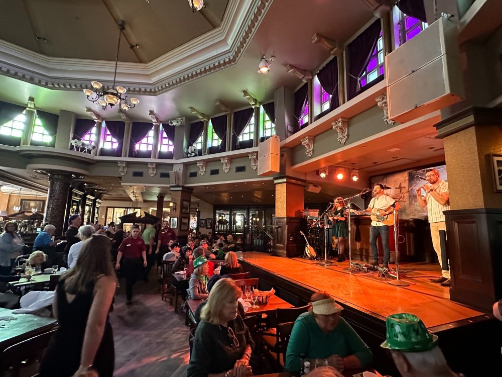 Yesterday Raglan Road hosted TPR and other outlets for a preview of this weekend's Mighty St. Patrick's Festival. This annual festival has been running at Raglan Road Pub for 17 of the 18 years that the Pub has operated at Disney Springs, and each year the offerings expand with new acts and new food and beverage options, all on top of what already makes Raglan Road a special place to visit year round. The Mighty St. Patrick's Festival takes place this year between March 16th and March 19th! One of my favorite places to eat and drink in Orlando! We had an opportunity to sample some Raglan Road favorites as well as new menu items, starting with the Berry UnIrish (a non-alcoholic drink featuring muddled blackberries, fresh lemon juice, rosemary & honey syrup and sparkling lemon Pellegrino) and the Misty Irish Eyed (a mixture of Irish Mist honey, Grace O'Malley gin, Italicus, lemon sour & prosecco). While a normal visit to Raglan Road is filled with entertaining musical and dancing acts, during the Mighty St. Patrick's Festival, the schedule is filled from end to end authentic Irish entertainment! In what I could best compare to a savory cupcake, the Truly Scrumpet Goat Fig features caramelized (torched!) goat's cheese with a fig & port jam on a chive scrumpet with walnuts, pickled beets & poached figs). This was easily the most unique and standout taste of evening! "That Salad with Seared Beef" was a surprising combination of flavors, textures and perfectly prepared ingredients. I'd happily order a plate of this during my next visit! A staple on the Raglan Road menu for many years, the Dalkey Duo is a perfect Dalkey mustard beer battered Cheshire Heritage pork sausage served with Dalkey mustard mayo and buffalo apple sauce. These battered sausages are heavy and filling but the rich batter and unique sausage make them perfectly addicting bites that you'll definitely want to keep digging into. There's lots to see and hear while dining at Raglan Road! The center of the restaurant gives guests an up-close chance to experience all the fun of the pub. The Seafood Sharing Board offers a selection of sesame crusted tuna, smoked fish cakes, "The Pink Panko" (panko crusted seared salmon) and the "Kiss Before Shrimp" (a garlicky-bathed set of shrimp bites with toast). It is always a pleasure to hear from the owners of Raglan Road Pub. The restaurant along with the attached shop, bars and Cookes of Dublin quick service venue are all owned an operated independently of any larger corporation. The venues operate out of scratch kitchens so you know everything is served at its freshest. Much of the staff and entertainers are Irish and the menus offer authentic tastes of Irish heritage with modern flair. Clare Sands (pictured right) is a 6ht generation fiddler, bilingual singer, composer and multi-instrumentalist who is performing daily along with her sister (pictured left) during the Mighty St. Patrick's Festival before moving on to perform in New York, Washington D.C., the United Kingdom and Europe. We capped off our tasting experience with the Guinness Chocolate Cake, made up of dark chocolate, soda bread ice cream and a whiskey caramel sauce. There is no better place to experience authentic Irish step-dancing than at Raglan Road Pub. Defying gravity. Step-dancing isn't reserved to the main stage, with a center stage to put guests in the center of the action. A truly unique experience! Thanks again to Raglan Road for hosting us for another fantastic evening! Be sure to check out the Mighty St. Patrick's Festival this weekend, or if you can't make it before then, don't hesitate to add the Pub to your future Orlando plans--you won't regret it!2 points