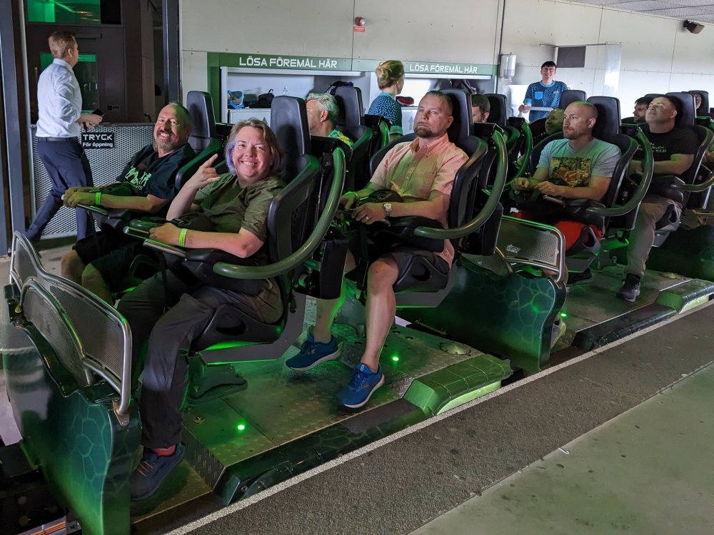Day 13: Thursday, June 15th part 1 - 1st of two full days at Liseberg 1st full day at this bucket-list park for me, and I was super excited. We had gotten to sleep in, as the park didn't open until noon (if I'm recalling correctly), although we were meeting our park guide at the gates at 10:30 for some ERT and other fun stuff this morning. while waiting to meet up with others I was gonna share breakfast with, I went outside and a few steps over to the Hotel Entrance gates of the park. I LOVE peeking into an empty park. . it's so cool. In this pic you can see the Disk-o (themed to Asian stuff. . I didn't ride), the top of Atmosfear, the top of of the "rolling planes" ride, the log flume (straight ahead), and Valkryia on the right (the park's dive coaster) even tho it was still well before park open, the Disk-O had started testing. a peek back at the hotel from the front gate - up those steps was the Carousel (I wasn't allowed to ride) and the breakfast buffet/restaurant. and out towards the street was this great sign, which I had somehow missed the prior night, even tho we clearly walked right by it going to and from the place we got the sandwiches. this MUST be the Brunch buffet options. . as I have this pic of food mixed in, and that's the meal I had this morning. looks good, doesn't it? and then it was time to meet our guide at the gate, Pontus - whom many in the group knew from prior visits. he was a genuinely nice guy and seemed to be thrilled to show the group around, and hang out with Robb the uniquely named "Flume Ride". . . tho actually, it's pretty unique on how it uses the terrain of the park, with multiple lifts and the finale being a drop, followed by a drop, and then another drop. it was really good. we'd come back to this area in a little bit. . but Luna Park is the new section they have re-done to place as the centerpiece a Vekoma family boomerang. this is the "stairs" entrance to climb up to that area. . looking overhead at the parks dive coaster, Valkyria as we headed towards our 1st ride in the park. . . so much twisted track. . . this is where we were headed: Helix! a 7 inversion, launched Mack coaster. but how to get to it?? the track is all over the side of the hilled area, interacting with multiple other rides. . . so we kept walking. . . loved this Bumper Car sign. . absolutely gorgeous park. . you'd really never know that it's in the middle of a city. it truly is pretty immersive once you enter the gates (tho with so many tall rides, you frequently are high enough to see the boarders of the park) on the left is the station for the park's classic Schwarzkopf - and what he considered one of his best designs, Lisebergbanan going towards the bottom of the biggest hill in the park, and behind me is Helix, and that tower is Atmos-Fear - the parks drop tower. and the entrance to the kid's area (and it's a very large kids area, with some fun family rides too). the park's mascots are bunnies (green bunnies). .and there are a LOT of them. I really couldn't keep track of them, and in the dark ride where they are all present? was totally confused as who is who. but - the kids seemed to know exactly who did what, and who the bad guy was. . so maybe I'm just too old to retain that info? LOL. . regardless. . lots of mascots! ah. .the entrance! wait.. for both rides? actually it's an escalator..that gets you up to the level of several rides. and it's a long escalator... and at the top? wait. .this isn't the top. . this is a MID level. . which if you exit and go to the right there are tons of paths and walkways, and if you go to the left, is the newish Luna Park area as well as a terrifyingly placed Screamin Swing (which runs a very short program, but it's on the edge of the hill. . so you are REALLY high up) looking towards the Screamin Swing, and Luna Park area. . but we kept going forward into ANOTHER set of Escalators to get to the top. . I really enjoyed that the park put tons of historic pictures, so one can see the history of the park, and older attractions, as taking the long ride up the hill. and you exit out the top right at Atmos Fear. (apparently there was a shooting ride, Desperados, here as well.. but I never even saw it, and so missed it despite two days in the park!. . .). but we went to the right for the Helix line which , by the way, is INSANE. . . the main line wraps in and out, and around itself. . proudly looking like an MC Escher drawing. tho I did walk the queue once, just to experience it? luckily we had this parks version of flash pass, so we were able to use the quick entrance on many rides how about some pics from our 1st ERT session at Liseberg? think these are mostly courtesy of Elissa Pontus and Robb (and me not realizing a pic was being taken. . LOL) Myself & sMisty in front, and Doug & Hawk behind Jason & Big Mike. . and behind, is Chris, Steve, and Barry Chuck & Jere in front, Jason & Big Mike in back. myself chatting with Pontus during a quick break - this ride is INTENSE, and tho I loved it.. I didn't ride every cycle, taking a 1 train break after every couple of rides. he really is quite nice and I enjoyed talking to him. taking another break. . Jon getting a Zen ride, all alone on the train Daniel and Andy in front row. . . (and Sarah behind them) ' after a good while on Helix, Pontus walked us down the side path over towards Luna Park. . . where they have a Nebulaz but we were here for this. . the park's newest coaster - Luna that white track is part of Luna. . and again, love how hilly this park is, and the attention to detail , with the playground to the right of the queue, made to look like Victorian birdcages. looking at some of Luna's layout.. tho I think SOME of that white track might also be Lisebergbanan - as I mentioned, many of the rides here interact with each other. the Luna Station is beautiful. and the trains are retro-awesome-ness! whee!!! Kristen doesn't look too thrilled with her ride (Neither does Brad, or sMisty), but Jason 