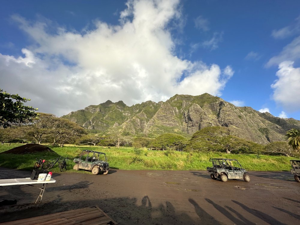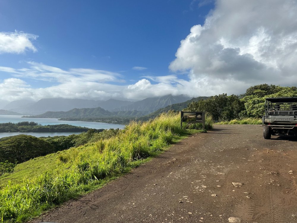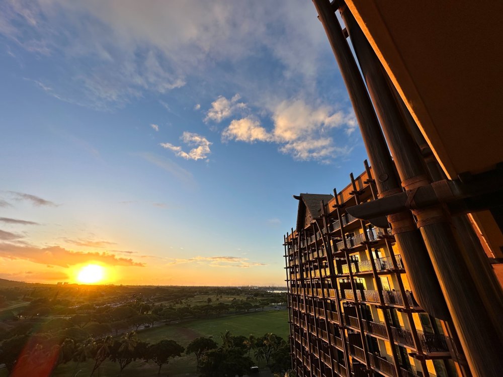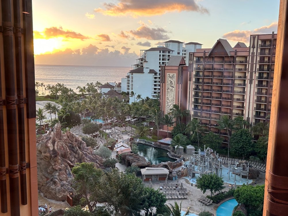 We were up bright and early the next morning to traverse the island, heading first to the Kualoa Ranch. This insanely picturesque, privately owned section of the island is famously favorited as the hottest spot to film movies and shows with tropical, mountainous or forested backgrounds. The ranch's notable filmography includes films from the Jurassic Park/Jurassic World franchise (earning the ranch as second moniker as "Jurassic Valley"), 50 First Dates, George of the Jungle, Kong: Skull Island, LOST and many, many more. The Kualoa Ranch offers a variety of tours and experiences, including a horseback riding experience. While tempting as that was, we were here for something a little more rugged. It is important to note that none of the individual tour options cover ALL that there is to see at the Ranch, so if you're tight on time like we were, you have to choose the one that visits the landmarks and points of interest that matter to you, or plan to experience multiple tour types to maximize your access. Reservations are absolutely recommended and walk-up availability is not guaranteed. Today we'd be piloting UTVs across the grounds of the Kualoa Ranch, the best way to get a sense of adventure off-road while seeing some of the best locations across the property. Kualoa Ranch is expansive and has coastal sections with amazing views as well as inland valleys and forested areas where you couldn't feel farther from the ocean if you tried. Over the years, film/tv production has facilitated the creation of sets that, rather than demolition when production has ended, the Ranch has maintained and reutilized, both for future productions as well as for tours to visit. The money shot. Fans of Jurassic World will recognize this as the station for the Gyrosphere attraction. This bunker was featured in Jurassic World: Fallen Kingdom--a key location on Isla Nublar as the island is being engulfed in lava from the re-awakened volcano. Absolutely unreal. You do get a chance to exit your UTV for several stops along the tour. This was the partially-built Indominous Rex paddock used in the filming of Jurassic World. Movie magic and digital effects completed the rest to make a fully constructed housing for the villainous dinosaur hybrid who wreaked havoc on the film's namesake park. Iconic imagery from Kong: Skull Island can be found along the tour. Seriously stunning. Another bunker along the route... Notice the tour bus to the left and the open air bus to the right of the bunker. Both are different types of tour options to explore Kualoa Ranch. A breathtaking view which also serves as the perfect location for the finale shot of Jurassic World where the hero T-Rex roars over the remains of the park before the film cuts to the credits. We filmed a ton of footage and took so many more photos over the course of our time at Kualoa Ranch but this magical place is best experienced in person and I can't recommend it enough. Next we drove to the North Shore to experience CLIMB Works - Keana Farms for an amazing zip-lining tour across this side of the island. After our ascent to one of the highest points of Keana Farms, we were met with an opportunity to crack open fresh macadamia nuts with rocks by hand and it was all kinds of fun and tasty. The experience includes zip-lines, rope bridges, rappelling and even some climbing along the way. This was a very active (sometimes tiring) course so it is definitely recommended that you come prepared to work for the reward of getting across the course. Keana Farms is an active agricultural farm as well as a wind farm, so you get some really neat views along the way. You get all kinds of neat views along the way! Did I mention that you rappel several times along the way? The experience includes 8 dual lines (which was great for us as a couple being able to zip alongside each other), 2 rappels, 3 sky bridges, a floating staircase, an ATV ride and a few surprises (hope you have core strength in your body!). Proof it was me who endured all of this. The guides are awesome and ensure you have a safe, fun and funny trip along the way... They encouraged us on this one line to try experiencing it upside down, so this was my POV. That's me on the left, just hanging out. I mentioned earlier that LOST was filmed at Kualoa Ranch, and while that is true, the production spanned much of Honolulu (and at times, beyond). One such famous location was the "Others' Camp" which is actually a YMCA on the far end of the island. With permission from the operating staff, you are allowed to visit the grounds to see this notable location. It has been repainted from its recognizable orange color but the Dharma Initiative houses-turned Others' homes-turned Oceanic Flight 815-survivors' homes are still the ones you would have seen on the show. We made the long drive back to Aulani and checked in for our first official night at the resort. In case you're wondering what a room in Aulani looks like, here you go. Such a fun touch! Color me intrigued! After a very active day we decided to take in some stargazing with our outdoor dinner at Makahiki. The restaurant has a beautiful interior that really looks great at night. Some incredibly fresh ahi tuna for dinner. Leave it to Disney to help us celebrate in small but meaningful ways! Roasted Pineapple Cobbler with a Haupia Gelato for the win! And since it was Valentine's Day during our visit we picked up some special macarons from the resort to enjoy! On the walk back to our room we noticed this neat mural. Quite incredible. The next morning we were greeted with a beautiful sunrise over Aulani. And the view from our balcony... We returned to Makahiki that morning for breakfast complete with a serenade... And a first for us--Red Velvet Minnie Waffles (accompanied by more traditional Mickey Waffles)! Punaluu Sweet Bread French Toast was my treat for the morning. Part of the benefit of breakfast at Makahiki is that you get to meet several characters in their Aulani ge