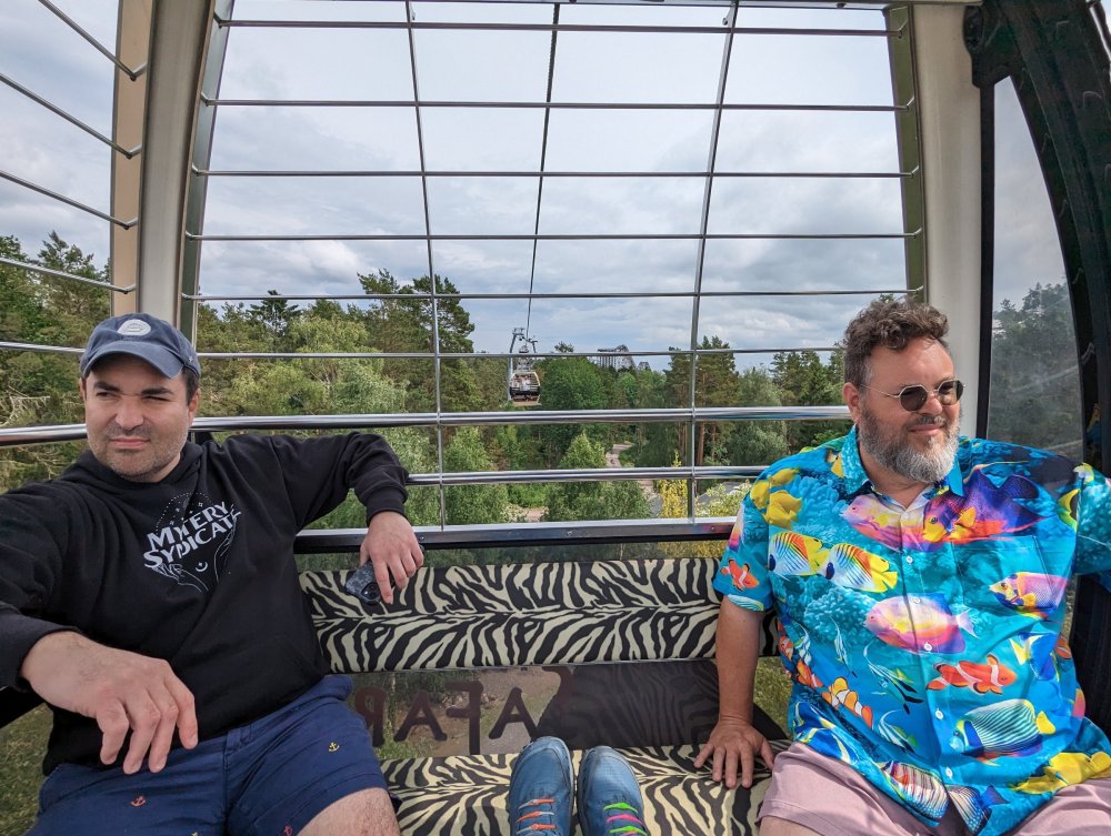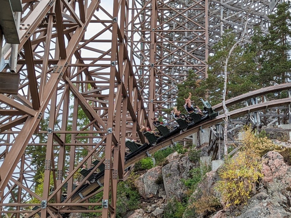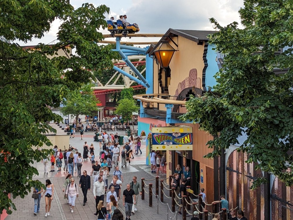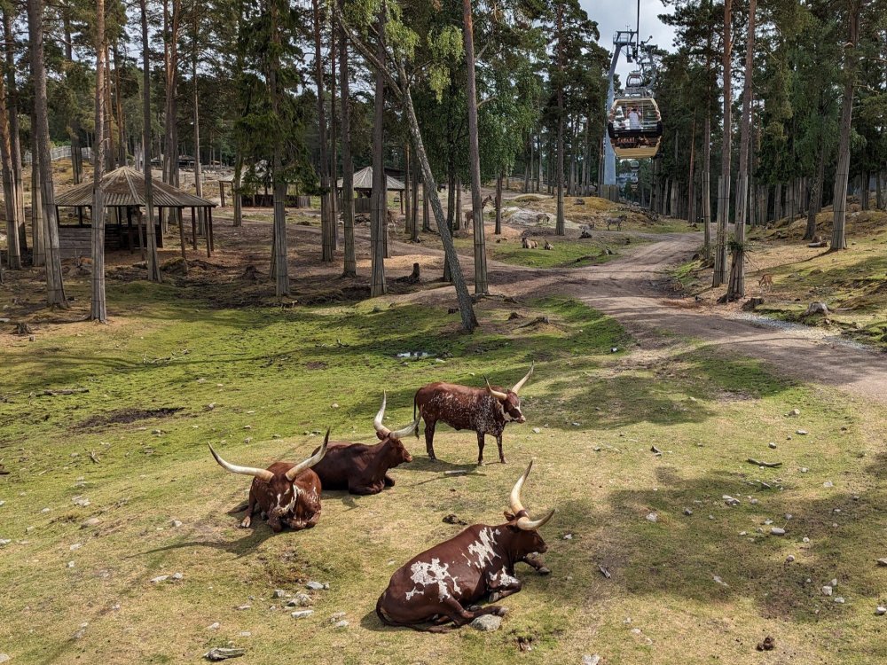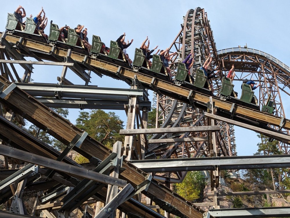 Kolmården Wildlife Park is the second park on the trip that Misty and I had previously visited in 2019. It's quite large, very hilly, and mostly a zoo. But it does have a two big "worth the price of admission" attractions, at least one of which I really like. 19: Another Way to Stimulate Lions The park was considerably less busy than on our previous visit, but nonetheless opened up the back parking lot and gate for our group, so we could start and end near the good stuff. Safari is a 26-and-a-half minute sky ride over large naturalistic animal enclosures that crisscrosses itself several times. For me, this is the highlight of the park, and I rode it 4 or 5 times on this visit. This animal is called a "giraff" in Swedish, which is not as interesting as I thought it would be. How straight men sit together on a bench seat. Björn. Watusi Boskap Älg and bebis älg. Löpeld As the park was not at all busy, Wildfire only ran one train all day, making it quite tricky to get a decent photo of the ride with a train in it from Safari. I do wish the gondola in the lower left was less behind a tree, but at least you can also see what a pretty area Kolmården is. A backstage tour of where the gondolas sleep at night and recharge the batteries on their audio systems. (Onboard narration being available in Swedish, Finnish, and English.) Now on foot, we explore the other animal areas of the park. Where all the cool kids hang out. "Man, screw you guys." Saddest show ever. (But good on them for still doing it, I reckon.) Smisty learning that we cannot, in fact, leave the park to visit the aquarium on the other side of the main parking lot, because Kolmården Wildlife Park does not allow reentry, and you can't even buy tickets or enter within 2 hours of closing time. This was 3 hours before park close, but that would've only given us an hour to cross the parking lot on foot, visit the aquarium, and hoof it back--with failure to reenter Kolmården in time meaning we would have to walk around the park on winding mountain roads (without sidewalks) to get back to the rear parking lot and the bus. Hey guys, whatever your beef with the aquarium is, leave us out of it. The escalator of shame. The park covers 1.5 square kilometers, which is approximately 370 McDonald's parking lots in American. Discovered an area I hadn't seen on the previous trip. Not really sure what it was. Maybe like a summer camp? But this building was open--and having never seen a horror movie, I ventured in. At which point my skin started burning and I had to flee. I'll be safe here in Tiger World! Best photo ever? Two slices of cheese on a basic theme park burger?! Are we in Wisconsin? Well, a lot of Swedes are. Hmmm. Wildfire's cool but weirdly-orientated sign. Where the Wildfire trains sleep at night. Snapped this pic while no one was looking. Now I have the plans and can build my own! I gave it a courtesy ride during ERT. That's 2 rides total now. I guess I like it slightly more this time? Oh, is this a good time to mention that I'm an RMC hater? Hater is probably too strong. To me, they're basically just fast, forceless, family coasters that are hard to breath during due to the restraints. Lots of folks seemed super into it, though. And I'll admit that it's pretty. One more shot of Wildfire for you. For you. Not for me. Erik's Score: 5 Next up: The park Wildfire would be in if there was room for it there.1 point
