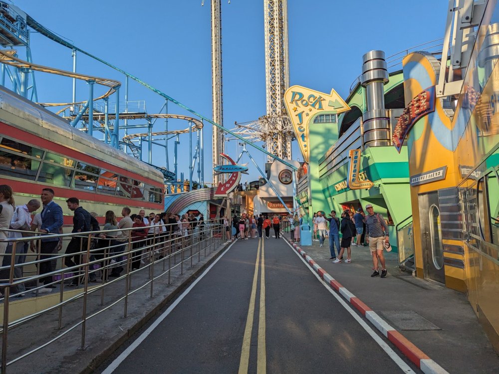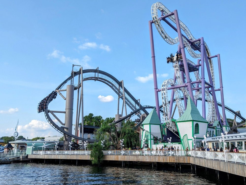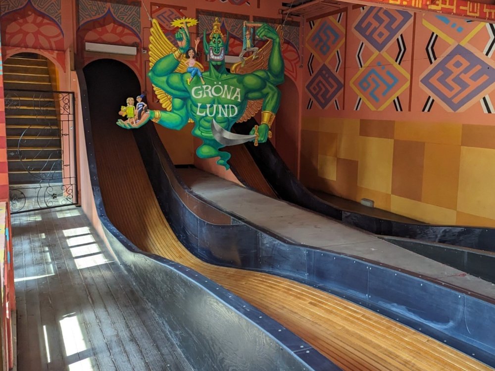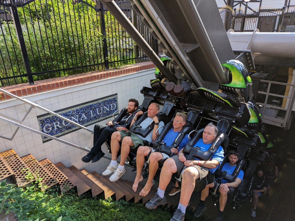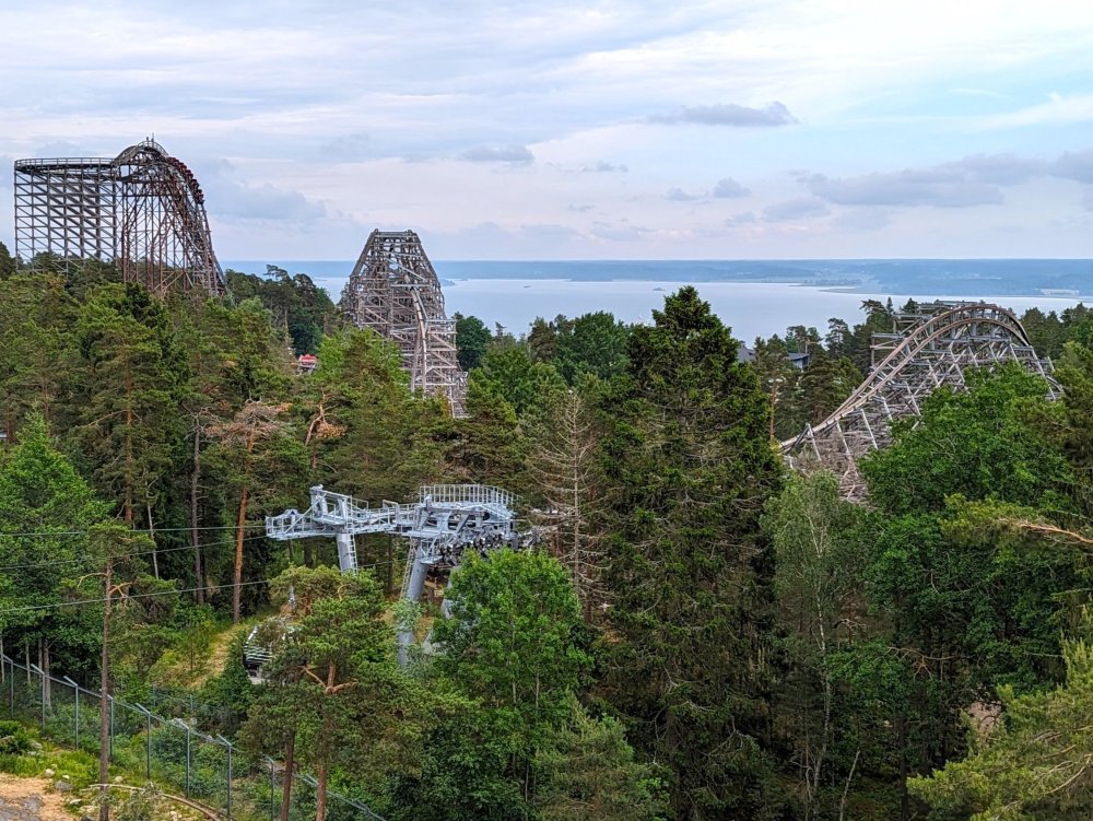 The 2019 trip ended in Stockholm, allowing us to spend a couple of extra days in the city afterward, and I absolutely fell in love with the place. Not a ton of extra time to explore this time around, but at least we got to go back to my all-time second favorite park, Gröna Lund. 20: Blue Train The main entrance (I guess). This one takes you into the smaller, more kid-oriented section of the park. The other main entrance. Just over a bit. But we don't want to go in here! No, no, no. I don't think I rode Tuff-Tuff Tåget on the previous trip. Which I shouldn't have mentioned to Goldballs, because he then insisted that we ride it. So now I have that credit. Yay. I thought Tivoli Gardens was the first time I'd seen a carousel with a ladder up to an animal, but now I'm questioning everything. Note the sign in the back left for "Pettson Findus Varld." I missed this last time. (I think it opens late and closes early.) Sebastian here was quite happy to see me visiting his little corner of the park. I don't think they let him out much. It's a walk-through farmhouse from a series of Swedish children's books about Pettson the farmer and his cat, Findus. I imagine that a lot of the fun comes from finding things you recognize from the books, all of which was lost on me. But it was weird, so I still liked it (in sort of a minor way). This section of the park is very nice, but everything you actually care about is on the other side. So, yes, I've been wasting your time. The covered bridge over an access road that connects to the main area of the park. Why, hello! Who's your new friend? Was that creepy? I was going for creepy. Vilda Musen is an excellent "Wild Mouse." And the quotes are entirely called for, because it's only really a wild mouse in much the same way that bats are really birds. I can say whatever I want in these updates. No one really reads them or wants to argue anymore. I did not participate in the water cup challenge. Though I did participate in getting wet from other people participating in the water cup challenge. As I recall, Ryan did excellently well. At least until one second after I distracted him with this photo when he hit the station brakes and lost most of what was in his cup. Vilda Musen is probably my favorite coaster at Gröna Lund and also exits into a candy store, which is a weird coincidence. House of Nightmares is a Sally walk-through haunted house, which doesn't even seem like it would be a thing, but it is and it's fun. I think it's also an upcharge...? Honestly, and perhaps unwisely, money is the first thing I stop paying attention to on these trips, so who knows. God, I have to walk through this thing? With my feet?! How about you put in a little cart to carry me around? That would really save you some money on painted arrows. Inspired by the murder house, I requested something sharp. It's one of the more subtle cultural things, but they don't cut your pizza for you in Scandinavia. You have to do it yourself, like a peasant. Actually, come to think of it, they don't cut your pizza for you in the US either. They just make little lines on it as though they've cut it, and then don't give you anything sharp. This coaster is called, "Kvasten," which means "Broom." I assume as in, "Witch's Broom," but I kind of like the idea that it could just as easily have been called "Bucket" or something. Blå Tåget is amazing and basically the only thing Goldballs and I talk about no matter where we are or what we're doing. The name translates literally to "Blue Train," but is culturally more like "Crazy Train," because the blue line went to the insane asylum or something? We rode Blue Train multiple times, of course. But on one of our rides, right at the beginning, it broke down. Possibly because of us, and possibly because we're fat. But whatever. The maintenance guy came out, messed around with our lapbar, and then the ride started up again. Except the lights stayed on the whole ride. Which might've been bad if this had been our first or only ride. But was amazing as it was. So enjoy a couple of 'lights on' photos of Blå Tåget. Um, on second thought. One of the great things about Gröna Lund is how rides are built over and through one another. Twister, their weird little wooden coaster, was down for an extended refurb. But that's okay, we rode it last time. Unlike Smisty, I can take or leave spinning. But this is a Schwarzkopf, so I'm in. And also, it's adorable. Just look at it! Gröna Lund is also a seaside park, because why give other parks a chance? I'm not sure why this particular pathway is super Art Deco--but I like it, obviously. I also like Jetline quite a bit, which had been the park's signature coaster until Monster opened. This is my jam. This is not my jam. But Smisty and Goldballs seem to be "enjoying" it. No, wait, this is my jam. Gröna Lund has the best fun house I've ever been in. But maybe there's a better one somewhere. Quick, somebody tell me where it is so I can plan a trip there. Not so much a slide as a conveyor belt. And also weird stairs. A view of one of Monster's beefy supports from the fun house. Elissa, you know you can ask for your own boat, right? I mean, they gave Misty one. So they clearly have a "weird husband" exception, if nothing else. This husband is so weird they don't even require his wife to be in the same country. I was really trying to tie that in to the previous caption--and, you know, make a whole thing out of this Tunnel of Love attraction--but I can admit when it's just not working. Not that I'm going to change it, mind you. Insane, Monster. Monster, Insane. Sorry, ahem, "Insane!" Wait, how did we get in this coaster's maintenance bay? That's Insane! Apologies to everyone on this train who clearly didn't realize that I was taking a photo. Yes, it's Monster, emerging from its underground station. The very same underground station we toured the construction of back in 2019! And this thing is great. The station, I mean. But also th