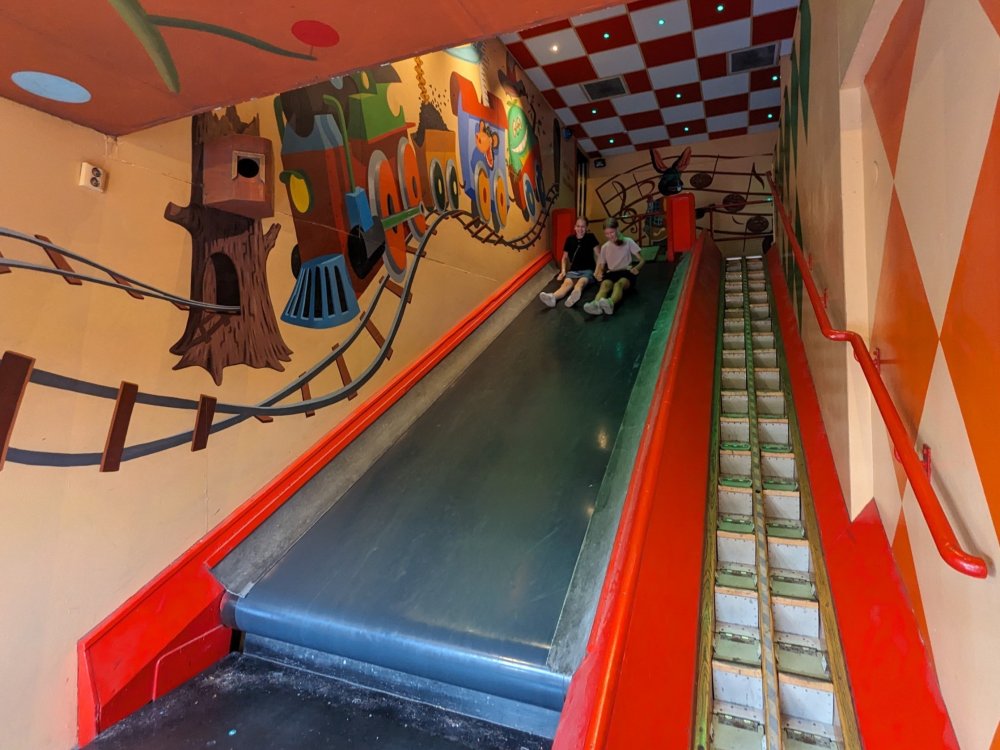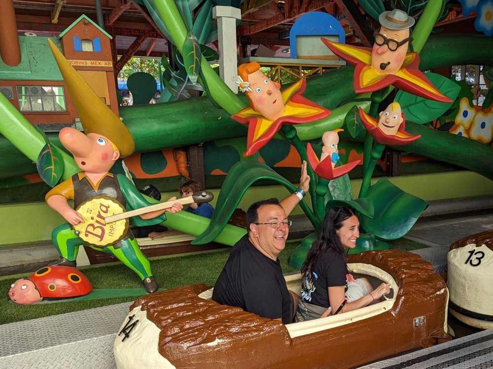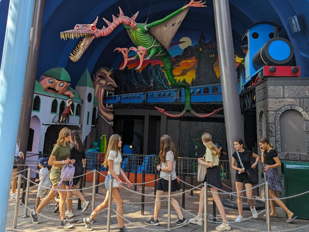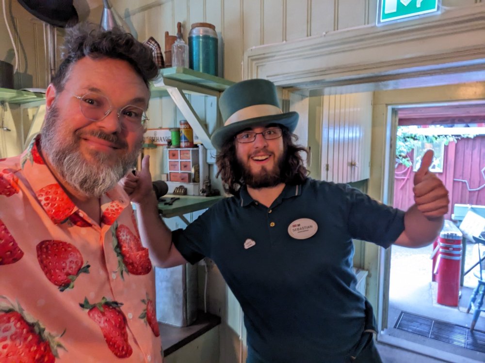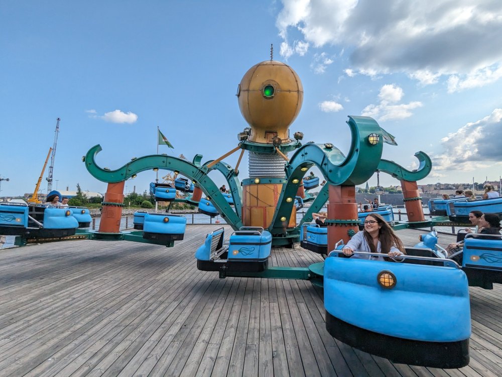 The 2019 trip ended in Stockholm, allowing us to spend a couple of extra days in the city afterward, and I absolutely fell in love with the place. Not a ton of extra time to explore this time around, but at least we got to go back to my all-time second favorite park, Gröna Lund. 20: Blue Train The main entrance (I guess). This one takes you into the smaller, more kid-oriented section of the park. The other main entrance. Just over a bit. But we don't want to go in here! No, no, no. I don't think I rode Tuff-Tuff Tåget on the previous trip. Which I shouldn't have mentioned to Goldballs, because he then insisted that we ride it. So now I have that credit. Yay. I thought Tivoli Gardens was the first time I'd seen a carousel with a ladder up to an animal, but now I'm questioning everything. Note the sign in the back left for "Pettson Findus Varld." I missed this last time. (I think it opens late and closes early.) Sebastian here was quite happy to see me visiting his little corner of the park. I don't think they let him out much. It's a walk-through farmhouse from a series of Swedish children's books about Pettson the farmer and his cat, Findus. I imagine that a lot of the fun comes from finding things you recognize from the books, all of which was lost on me. But it was weird, so I still liked it (in sort of a minor way). This section of the park is very nice, but everything you actually care about is on the other side. So, yes, I've been wasting your time. The covered bridge over an access road that connects to the main area of the park. Why, hello! Who's your new friend? Was that creepy? I was going for creepy. Vilda Musen is an excellent "Wild Mouse." And the quotes are entirely called for, because it's only really a wild mouse in much the same way that bats are really birds. I can say whatever I want in these updates. No one really reads them or wants to argue anymore. I did not participate in the water cup challenge. Though I did participate in getting wet from other people participating in the water cup challenge. As I recall, Ryan did excellently well. At least until one second after I distracted him with this photo when he hit the station brakes and lost most of what was in his cup. Vilda Musen is probably my favorite coaster at Gröna Lund and also exits into a candy store, which is a weird coincidence. House of Nightmares is a Sally walk-through haunted house, which doesn't even seem like it would be a thing, but it is and it's fun. I think it's also an upcharge...? Honestly, and perhaps unwisely, money is the first thing I stop paying attention to on these trips, so who knows. God, I have to walk through this thing? With my feet?! How about you put in a little cart to carry me around? That would really save you some money on painted arrows. Inspired by the murder house, I requested something sharp. It's one of the more subtle cultural things, but they don't cut your pizza for you in Scandinavia. You have to do it yourself, like a peasant. Actually, come to think of it, they don't cut your pizza for you in the US either. They just make little lines on it as though they've cut it, and then don't give you anything sharp. This coaster is called, "Kvasten," which means "Broom." I assume as in, "Witch's Broom," but I kind of like the idea that it could just as easily have been called "Bucket" or something. Blå Tåget is amazing and basically the only thing Goldballs and I talk about no matter where we are or what we're doing. The name translates literally to "Blue Train," but is culturally more like "Crazy Train," because the blue line went to the insane asylum or something? We rode Blue Train multiple times, of course. But on one of our rides, right at the beginning, it broke down. Possibly because of us, and possibly because we're fat. But whatever. The maintenance guy came out, messed around with our lapbar, and then the ride started up again. Except the lights stayed on the whole ride. Which might've been bad if this had been our first or only ride. But was amazing as it was. So enjoy a couple of 'lights on' photos of Blå Tåget. Um, on second thought. One of the great things about Gröna Lund is how rides are built over and through one another. Twister, their weird little wooden coaster, was down for an extended refurb. But that's okay, we rode it last time. Unlike Smisty, I can take or leave spinning. But this is a Schwarzkopf, so I'm in. And also, it's adorable. Just look at it! Gröna Lund is also a seaside park, because why give other parks a chance? I'm not sure why this particular pathway is super Art Deco--but I like it, obviously. I also like Jetline quite a bit, which had been the park's signature coaster until Monster opened. This is my jam. This is not my jam. But Smisty and Goldballs seem to be "enjoying" it. No, wait, this is my jam. Gröna Lund has the best fun house I've ever been in. But maybe there's a better one somewhere. Quick, somebody tell me where it is so I can plan a trip there. Not so much a slide as a conveyor belt. And also weird stairs. A view of one of Monster's beefy supports from the fun house. Elissa, you know you can ask for your own boat, right? I mean, they gave Misty one. So they clearly have a "weird husband" exception, if nothing else. This husband is so weird they don't even require his wife to be in the same country. I was really trying to tie that in to the previous caption--and, you know, make a whole thing out of this Tunnel of Love attraction--but I can admit when it's just not working. Not that I'm going to change it, mind you. Insane, Monster. Monster, Insane. Sorry, ahem, "Insane!" Wait, how did we get in this coaster's maintenance bay? That's Insane! Apologies to everyone on this train who clearly didn't realize that I was taking a photo. Yes, it's Monster, emerging from its underground station. The very same underground station we toured the construction of back in 2019! And this thing is great. The station, I mean. But also th