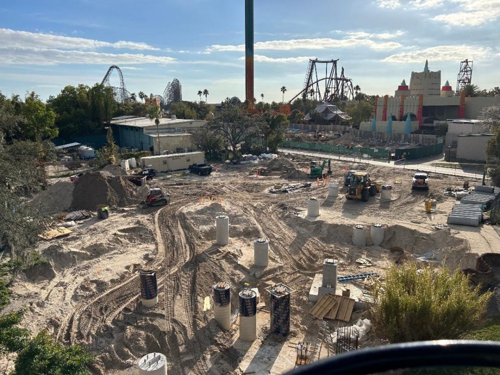 Phoenix Rising construction update taken from the Sky Ride today. Friday seems like the best day of the week to visit the park this time of year. Crowds were low but they were running more trains compared to a Monday - Thursday. Most days this week Sheikra had up to a 30 minute wait with 1 train running. Today with 2 trains running, it was a complete walk on. I saw Cheetah Hunt was running 3 trains instead of the usual 2 on weekdays as well. There weren't too many people waiting for the Sky Ride but in a small sample size, it appeared almost everyone getting in line to ride was a pass holder. I rode twice and I only saw people pay to ride once. I'm glad to have the ride back open because when there is no line it saves some time.1 point
