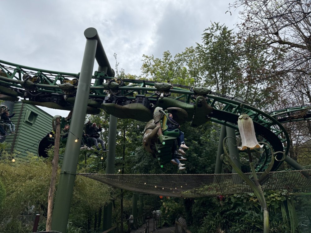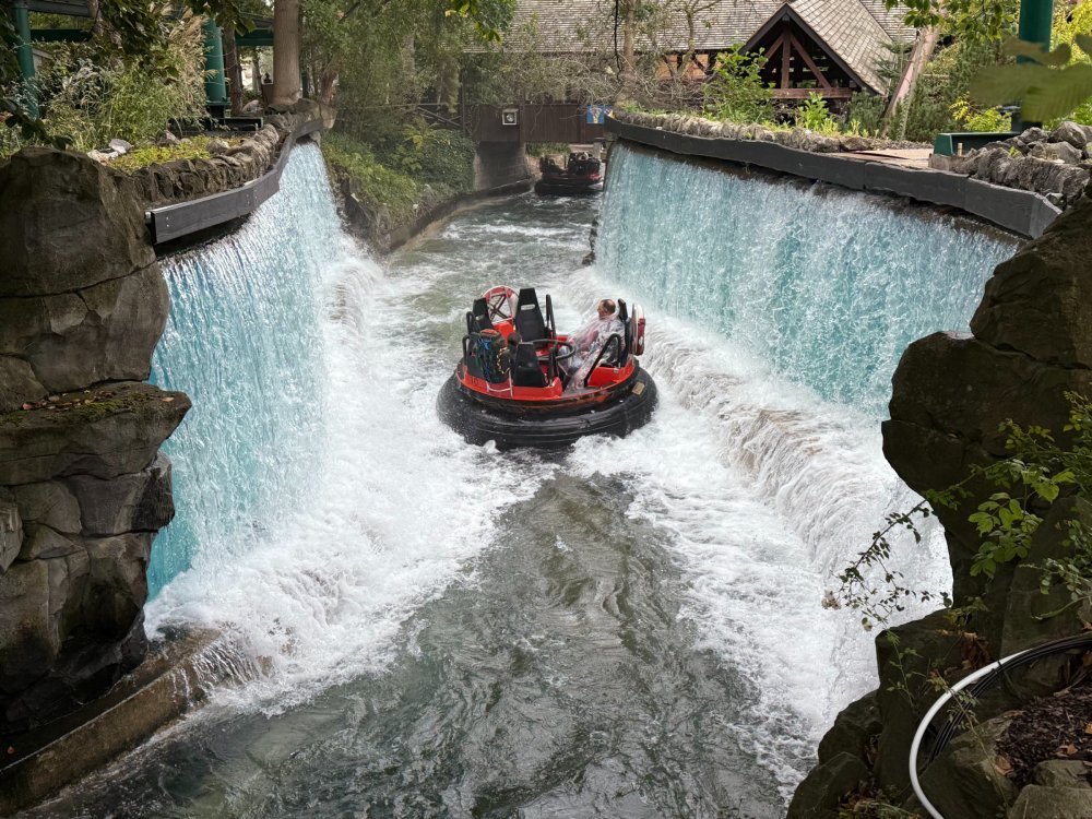 After our brief but wonderful taste of Europa Park the prior evening, it was hard to sleep knowing that we'd have two full days to enjoy the resort ahead of us. I managed to grab what rest I could, eagerly awaiting the morning's exclusive ride time. We started with Blue Fire, another of the park's coasters that I had long anticipated getting the chance to ride. This is one sleek train! ERT earned many thumbs up! As soon as ERT was over, Robb and I rushed over to The Can-Can Coaster (Eurosat), not for the traditional ride experience, but for the newly-opened The Phantom of the Opera Coastiality VR experience. Replacing the previous Valerian VR experience that debuted with the rebuilt Eurosat, this new experience leans heavily into the fandom surrounding Andrew Lloyd Webber's classic musical. The queue is filled with props from the show... The queue also serves as pre-show experience before the VR elements begin, setting the stage for your visit to L'Opera Populaire in Paris. Fans of Andrew Lloyd Webber can find in-universe nods to some of his other works. I'll be absolutely honest. I'm not a huge fan of VR experiences on coasters. But I am a huge fan of Phantom of the Opera--I've seen the show seven times in my life, the movie countless times and I've listened to the soundtrack far too many times to count. For this reason, I wasn't going to be to visit Europa Park without seeing how such a beloved (albeit likely incompatible) IP could translate to a theme park ride experience. Unlike other VR experiences I've been on, this one had you put on the headset while standing in a room away from the loading platform. From here the pre-show experience begins in Box 5 of the Paris Opera House, the Phantom's preferred booth. Surprisingly, the booth lowers from the theater down into the catacombs below to reveal the Phantom's lair. Standing alongside others who are also wearing the VR headsets (you and others around you are represented as period-appropriate avatars, mine an older woman in a purple dress and Robb's a man with a monocle, a black top hat and a grey mustache) you are guided by another avatar through the catacombs to a convenient train of gondolas. What you don't realize is that from behind the VR helmets, you are walking to the Eurosat trains. And through the VR experience you are actually expected to walk to and get into your seats. If the VR isn't spot on (whether because of the headset placement or how it has sync'd up), then your results on getting in safely may vary... But I absolutely give them credit for such a ballsy approach. Once seated, your gondolas take off and begin on a journey that summarizes the key points of the musical's story in a compressed format. Logic, science and physics cease to matter as, once you ascend Eurosat's lift hill, your point of view shifts from the turning gondolas to a glowing orb that floats and flies through the story's scenes. The ride kicks off strong with the Phantom bringing down the chandelier to the famous tones of the show's main overture, and as the chandelier collides with the stage, you go crashing through it, down and into the catacombs. Flying through the layout of the physical coaster, you inexplicably weave in and out of the Paris Opera as it crumbles and burns, pausing near the end for Raoul and Christine to kiss in front of its burning remains, before returning inside to revisit the Phantom's lair, where he appears briefly and disappears in a gag that mirrors a final moment from the show, All in all, it was an interesting way to translate the show to a ride. The VR graphics aren't quite there yet and the syncing with the coaster's movement never really felt perfectly aligned--both reasons why I was in love with the end result, but as a Phantom fan, I'm grateful that Europa Park was gutsy enough to choose such a property for this experience. Now time for another hotly anticipated experience! Due to our visit taking place near Halloween, the coaster's signature music had been replaced with a special track for the season. "It's Halloween" plays on repeat throughout the queue and inside of the ride itself during this overlay. And I guess it is because I didn't know what I was missing--I thought it worked really well. Euro-Mir was a really fun ride (with a somewhat wild finale) and the randomized rotations made it very re-rideable. You know we had to come back for more Voltron! I love that the Croatia section of the park features three animatronics of Nikola Tesla (one in the queue, one at the start of the coaster and one in an outdoor area in the land). I strongly considered buying this Coaster Dynamix Nanocoaster but I haven't finished assembling several of the ones I already own. Silver Star stands in the foggy distance... Madame Freudenreich Curiosités was a very cute way to repurpose the "Universe of Energy" dinosaurs for a more unique (and less knock-off-ish) experience. The ride has a cute story. Familiar but different. There are lots of dinosaurs to be found in the ride. Not our dino, TPR has a bobsled team! Long had I waited for this moment! And Schweizer Bobbahn did not disappoint! The Swiss section of the park is charming and narrow... But most importantly... It is home to raclette! TPR takeover of the raclette hut! The park has so many beautiful areas to enjoy. I love the faux bateaux mouche so much! Europa Park had already been a delicious and refreshing experience so far! Time for more cute dark rides! Adorable. How does one follow up such cuteness? With coasters, of course! It was nice to just hang out for a bit. Of all of the rides inspired by Disney's Haunted Mansion that we experience on this trip, Castello dei Medici was certainly one of them. There's definitely key differences here. But there are also far more blatantly derivative sections. Familiar but different. There's even a hitchhiking ghost-equivalent finale. Though I have no affinity for the IP, "ARTHUR - In the Minimoys Kingdom" is a pretty neat mini land. T