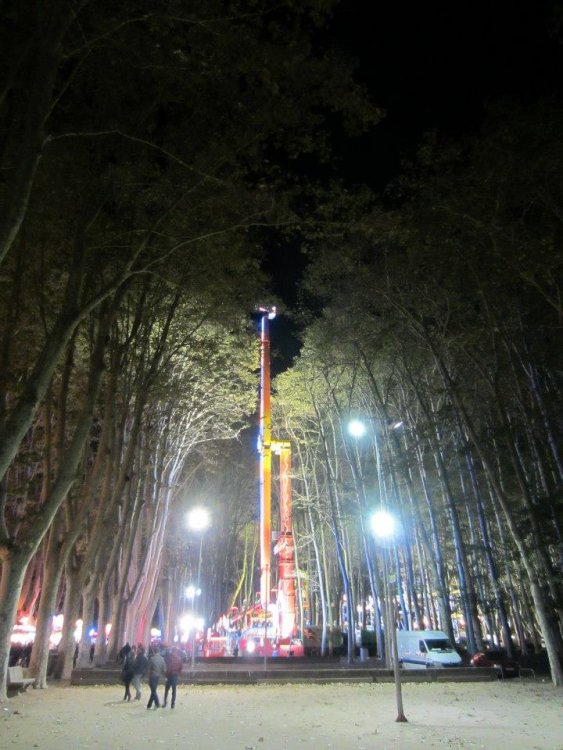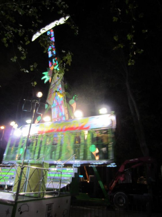 Well, I just came from the fair now, and I post you my review! Today is a very, very cold day here in Girona, but that is no problem to the lots of massive crowds that were visiting it! I will make the review a little different from the last year one, because most of the rides are the same, so I will focus on "other things".... I've to advice you that this fair is full of repeated rides and unlicensed characters! First of all, this fair is located in the Devesa park, in Girona (Catalonia, Spain) [100km form Barcelona]. Is a huge green park full of trees, than are more than 40 meters tall! The fair is divided in the adults area and the children area. You'll see it in detail in the review. In the park is also located the concerts area with lots of little bars of differents associations of the city, where you can eat or drink. You can see the park here: http://maps.google.es/maps?q=devesa+girona&ll=41.98787,2.819806&spn=0.003434,0.004823&fb=1&gl=es&hq=devesa&hnear=0x12bae6959d1e974d:0x400fae021a469c0,Girona,+Catalunya&cid=0,0,11076313206587311749&t=h&z=18&iwloc=A The stage All the area next to the stage is full of little bars. You can see the Girona's Cathedral in the back The concerts area. You can see the bars all over the place. This area is really FULL of people late at night... if I took the same pick you won't be able to see the floor!! I see something between the trees.... All the fair area is also full of little food parades. In this case, you can see "Castanyes", a typical spanish food in this time Lots and lots of crowds today! We go to the child area and this is our first ride... ok, I've counted 3 of this ride in the children area, spaced every 50 meters... sweets!! More spanish typical food Mini frog hopper Mini Ferrys Wheel Bumper cars nº1 Bumper cars nº2 (yes, this ride was 20 meters away from the last bumper cars) Oh! A Disney train coaster.... let's look in detail... UNLICENSED MICKEY MOUSE TRAIN COASTER Nº1!!! Fun House nº1 THE UNLICENSED MICKEY MOUSE TRAIN COASTER Nº2!!!! 100% made in Spain Lots of lights in the unlicensed Mickey Mouse train coaster nº2! Fun House nº2 Bumper cars nº3.... A 3D Halloween dark ride!! People from Inside Circuit Cars nº1... THE UNLICENSED SPRITE RIDE!!! Of course the name of the ride was "SPRIT" Inside the bottle has a soft surface that goes round and makes the children happy! Family roller coaster Bumper cars nº4... (relax... there are lots more to come lol) Children cars nº2 Circuit cars nº2 Mini rodeo ride! Notice the lady in black was doing a choreography and all the children did the same, the fact was trying not to fall off the buffalo! UNLICENSED SIMPSONS FLAT RIDE!!! Ponny Ride..... Ok! So now let's take a look to the adult area, where the amazing ride are! First stop.... BOOSTER XXL! THROUGHT THE TREESSS!!! a Fabbri demon ride! Pics doesn't make justice.... it's freaking amazing to see this huge ride going very fast throught the trees! At the top you can see all the Devesa park from above and a very nice views from Girona! Riders about to have fun! Booster working It's one of the most spectacular location for this ride! Inverted frog hopper nº1 I can see some coasters in the back... let's see Spinning coaster! Wild mouse With a surprise section! The cat is EATING YOU!! Lift hill erotic shot Lift hill porn shot! Some other rides for children... Inverted coaster! This is an inverted wild mouse with a splash section! Each train has a button, and you can choose if you want to get a pneumonia or just a cold.... Splash section!! Rodeo family ride! Fun House nº3 Some other children rides... Bumper cars nº5!!!! Lots of crowds The cold weather was not a problem for anybody! I don't know the name of this ride, but anyway that was the number 1. I don't understand why they put repeated rides on the same fair!! Buffalo ride for adults This ride always have the same typical music that goes to the beat of the ride. I don't know if this only happens in Spain lol More buffalo fun! Frog hopper nº3 Terror walk throught! And now, everybody... the ride you've been waiting for.... the hightlight of the fair.... THE UNLICENSED TOWER OF TERROR FAIR VERSION!!!! Once you step into the elevator, you put this 3D glasses on. And when the doors close... the elevator starts to go up! .... to the first floor, where a 3D film is projected. I've not still been on the ride so I can't tell you what is about. Do yo imagine a knock off from the really Tower of Terror preshow or something like that? jaja Then, the elevator rises to the top of the tower, where is a window (without doors...). People can see the outside before dropping down!! Here you see the elevator at the top! It's a 24 meters tall structure! The doors closed from the station, waiting for the elevator to drop If we move to the side.... we can see the laundry service of the hotel! lol More rides! This one is Alcatraz, a "rainbow" jail that goes up and down very fast! The huuuge ferrys wheel!!! It's really impressive! And the LED lighting is really amazing! Here is a flat ride.... inversion here's a coaster! With electric tires in each train it goes up and the it goes down! blurry... brakes nerd shot The last curve Here's another flat... Terror dark ride nº2 Evil gorila! The ride that I don't remember the name nº2!! This is veeeery typical spanish! Inverted frog hopper nº2!! Top Scan! Flat ride that everything goes round... Where all other years was located the huge ferrys wheel,, this year we find this family coaster. It's family coaster nº2! Frog hopper nº5!!! loots of crowds whip ride Are you hungry? Paella!! Lots of food in here Fun house nº.... well, I don't remember! Here's a view with the top scan in the back Well.... that's the end of the review... but finally.... THE UNLICENSED PLUTO BALLOON SELLER!!! -