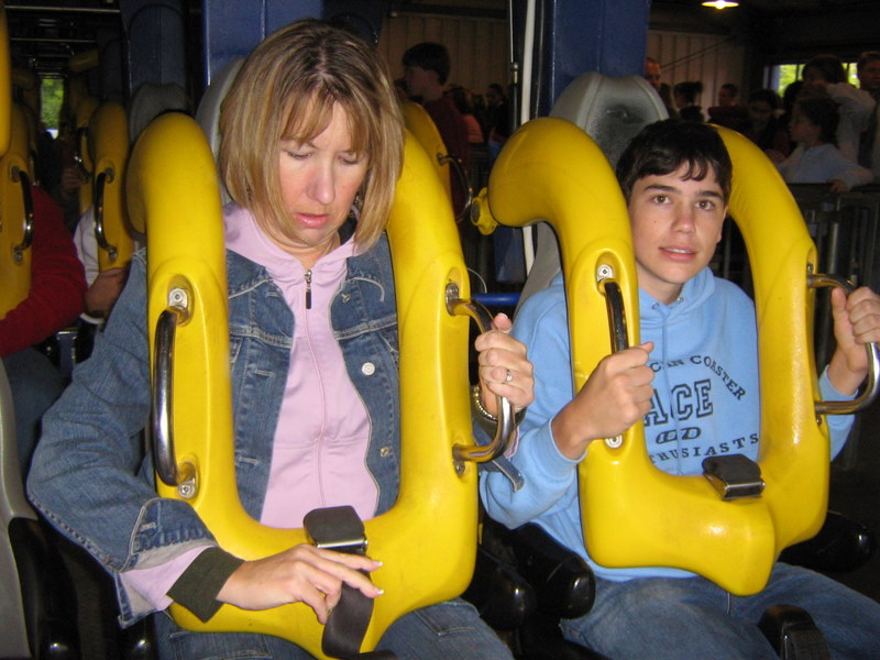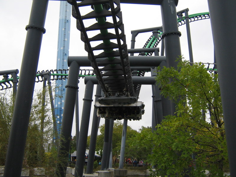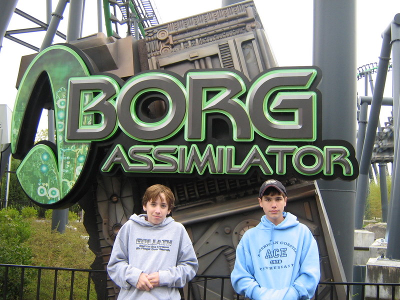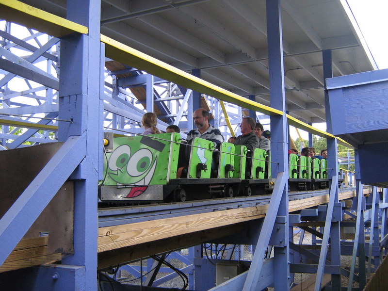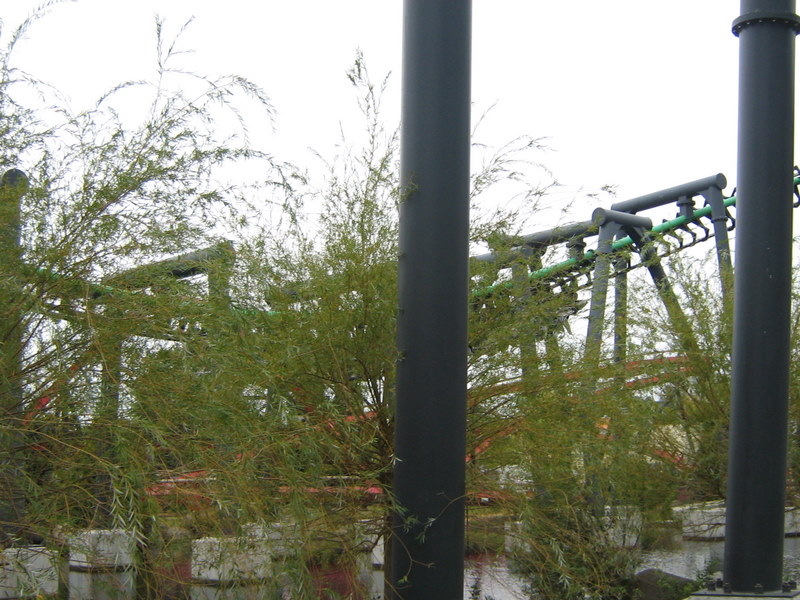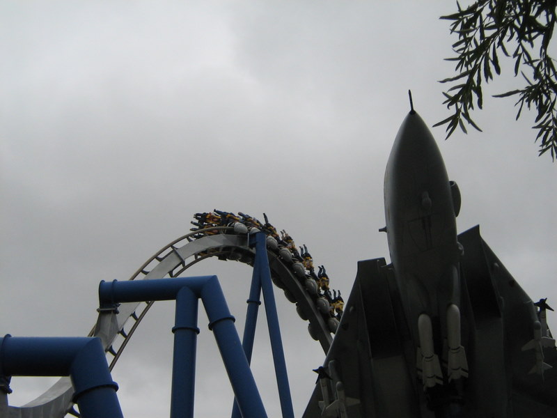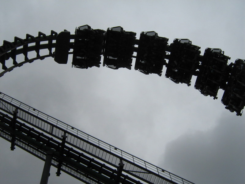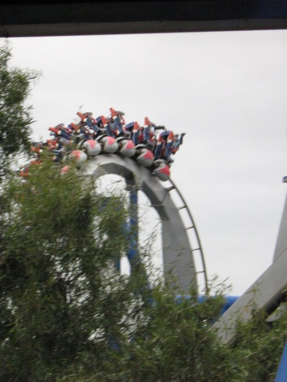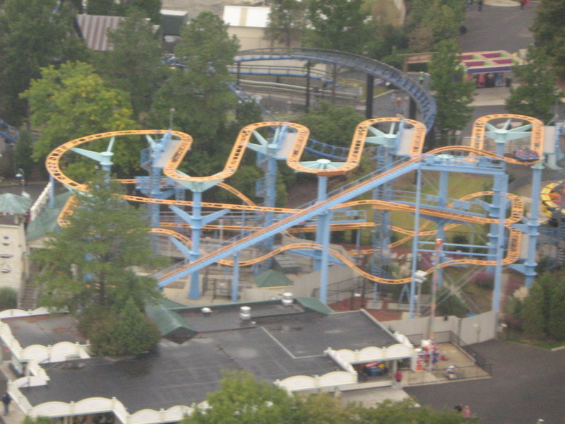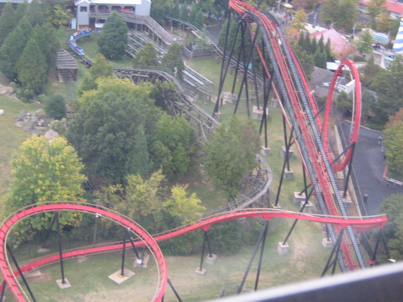 I just got back from my very first trip to the carowinds. We left on friday afternoon and got back Sunday afternoon. I spent all day saturday at the park and stayed for a night of Scarowinds. The drive there from Atlanta was horrible. The rushhour traffic at four o'clock on friday was terrible. It took us two and a half hours just to go 60 miles. After we got out of the traffic it was smooth sailing. We got there at about 10:30, which ruined our plans of going to Scarowinds that night since we would only have about an hour once we got there, so we just checked into our hotel and got some sleep. We got up bright and early the next day and got there for opening. We were the first ones to BORG, and got the front row. BORG is a great ride. It totally beats SUF in all departments, accept mabey comfort going up the lift and sitting on the brakes. After BORG, we headed to Top Gun and were happy to find an empty station. We rode it four times, one of which was in the front. Top Gun is a great invert. It is my second favorite, just behind Montu. The first drop it the most fun drop I have ever experienced on a B&M. It is twisting, forceful, and fast. All of the elements are great, especially the first immelman, which provides some nice hangtime. Top Gun places just at number nine of my favorite steel coasters. Next we headed to thunder road to hopefully get our two credits. We were very saddened to find that backwards was closed. No racing woodie credit for us. We settled for forwards, and were fairly disapointed. It was lacking airtime and the thrill factor. Next we headed to the flyers, which already had a fairly long line. We waited for about four cycles and got on. Right away I could tell these were much better than Holiday Worlds flyers. These were only the second flyers I had been on, so I had never gotten them to snap before. By the end of the cycle I was coming close, and I think I got it once, and I kind of freaked out, so I lost all of my momentum. I couldn't get it going again after that. Next we headed to the Rocket Power falling star. I didn't experience the airtime that I heard came with the falling star, so I was a little disapointed with that. After that we went on Vortex. I was expecting alot of pain, but recieved none, which I was thrilled about. The overall ride was ok. It was way better than Iron Wolf, because you didn't get beat to death. Next we went on Ricochet. There was about a ten minute line, but the ride ops were VERY efficient, so it was only about five minutes. It was one of the best wild mice I have been on, and it would have been flat out amazing if it wasn't trimmed. After that we went to Hurler. There was hardly anyone in the station, but the ride ops were very slow, so it ended up being a ten or fifteen minute wait. Hurler was a slightly about average woodie, with slightly above average airtime. Then we went to lunch at wings. It was pretty good. After that we did Carolina Cyclone, which was not painful. Then we did carolina gold rusher, which was not a great mine ride, but had some good theming. Then we did BORG again. Then we went to the Nickoloden area and were denied of riding Hey Arnolds Taxi Chase, eventhough there was nothing saying we could not ride on the signage. Then we did fairly odd coaster which was a good kiddie coaster. By then we had gotten all the credits besides Reptar, super Saturator(which was closed), Thunder Road(Closed), and Hey Arnold. We decided to leave at 4:30 and come back and hopefully pick up atleast the Reptar credit and some more rides on the flyers, Top Gun, and BORG durring Scarowinds. We got back to the park at 7:15 and were dismayed to find that BORG already had a huge line so we headed to the flyers. We were sad to find that the entire Nick area was closed so there would be no flyers or Reptar for us, so we headed to Top Gun. Once again we found an empty station, si we got another six rides. Then we went to thunder rode hoping to get our backwards credit. We were granted our wish. The backwards side was much better than the forwards side. Mabey this was because it was raining, and it was pitch black, but I'm not sure. We rode that three times without a wait in the back car all three times. Then we headed for hurler and drop zone. We rode each once and then headed to BORG. We waited for about 45 minutes then got on. After that it was 10:30 so we went home. Scarowinds was kind of a dissapointment. There wasn't much difference between night and day. There was an EXTREME lack of scare people, and a lack of space with no fog machines. There were about 10-15 scare people in the entire park, and about 50-60 fog machines. I am serious. We didn't do any houses, but they sounded mediocre at best. The carnival themed area was pretty well done, and the tunnel from the front to vortex could have been good, if they had more than one scareactor. Now for the pics. Trivia Question: This is not a picture of a roller coaster at carowinds. It is a picture of a picture. Who ever guesses what coaster it is gets fifty points, and whoever guesses where I got the picture gets infinity points! Hey look, he is touching BORG. He is so cool! Wow, I see about fifty thousand things that could cause Dan to die. Signature BORG partilly through the trees and infront of the giant death ball.(Notice the two prepositions.) I also liked Top Gun. A series of Top Gun pictures will follow. Hey look, Cosmo is a Philly Toboggan coaster car. How cute! Apparently the rule is you have to be a kid to ride the kiddie coaster. That is the most absurd thing I have ever heard! As you can tell we really like BORG There is Ricochet in all of its wild mouse glory. hurler, but this time it is not from the observation tower. Just kidding, it is from the observation tower. Top Gun from the observation tower. Vortex from the observation tower A nice overview of BORG from the observation tower Thats Vortex for you Vortex fans. This is something that has never happened before. There a
