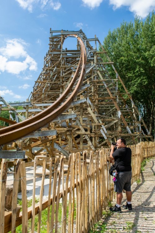 Episode 5 - "Walibi Holland Went A Little Heavy On The Grafitti", or, "The Wilderness Apparently Loves Instagram Influencers" Our next park in the Netherlands was Walibi Holland! For those of you that don't know, Walibi Holland has been through a lot in the past twenty years. They've been bought, sold, invested in... Today, they're owned by the same people that run Parc Asterix in France, but at one time they were a Six Flags park! So, from now on, I like to consider Walibi Holland to be what a Six Flags park would be if it were actually good. We again met up with some tag-alongs and made our way to the entrance. M for mini, or W for wumbo? Walibi Holland's main street isn't like your typical theme park main street. It's a mish-mash of old-style city buildings plastered with bright colors, graffiti, and other stuff that would normally be found in a city but from completely different time periods. Breathe less? Breathless? What are they getting at here? Our first ride session of the morning was Goliath. I've always thought that early-2000s Intamin is the best Intamin, so I was really excited for Goliath, and it certainly didn't disappoint. This photo was actually from later in the day, but it's one of the only photos I have from this side, so, enjoy Goldberg and Ryan's facial expressions. The first big hill and the Stengel dive are awesome. The spirals are intense without inducing greyouts. The return run of bunny hills is absolutely incredible. The trains are open and airy, kind of like you're flying. It's not my number one steel coaster (hint hint), but I really can't find anything bad to say about it after more than five rides. It's so consistent and should not be overshadowed by its new hotness cousin on the other side of the park. Speaking of the new hotness cousin... How about a jolt of Rocky Mountain to start your day? Side effects include increased adrenaline and an urge to book a flight to Idaho. Ask your doctor if RMC is right for you. We also had a morning ride session on Untamed! But since we were scheduled for an evening ride session as well, it's not worth talking about right this second. Let's move onto our third ride of the morning, Lost Gravity! It's okay, I don't know how to land a helicopter sideways either. Lost Gravity is probably the wackiest roller coaster I've ever ridden. The theming is completely absurd. The layout is so haphazard, with a yank-you-over twisting drop and a whole bunch of elements that look like they're in the wrong order but in reality flow so well together. The airtime is particularly aggressive and kind of suddenly yanks you out of your seat each time. It was very good. Awesome twisted multi-color mess of track! And two-train-on-the-circuit operation! Most excellent! I generally stuck to the front row, but on my last ride I decided to get over my fears and try the back winged seat. Having no floor to rest my feet on and getting yanked over that drop was probably one of the most surreal experiences I've had on a roller coaster. It's so sudden, and so scary, and I loved it, and I'm never doing it again except I probably will because it's that incredible. Contradictions, how do they work?!? Coaster, kebab, shipping containers, radio antennae, plastic yard furniture, waffles, pofferjes, and trees. Trust me, it all works well together! After our Lost Gravity session we made our way back to the front of the park to receive our Fast Lane passes. We split off into groups of six-ish. I went off with a group with a few too many Andrews. The first stop of the Andrews group was close by - Xpress! Xpress is, for those that don't know, a clone of Rock n' Roller Coaster. It has the same sea serpent roll, the same boring sweeping turns, and the same "almost airtime" at the end. However, it's also outdoors, so you can see everything! What makes Xpress interesting, though, is its queue. Xpress is themed to a haunted subway / metro train and platform, and with a haunted theme comes an actual haunt maze. Xpress' queue features a foreboding atmosphere, dark corridors, creepy props and triggered jumpscares. It's a really cool experience and you wouldn't know it based on the fact that Xpress' entrance totally fits in with the garish aesthetic of the city-like main street area. Unfortunately, however, that immersion is broken as soon as the doors open for you to board, as you're faced with a bubbly, shiny mid-2000s Vekoma train. Still, the ride is fun and worth a spin for that queue haunt alone. The Andrews group continued onward, stopping at pretty much every thrilling flat ride along the way, which this particular Andrew would then skip. One of these was Spinning Vibe, a rare park-built example of a Huss Magic, normally found on the European fair circuit. Well, yeah, Chris, if I would have known I'd be on camera I would have made that facial expression too. Over here, we also took a spin on Speed of Sound, the park's themed, EDM-pumping Vekoma Boomerang. It was fine. We then made our way over to Drako, the park's kids' coaster, taking a spin on Crazy River, the park's forward-backward double-dip log flume along the way. We also caught a glimpse of Larry going into some sort of virtual reality experience called NeuroGen. Remember that, it will be important later. The Andrews group also ran into some of the other groups and they all also took a spin on Tomahawk, the park's Frisbee. Looks like a frisbee, sounds like a frisbee, smells like a frisbee, but it isn't one. But unlike the Tomahawk that U.S. Six Flags fans would know about, this Tomahawk is actually a fake! It's not a Huss Frisbee, but actually one made by SBF. It didn't get anywhere near as high as the real Frisbee we'd see the next day on the trip, nor did it spin as much. I skipped it thinking it was a Huss initially but it looked so tame that I might have actually enjoyed it. In the early afternoon, we all headed back toward the front together for lunch. I had a sandwich that I thought was fish, but it real