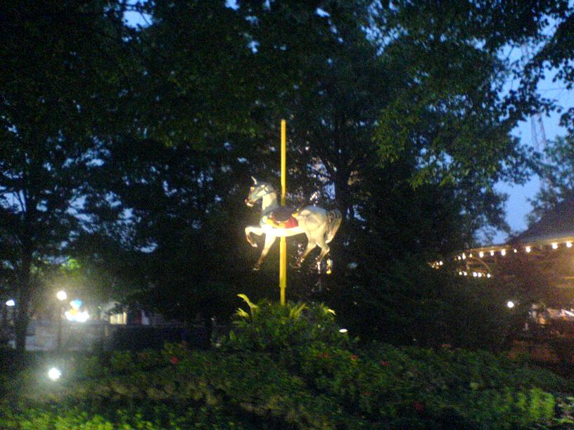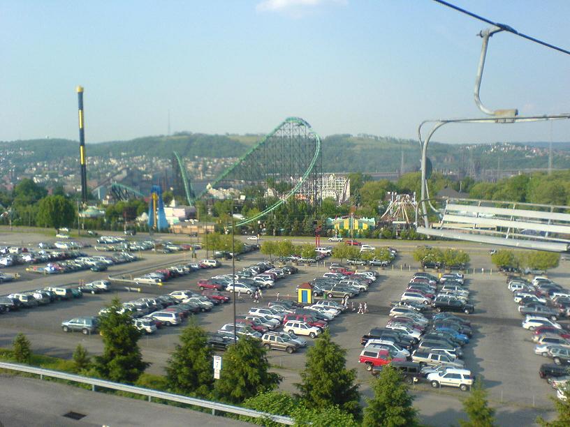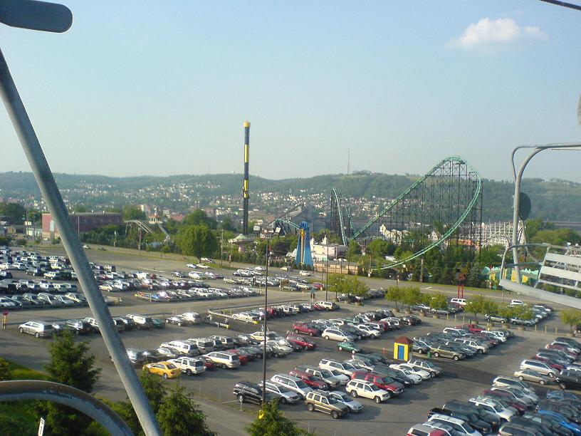 Today I randomly decided to go to Kennywood for their Night Rider discount ($16 opposed to $31). Unfortunately, I had to get through most of the Pittsburgh metropolitan area to get there, so on like most occasions… I got lost! Well I didn’t quite get lost because I knew where I was going, but I felt like an idiot for getting off at the wrong exit heading into Pittsburgh (Fort Pitt Tunnel/Airport exit rather than the correct Veterans Bridge exit), so with doing that I added a good 45 minutes to my already lengthy drive. I eventually get back onto the Veterans Bridge, but the traffic was a bottleneck when it came to getting off at the Monroeville exit. With some illegal merging (everyone else was doing it) I got to the Boulevard of the Allies and ran into some routine traffic on the Parkway while heading to the Squirrel Hill tunnel. That was another 45 minutes wasted just sitting in traffic, but once getting through Swissvale (I avoided the waterfront because of the construction on the bridge) I was Kennywood bound and got there soon enough. I was expecting to pay the usual $5 parking when I got there, but I noticed that their Kenny Parkway (chairlift) was operating and that meant that the free parking lot level was open. With a duh! decision I headed up to the parking lot. I don’t see why more people use the lot because it provides an excellent view of the park, it gives you a free ride down to the gate and the parking itself is free. Well who knows; the ride down from the top was really nice and got me psyched to ride some coasters. Once I got past the ticket people, security and such I noticed that there was a new electronic sign that displays information about school picnics. That stuff used to be displayed on an old bulletin board. I wasn’t sure where to go first when I came out of the freshly painted tunnel advertising Kennywood’s sister parks. I went straight figuring that I’ll jump on the Jackrabbit or something. I walked passed it and went on the Racer first. The wait wasn’t too bad and for those who like to win, board the train that’s on your right as you enter the station because whatever train that’s there will always win (it has the last inside turn). After that I found myself over by the Thunderbolt. I know that you need a partner to ride it, but I felt like being bad; ha, so I got in line and got a partner. The Thunderbolt really let loose and I didn’t know it at the time, but our train was synchronized with the Phantom’s Revenge train. As soon as our train went through the MCBR the Phantom’s train was already going down its second drop and when we made the turnaround we got a good look at the Phantom’s train traversing the track before it went under us again (I wish I had video). I had an appetite after that, so I got some Potato Patch fries and watched some people broadcasting a new commercial for Kennywood (it was a bunch of kids attacking an adult for Potato Patch fries). I walked around Lost Kennywood for awhile and then I went on the Phantom’s Revenge. I felt so old when I was waiting because almost all of the kids were between 15 and 18 years old. It used to be normal for me to look at teenage girls because, well… I was attracted to them, but now that I’m 20 it feels like I’m doing something wrong. I guess I should have brought a girlfriend or something… The Phantom was great. I got onboard the second to last car and got whipped around pretty good. I barely noticed the new trims on the double dip, so that’s good news for those worried out there. I was pretty much done after that, but I wanted to see the Cosmic Chaos in action. It looked pretty impressive, but I didn’t feel like riding it. I caught a ride on the Jackrabbit before calling it quits, so I got on and sat in the last car. This coaster never stops delivering that awesome pop of airtime. I stopped by the souvenir shop and bought my brother a shot glass. Then I stopped by the fudge shop and got my mom and dad some chocolate covered pretzels and then left. Overall it was a nice visit. I forgot to mention that the whole park was alive with kids from the school picnics and such. I forgot what my school picnics were like when I was younger; it was pretty cool seeing all the youngsters running around. Until next time… Btw I would have called this a Photo Trip Report, but I only took a few good pictures, so I rather leave this labeled as a regular old Trip Report.