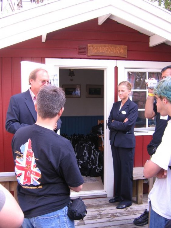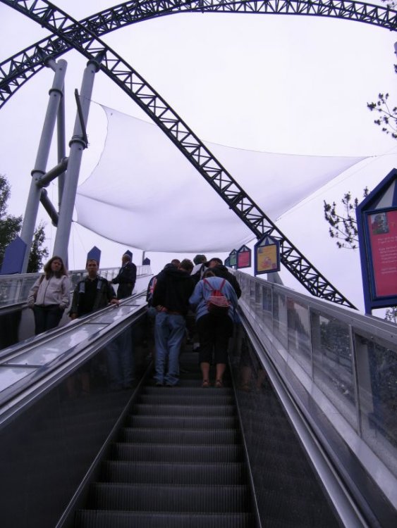 June 20, 2006 - Liseberg This was my most anticipated park of the whole trip! We got to enter Liseberg 3 hours before the park opened to the public! Also, we didn't just have 3 hours of ERT on Balder and Kanonen. We got to write on Balder and we got free merchandise. I rode Balder then I went and rode Kanonen. After riding Kanonen once I went back to Balder and rode it for the rest of the3 hour ERT session. Once ERT was over we got a head start on Lisebergbanan before the park opened. Liseberg was an awesome park and I can't wait to visit the park again. The only thing I regert not doing at the park is the Ice Bar, I'm going to make sure that I do it on my next visit. Your ride on Balder is over and you have finished my Photo TR. ..... ..... ..... The next couple of pictures will take you through Balder's course. This escalator was awesome. The last credit on the trip. Lisebergbanan is fun. A aerial picture of the best wooden coaster I have been on. I took a fast break from Balder to get my credit on Kanonen. Kanonen is short but it's a fun ride. I picked the backseat for my first ride on Balder. They added a second train for a us. All of us got to write on Balder! They had some gifts for us. We didn't get to ride Balder right away. This is the last park on the trip! -