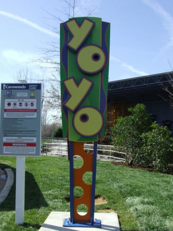 I got off work friday morning at 7am and realized it was the opening of carowinds (yeah strange for a friday to open a park). So I came home and woke up Sean and said we are heading to carowinds! Sean is from cali and all he talks about is SFMM and disneyland so I figured it was time for a "change". We get to the park and first thing he ask is "are there rides like the haunted mansion?"...after our long talk about his soon-to-be encounters of attack of the trashcans and the difference between cedar UNfair and disney parks we were ready to go in! Our first ride was BORG/hawk, which to my amazement he really liked! The sign for the coaster is NOT complete and I dont care what the park may say I feel the sign is in it's first stage. Now correct me if i'm wrong but didnt the park just have an offseason? So...why isn't there a finished sign for the coaster! It's not like they are installing a huge B&M hyper coaster and took up their time (oh yeah have to wait until 2010 for that ). Anyway...as it as been mention the sphere isnt there anymore and the area looks very boring without it. We made some rounds around the park and rode pretty much everything. The yo yo's looked fun but not for me. The flyers are the highlight of the park and with that and top gun I dont know how the park would do w/o them! Anyway here are the pictures enjoy! edited shot of last pic! This concludes this Photo TR! Awesome! I left sean to hang w/ jimmy. He's smarter, WAY smarter! Thanks Kings islands...you're the best! Is there any other cedar UNfair parks w/ this much scenery? I still look tired... This is my favorite area of the park. I just wished the rest of the park would have the carolina theme. I can see a redneck area where hurler is currently pretty much the norm the whole day SAME shot this time B&W Same shot w/ shadow added to bring focus to the subject. This was the best shot of the day, simply because I took it! It kinda sucks to have people know you are a bootleg photographer because they ALWAYS want free shoots! I'll call it "grill - the ride" I have to admit it...this tower always gets me! DANG IT Sean! This is NOT hong kong disneyland! I'll pay anyone 100.00 and bail for making a sign that reads "golden" and then go to the park and nail it above the "shower" sign! "Im not a real model but I like to tell myself that" After being up since 9pm the prev night I think im pretty beat! "I cant believe it's 6.25 for a 16 ounce cup of beer" Now after seeing the prices lol! ...and after finding out they have margarita's also. Sean after finding out we're on the way to get some beer! Ya know its kinda "sad and pathetic" when you have to feel up a character cut out! Heh heh... Talk about cheating death! This coaster watched final destination one too many times! E-M-P-T-Y relaxing area I like the closeness of southern star but I would like it more if there was some water around it. This is my kinda park - EMPTY! Im sure it took months of planning to come up w/ the name and logo. The new yo-yo kinda really does fit in. I welcome all flat rides! New theater sign....aaaannnnddd sean. This coaster will never really need a paint job! See paramount was smart about something! (or could it have been they couldnt figure out what color to make it and ran out of time lol) Gotta love this shot! PLEASE cedar UNfair if you have any ounce of dignity PLEASE keep this on the station for old time sakes! ...and another picture for myspace. Sean needed a smoke break... The restrooms were pretty clean! One thing I can say is the characters were out in full effect! It just looks empty now... LAME! Something doesnt look right... And here I am in all my glory! Relax I still have the hair it's just "compressed"! riddlers....err...vortex taking on the first drop! I even called vortex Riddlers Revenge! "Hi, i'm Sean and I cant stop talking about Superman Ultimate Escape, even though it's sooo 90's" The "not-so-cool looking like the BORG Ass sign" sign. I still think they could have kept the stars... First shot of the day Borg/hawk thru the trees!