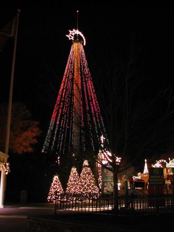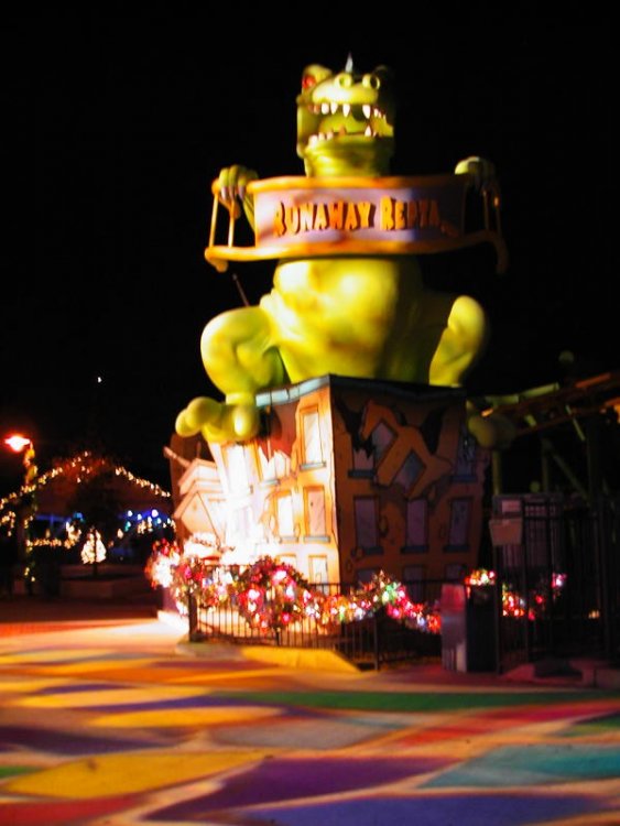 Ok...it's not from this year but I was just going thru my pictures and realize I didn't make a TR so here ya go! Overall I liked the event. WHile it's no "Christmas in the Smokies" it was pretty well done for them having it the first time in a long time. I would have to say it was more of a production of lights than a display in my opinion. I really wanted this to come back this year but I know w/ all the changes the park wanted to get some time to soak it all in and hopefully it will return next year... The end...I hope you enjoyed! Overview... Looking head on... The signage in the front. The best looking cinnabon ever... Gotcha! Finally something else... he he he he... Wadda ya know another picture of the tree... Hey look who came out!! ...And again... No kids to enjoy... These things came in handy during my visit! I felt like I was outerspace... And again... Thats hot... The fat dude finally showed up. Oh and santa did also (yeah that was lame...) The paratree again... One of the better displays. The show was also a big hit at the event. A white christmas. Unacceptable subsitute! The flyers. Im sure they would have had more visitors if they were. The rides that were open was basically nick central attractions except... "I took up all the budget heh heh" The highlight of the evening was the water and lights show...it was amazing! One of the bad shots but gives you an idea of the area. The scrooge thingy. Just like the Donkey/buzzard thingy. awwwww.... I am reptar hear me roar! But they made up for it w/ these ground displays! One thing I can say is that paramount used alot of card board cut outs instead of 3D models... But unlike my front east yard...it changes colors. the ice skating rink had alot of hype but it was no larger than my front east yard! pretty lights! He's thinking "man I hope next year they dont have this thing so I wont be freezing another year!" Shops all decorated I decided to see how many people I can get to sit on my lap... Looking up... The "hot" seat. Another larger than life christmas tree...you could actually walk thru the drum! No PTR is complete w/o a pic of me. Just to let you know where you are. Charlotte's tallest christmas tree... Twas' the night at winterfest and now at the gate. Not a creature was stirring and I wasn't even late!
