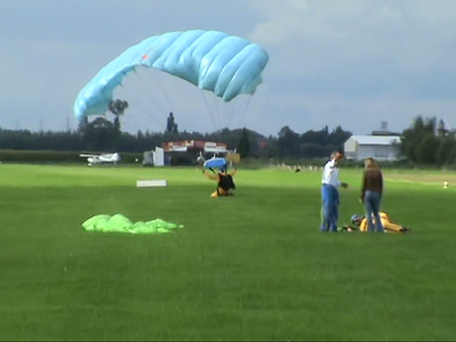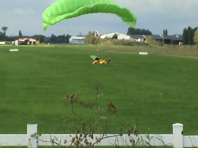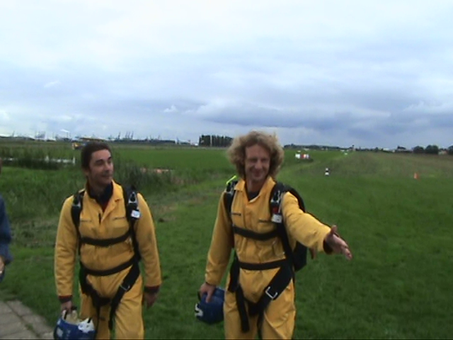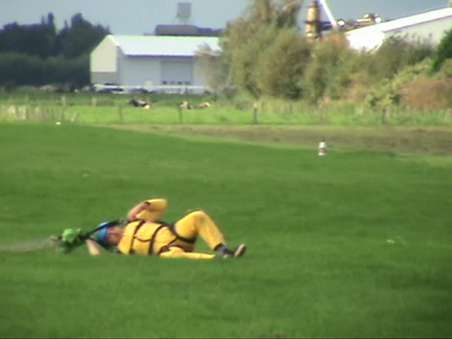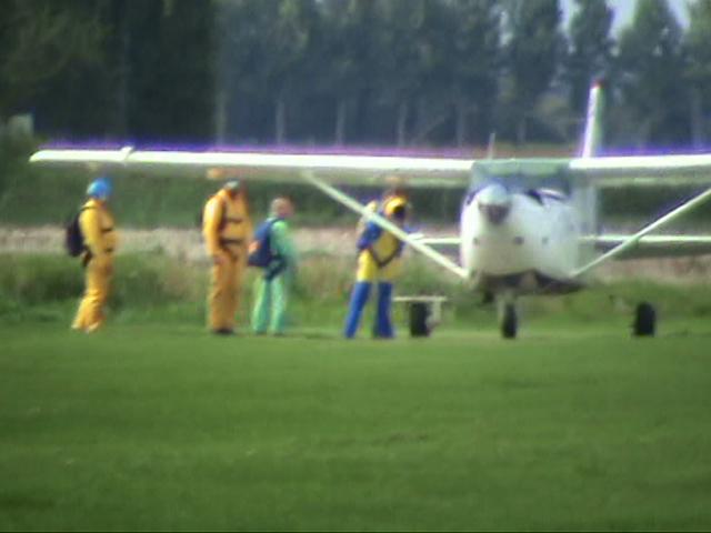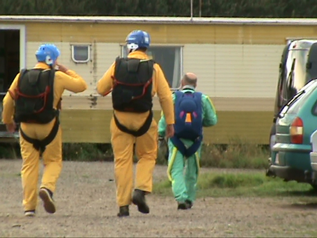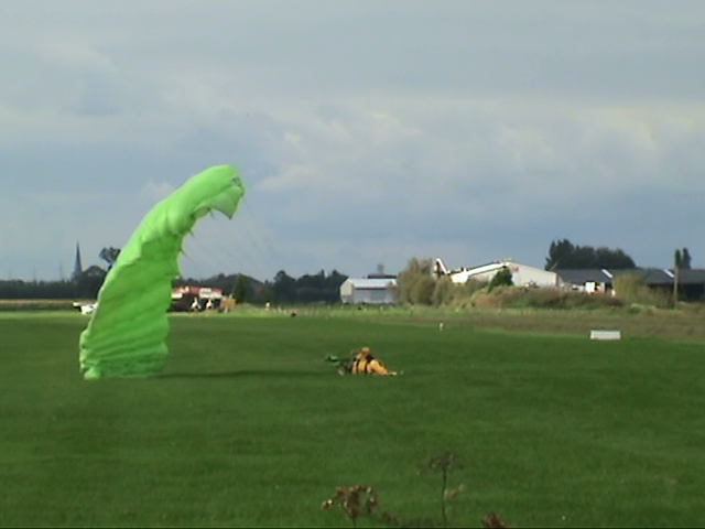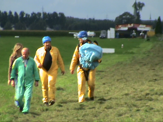 12. A while ago my neighbour asked whether I wouldn't like to do a parachute jump. I immediately said no ! Riding stand up-tilting free fall towers, I like it. Riding fly coasters, I like it. Next year I'll be riding TTD & KK : I'll put my hands in the air and I will like it. But parachute jumping ... no, that's too risky imo. Nevertheless, my neighbour found 3 friends ready to jump and I proposed to cam them. From the footage I freezed some pics and thought some of you might be interested. Last one also made a nearly perfect landing. That's it. I still would not do it. Think it's really too risky. But he landed ok My neighbour landing in a nearby field. ^ ^ ^ Jump Next 2 ready. But his ass was hurting. The unfortunate first guy, was already back on his feet. Perfect landing. He didn't forget to break ^ I decided to continue filming as other people were already running to him. After all, there was still another person in the air. I didn't really know what to do : keep on filming or run to help. ^ ^ ^ ^ ^ Forgetting to brake ... Take note : this is going to be a bad landing. ^ Preparing to land The other two were scheduled on the next flight. First one out of the plane Ready to take off Entering the plane. All day long, small planes were flying over us at not even 10 meters. ^ off they were. The little guy in the front was their instructor. His age : 74 !!! Helmets and parachutes on and ... After a crash course of a few hours, they were ready to try out their yellow suite.