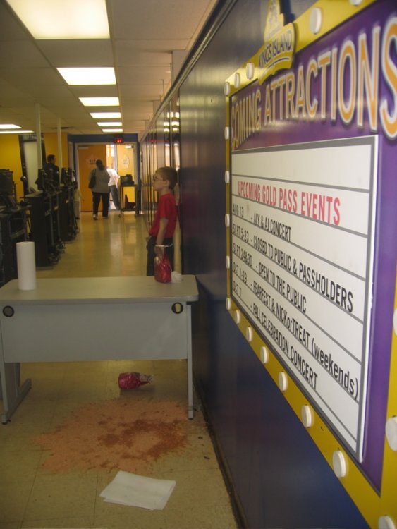 Kings Island may open in just two days, but why wait that long? Starting last weekend, Kings Island opened up their Season Pass Processing Center to allow people to buy and process their passes, while beating the crowds that are anticipated on Opening Saturday. So yesterday (Wednesday) I went up to get my Cedar Fair MAXX Pass, and also decided to document the changes at the front for you all. The park hasn't even opened yet. A guest has yet to step onto a ride. And yet, somebodby has already managed to puke at Kings Island! A good amount of people came out to buy/exchange/and process their season passes. A Supervisor dressed the in Cedar Fair was avaiable to answer questions and direct people the right way. Paramount?! It may be Cedar Faiir's park now, but you will still pay Hollywood prices ($3.00)! Let's go get our passes made! OK, I get it now... They killed off Paramount! Take note, Kings Dominion! This probably looks different... The big sign above the front gate sure looks weird... Kings Island. Also known as Cedar Point South! Same prices, new attitude. But the park wasn't operating, so neither were tolls.