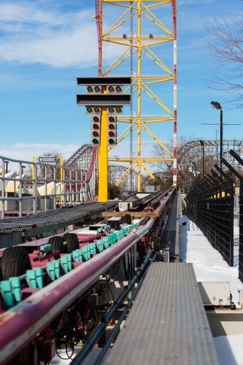 22. Another great event put on by Cedar Point! The day started off with the park tour, which included the maintenance shops, new construction area, dragster station and launch track "nook" along with the lap around frontier trail. Lunch was served (salad, cole slaw, fries, fish/chicken/beef burgers, chili and delicious brownies and cookies!) while Tony put on a presentation of what is to come, followed by a Q&A session. It was a fantastic event and made me really excited for the 2014 season! On the way out, we were given the 2014 calendars, exit passes and a free ride on the new Slingshot attraction! The event overall was above and beyond what I expected, and the $10,000+ raised for Give Kids the World was just icing on the cake. Below are some photos from the event. More can be found on my Flickr page here in higher resolution: CLICK! Enjoy! Welcome to CP! Snowy Midway Maverick Train (or part of one...) Wheels More Wheels! Millennium Force Lapbars! Maverick Frame Wall-O-Wheels! Off to Dragster! Dragster Panel Arms Down! Construction So Purty! Millennium Force Trains... All over! Under the MF train! Thank you Cedar Point! See you in May!