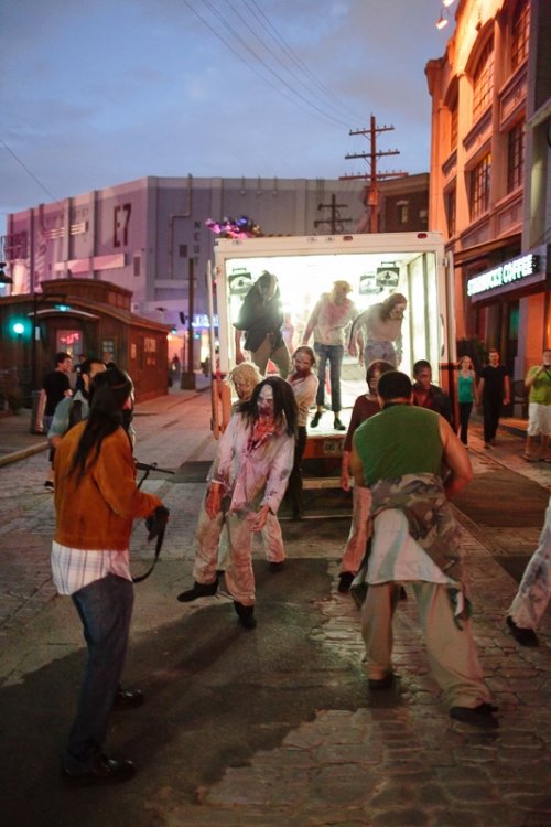 Thanks everyone! Downunder, We went every year from about 2004 until 2009 when we stopped going. The event just was not as good the last year or so, so we decided to hold off a few years until we would go again. This year all the houses were very good though, although the zones are still lacking considerably from what they used to be. I hope in the next few years they put a bit more focus into the zones and making some really unique/fun areas. Hilltopper, What building is the parade one? Not that familiar. The houses in the sound stages are: Cabin in the Woods is the first soundstage behind blue-man, closest to the front of the park (entrance by Despicable Me). Resident Evil is next (behind the stage setup), Werewolf in London next to that (closer to Twister) and finally Evil Dead at the far end back by the turnaround for Rockit. Not sure if this helps!